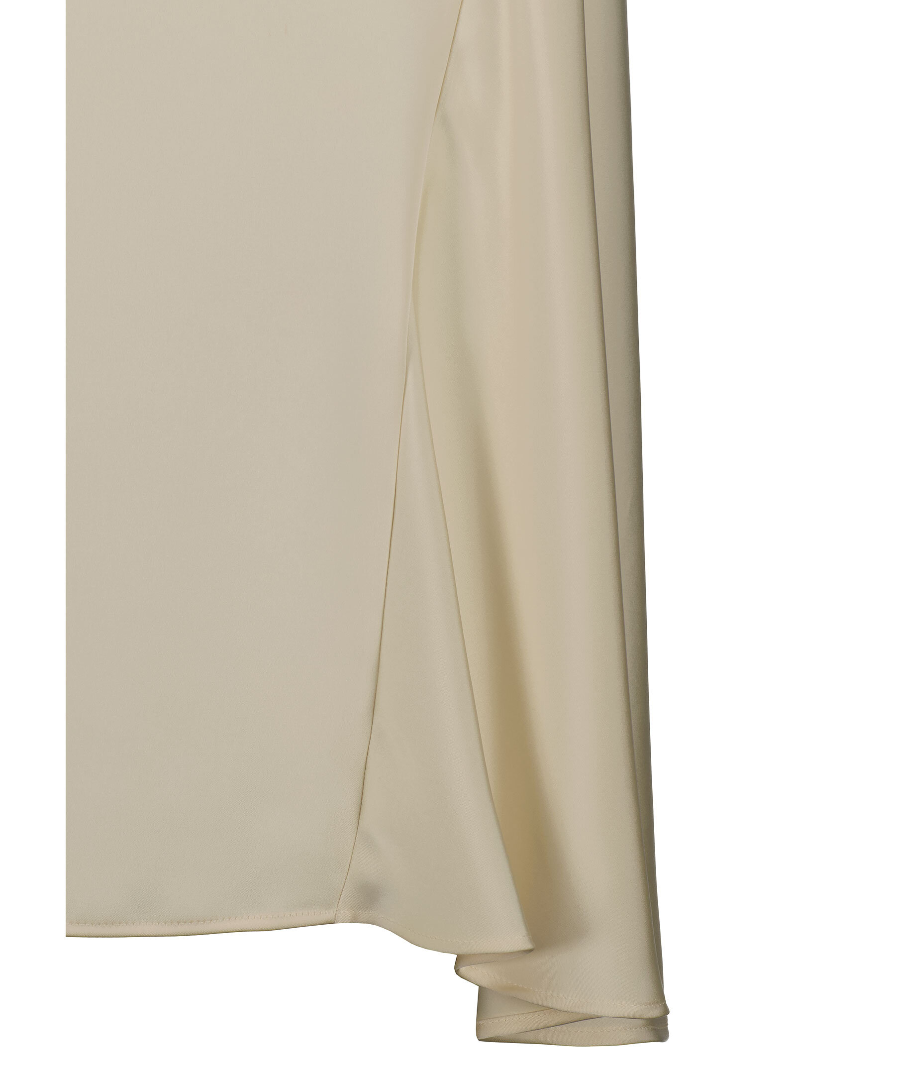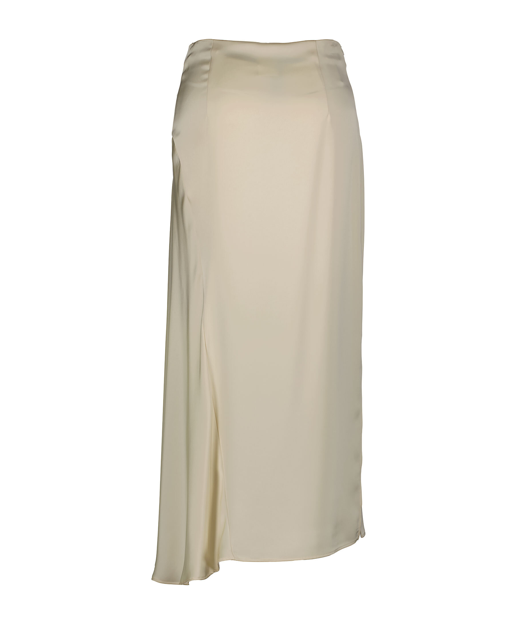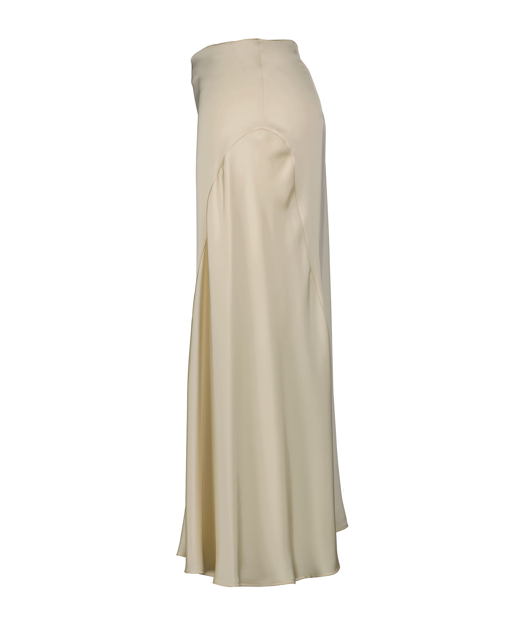 Krämvit lång silkeskjol från Max Mara Weekend. Kjolen har elastisk midja samt en dekorativ söm från nederkant och upp. Tillverkad i polyester.