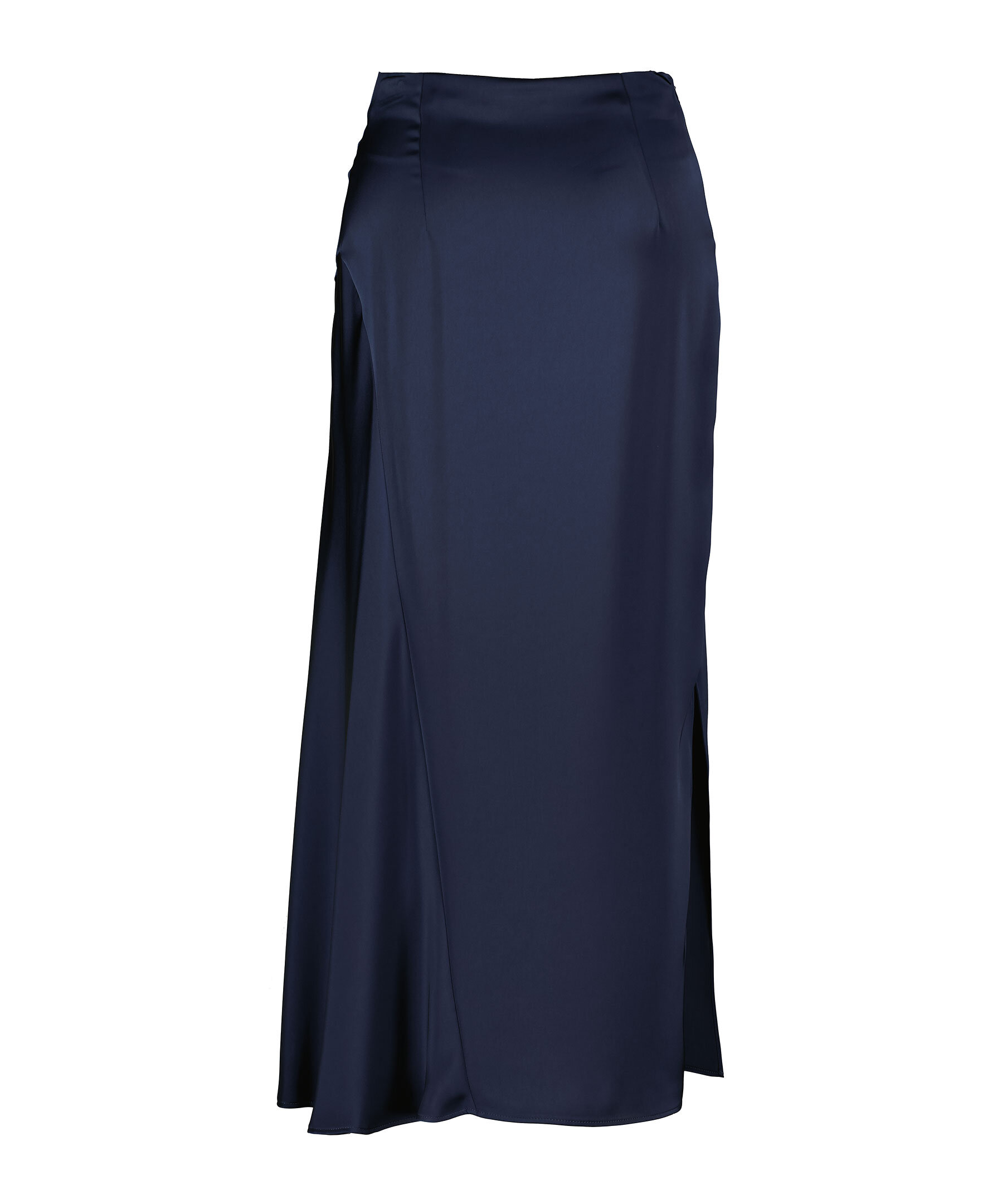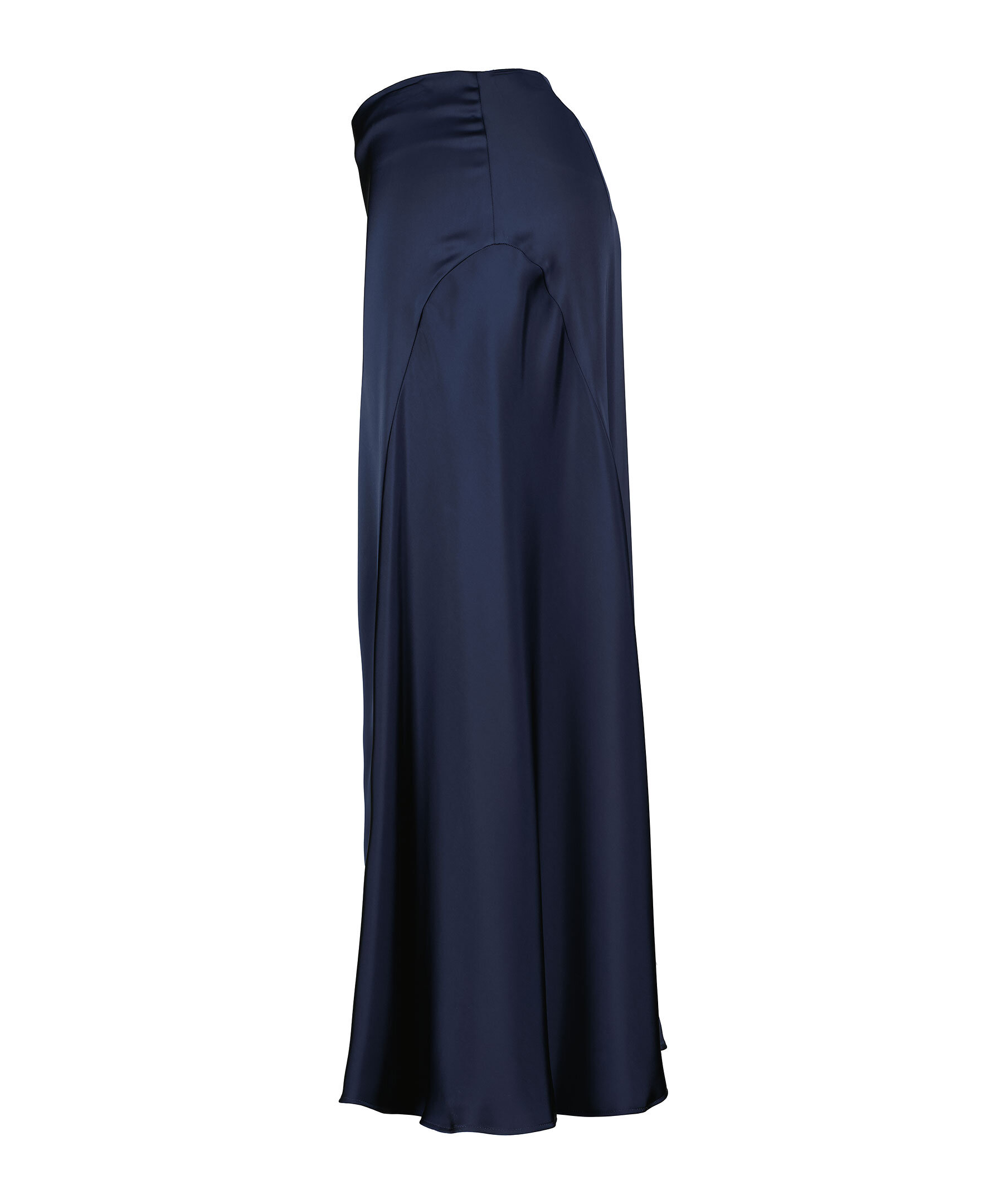 Marinblå lång silkeskjol från Max Mara Weekend. Kjolen har elastisk midja samt en dekorativ söm från nederkant och upp. Tillverkad i polyester.