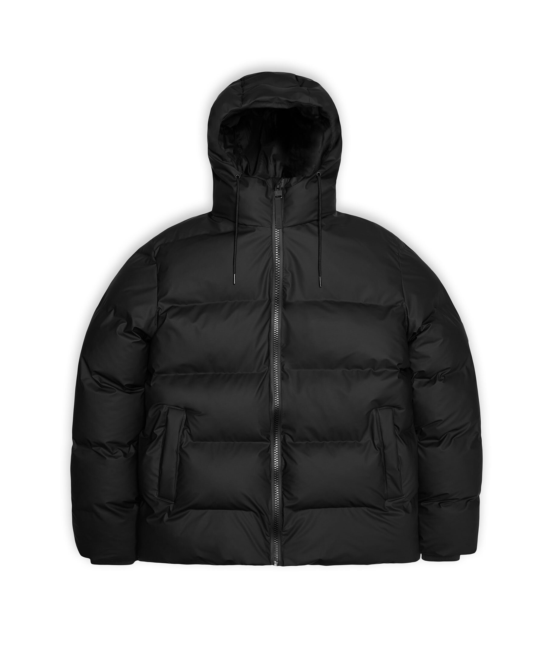 Svart pufferjacka med huva från Rains. Jackan stängs med dragkedja framtill och har dragsko i huvan, två fleecefodrade sidfickor, en invändig bröstficka med dragkedja samt är designad i Rains signaturtyg av PU.