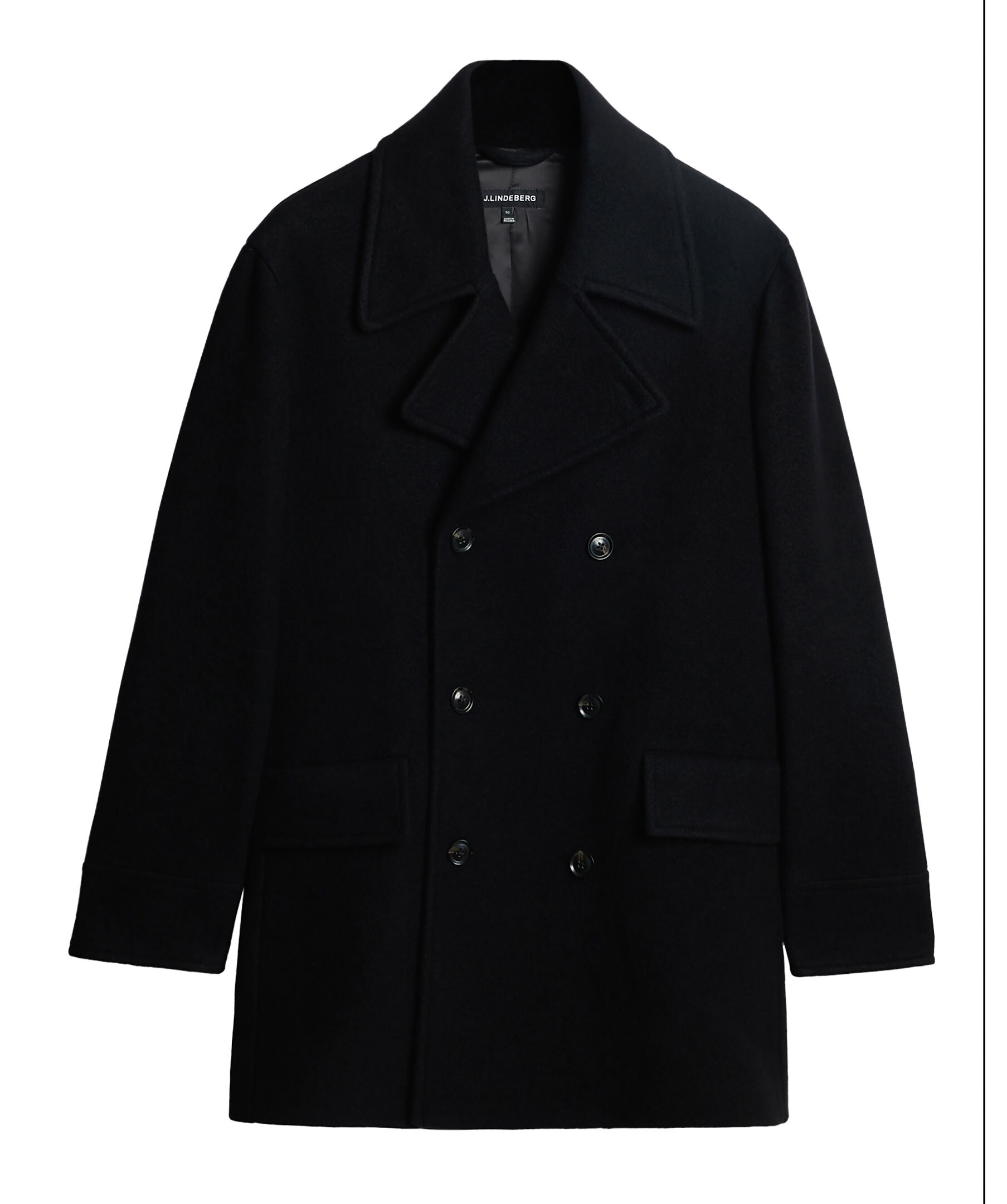 Svart dubbelknäppt ullrock från J.Lindeberg. Rocken är tillverkad i mjuk återvunnen ull som virar in dig i värme. Knappstängningen i mitten framtill ger en touch av klassisk raffinering medan de subtila nylon- och meshdetaljerna bidrar med moderna inslag.