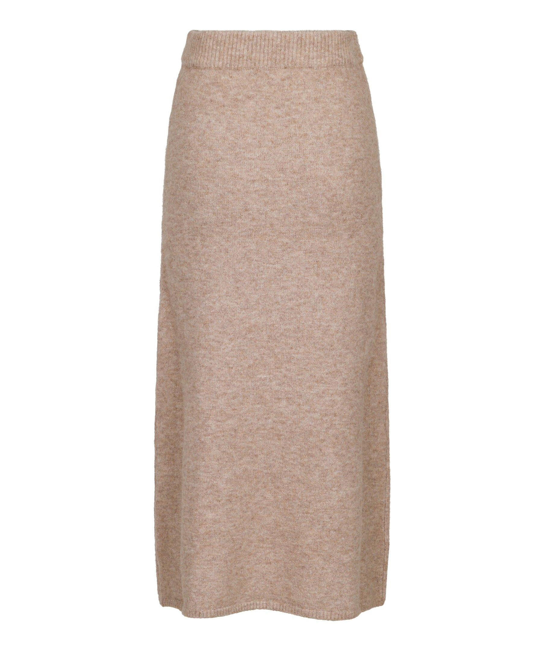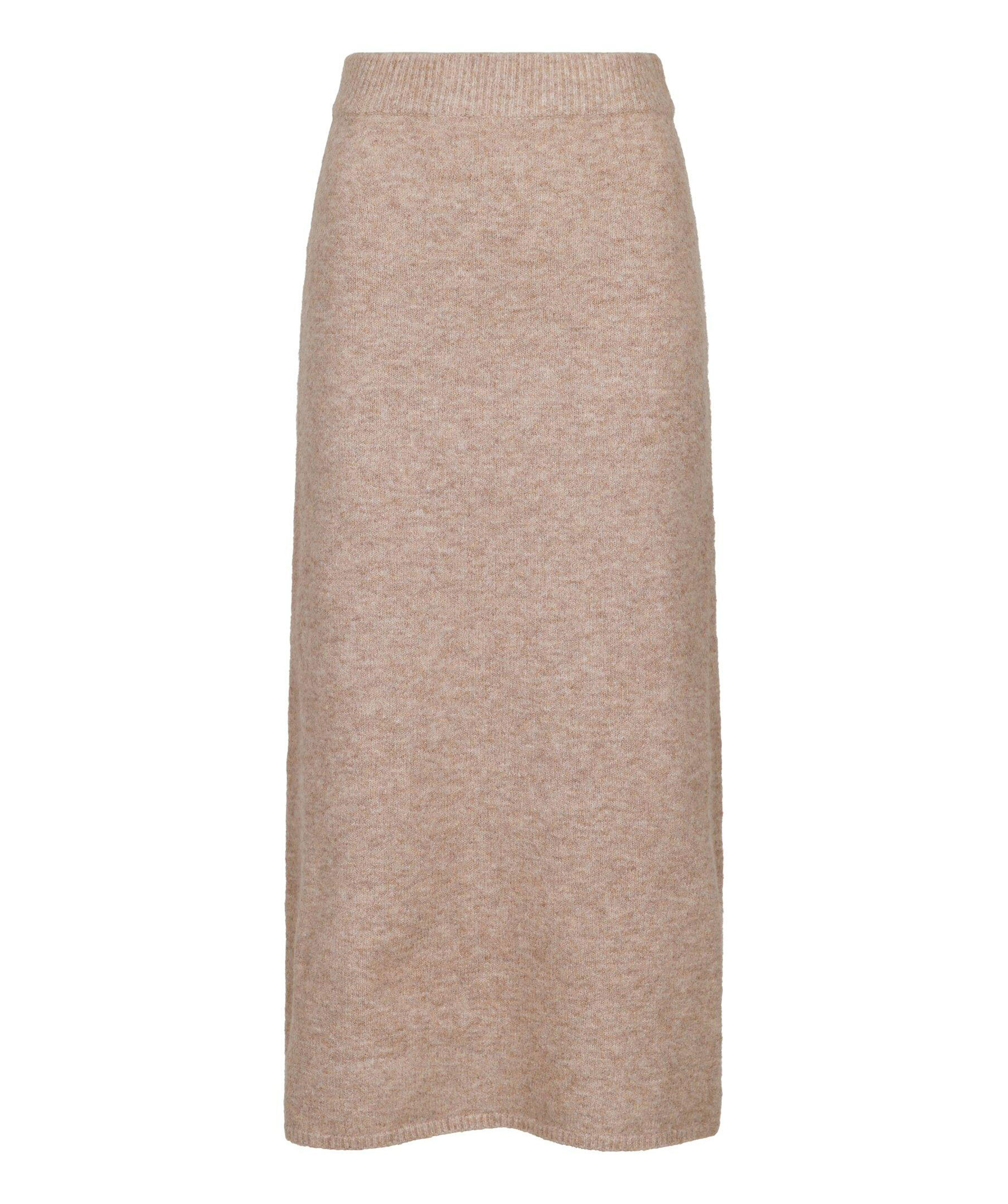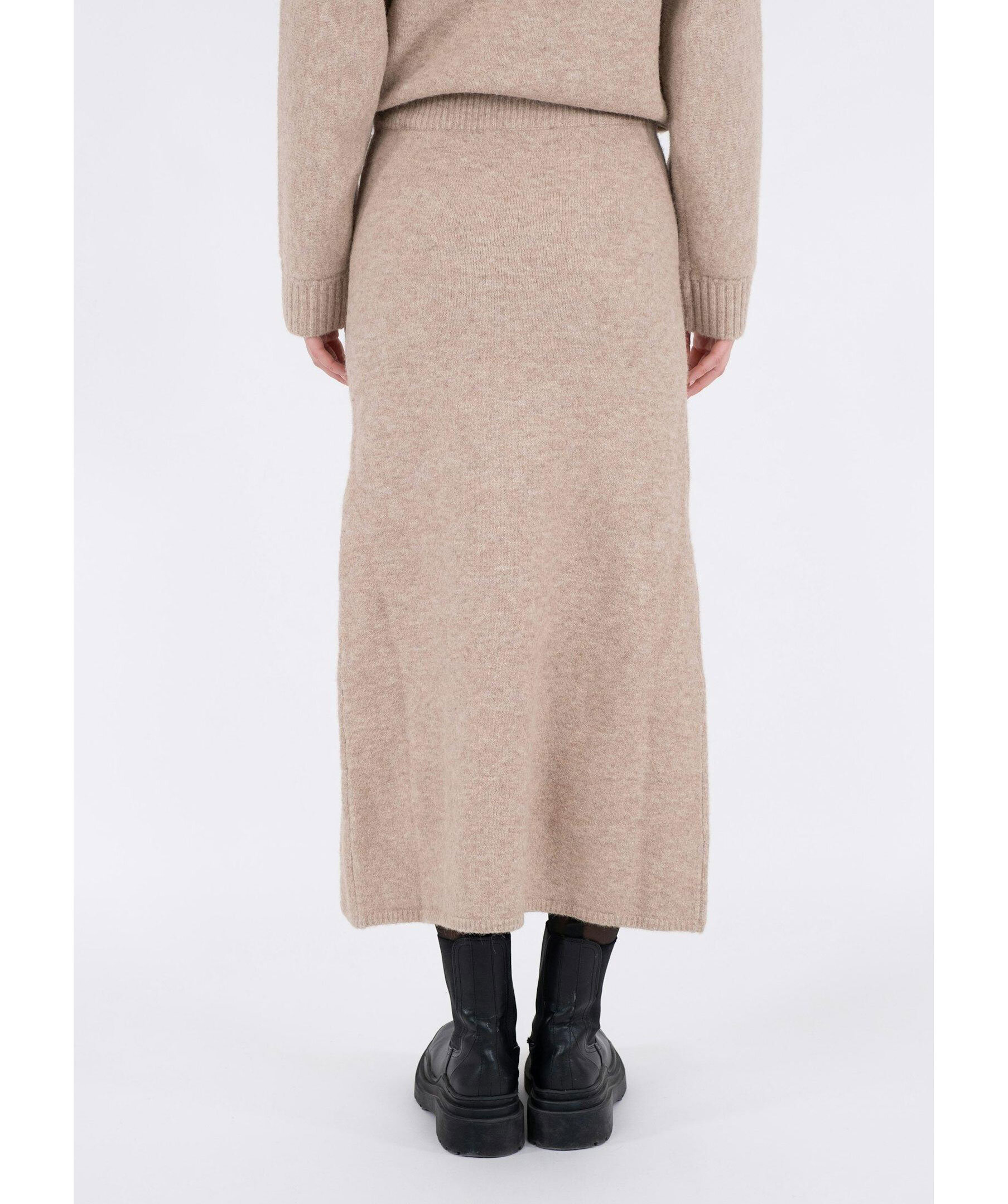 Beige, stickad lång, kjol från Neo Noir. Kjolen har en ribbstickad, elastisk midja och är tillverkad i en ull- och polyesterblandning.