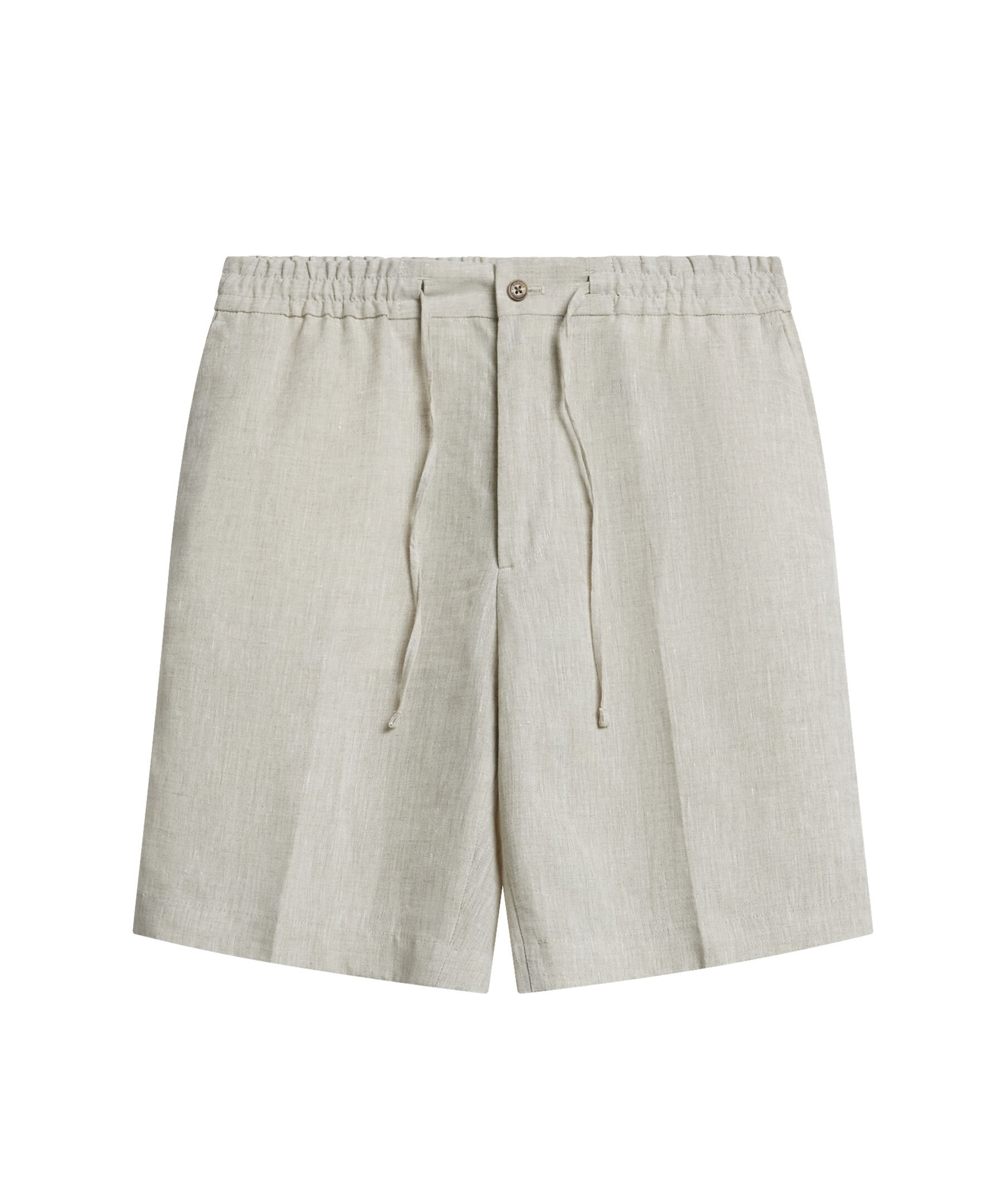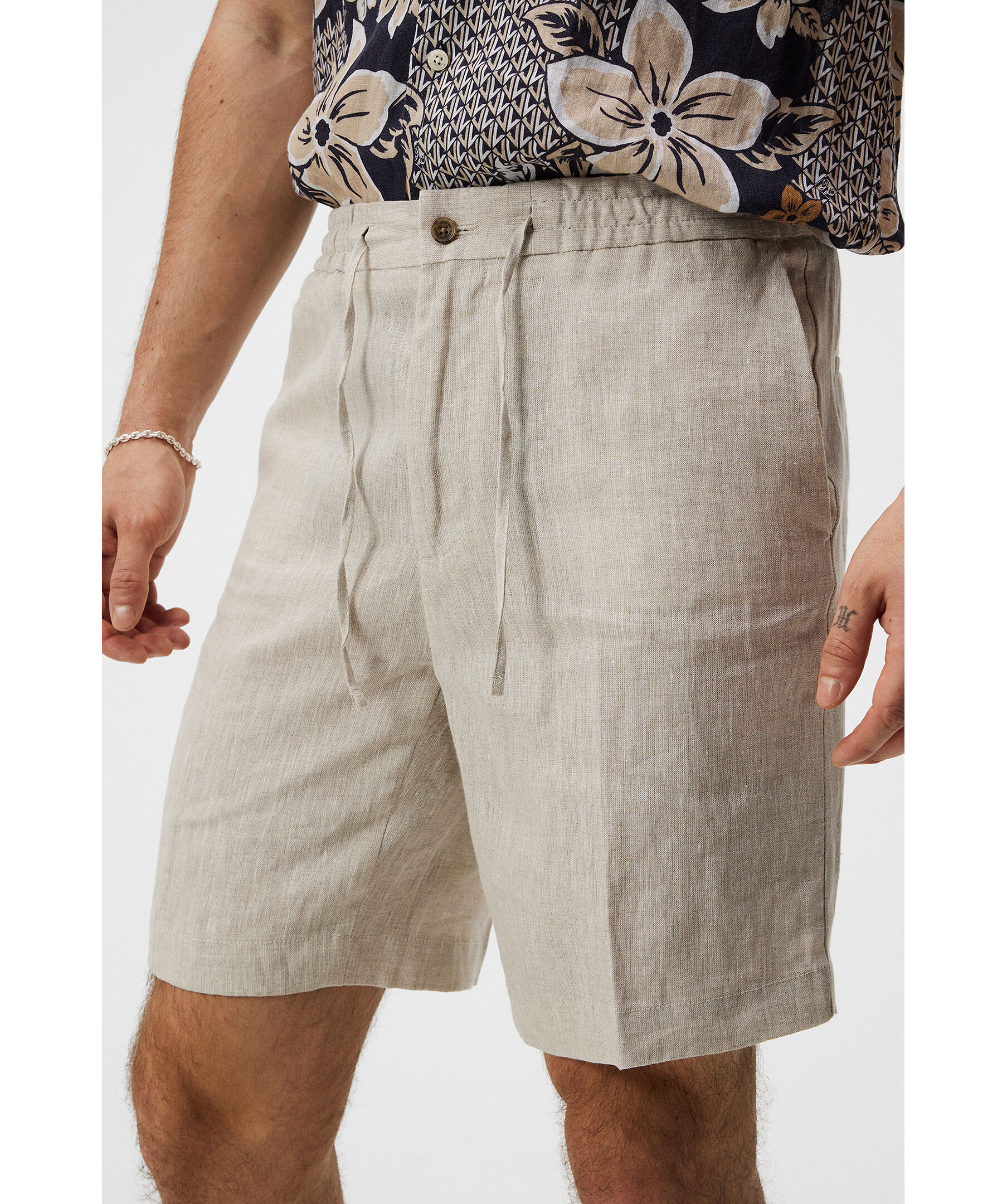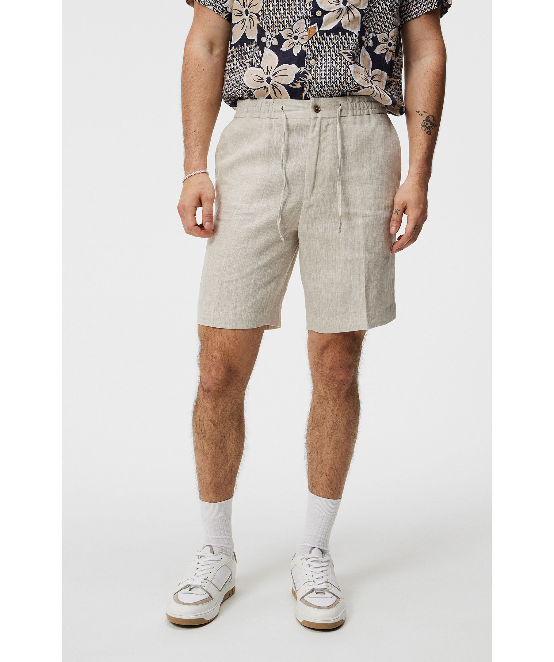 Beigea Linneshorts från J Lindeberg. Tillverkad i 100% Linne. Två fickor framtill och två bakfickor. Gylf som stängs med knappar och gylf. Pressveck framtill och baktill på byxbenen.