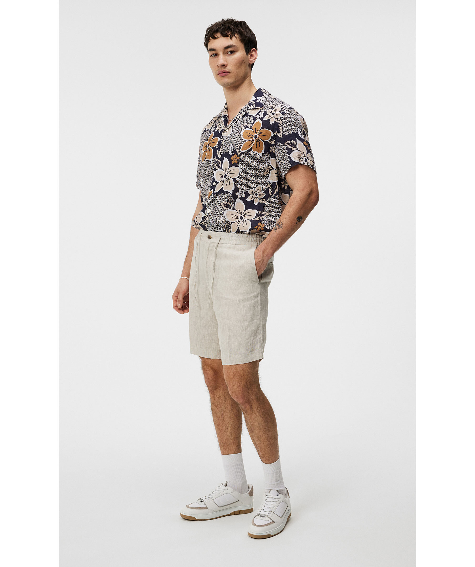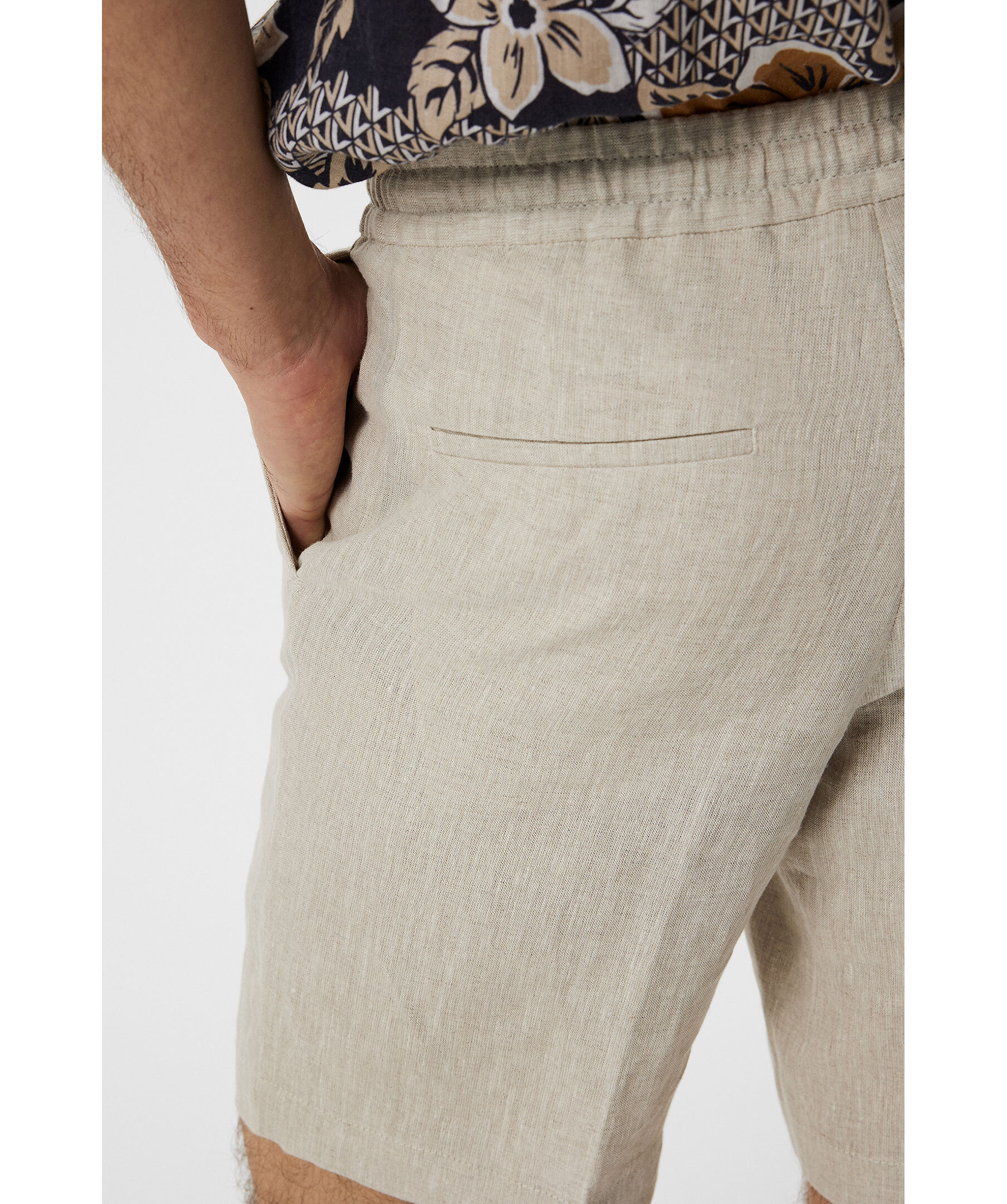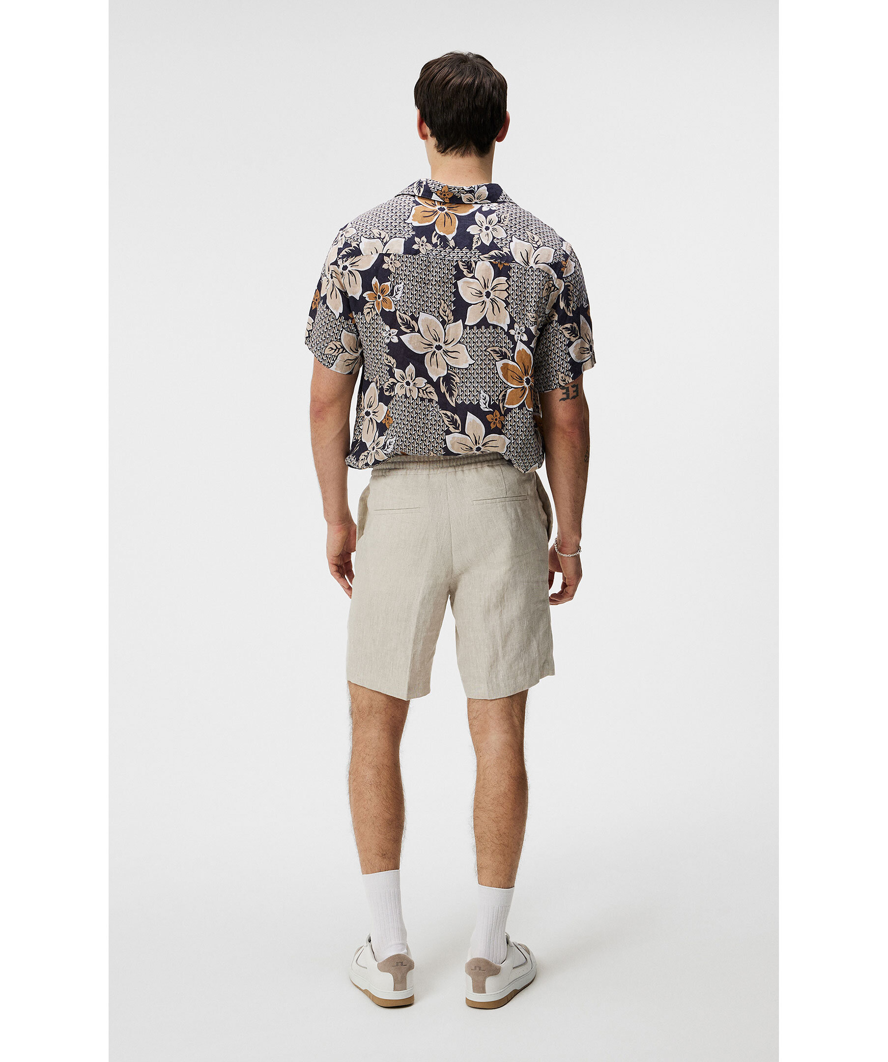 Beigea Linneshorts från J Lindeberg. Tillverkad i 100% Linne. Två fickor framtill och två bakfickor. Gylf som stängs med knappar och gylf. Pressveck framtill och baktill på byxbenen.