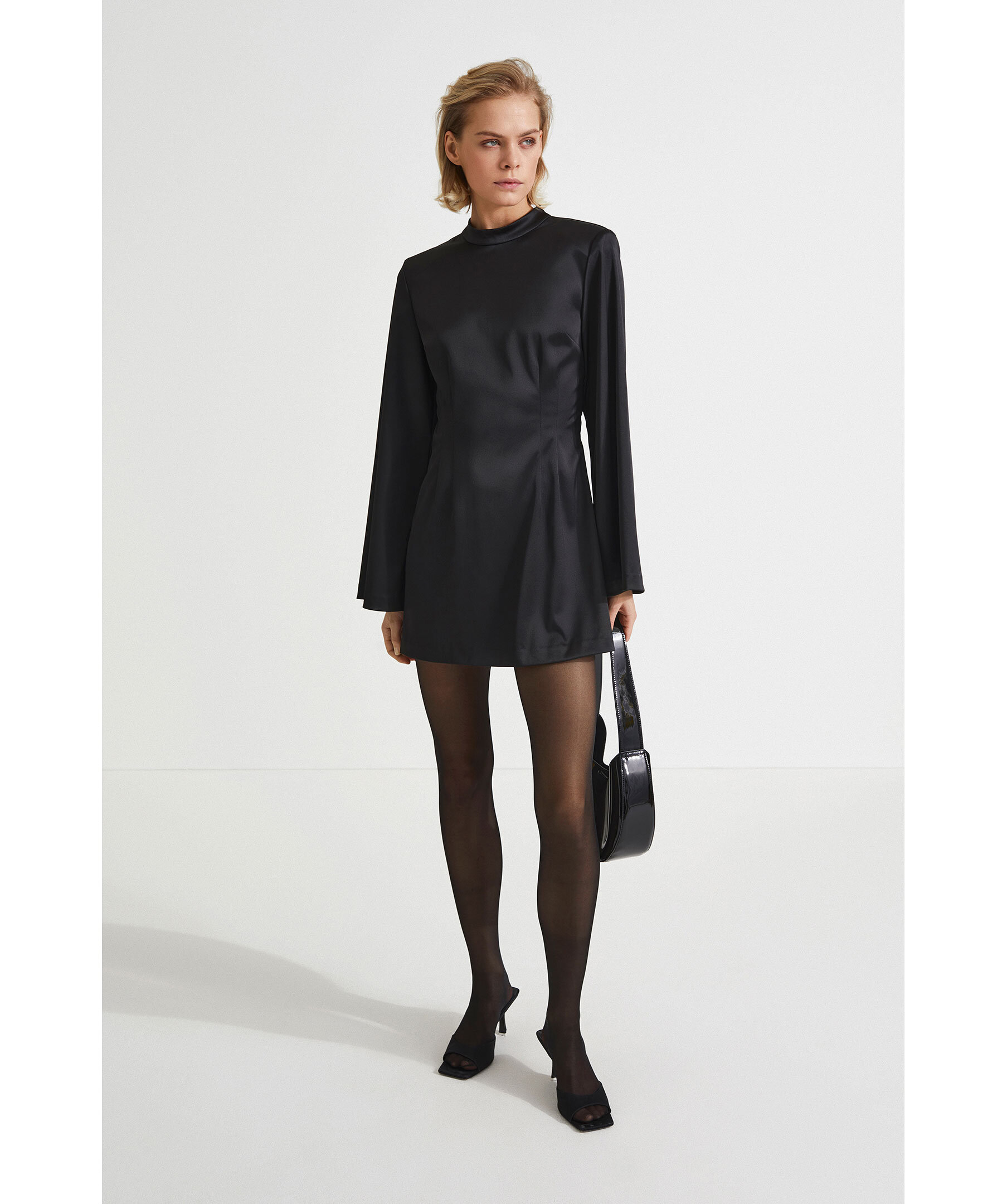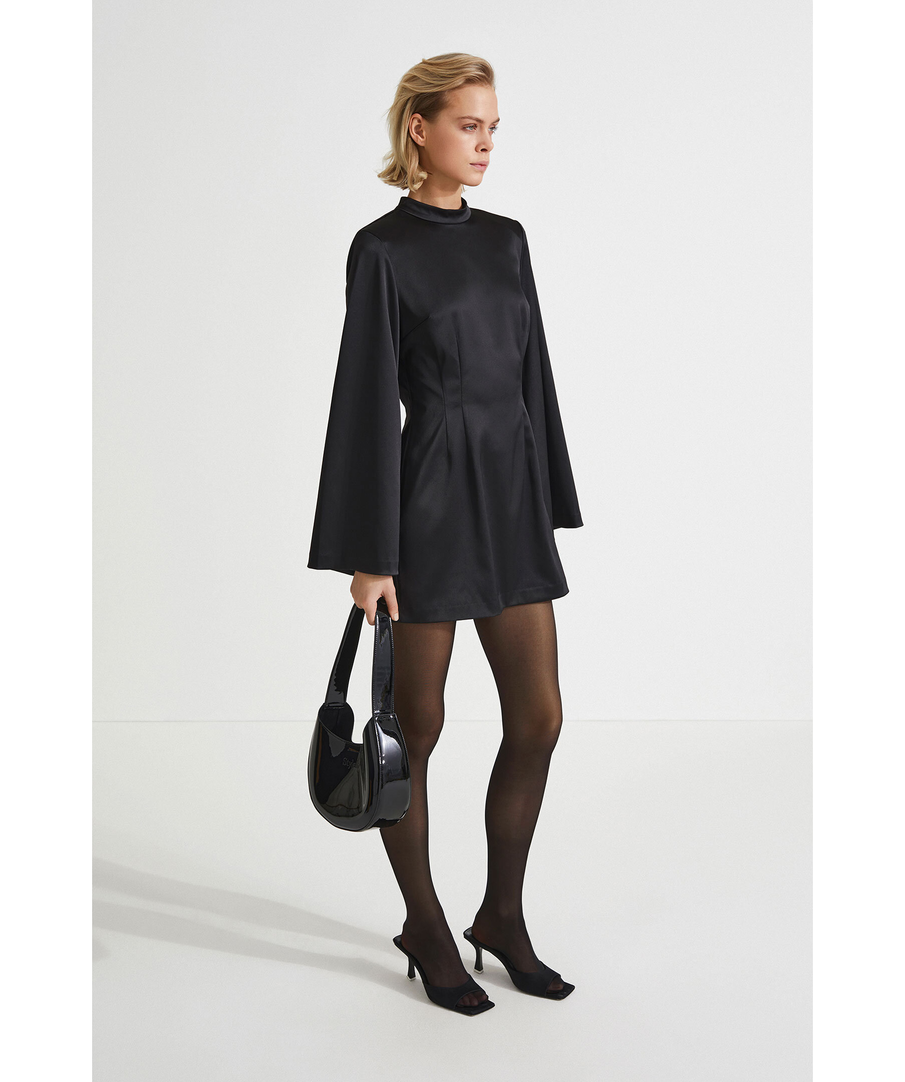 Bernalda är tillbaka i ett glänsande tyg den här säsongen med sin korta semi-fitting design och en vacker halsringning med krage, tunna axelvaddar och utsvängda fullängdsärmar med dragkedja i vänster sidsöm för enkel stängning. Den är gjord i Styleins fina texturerade och lättskötta crepekvalitet och passar perfekt till ett par knähöga stövlar på kvällen.