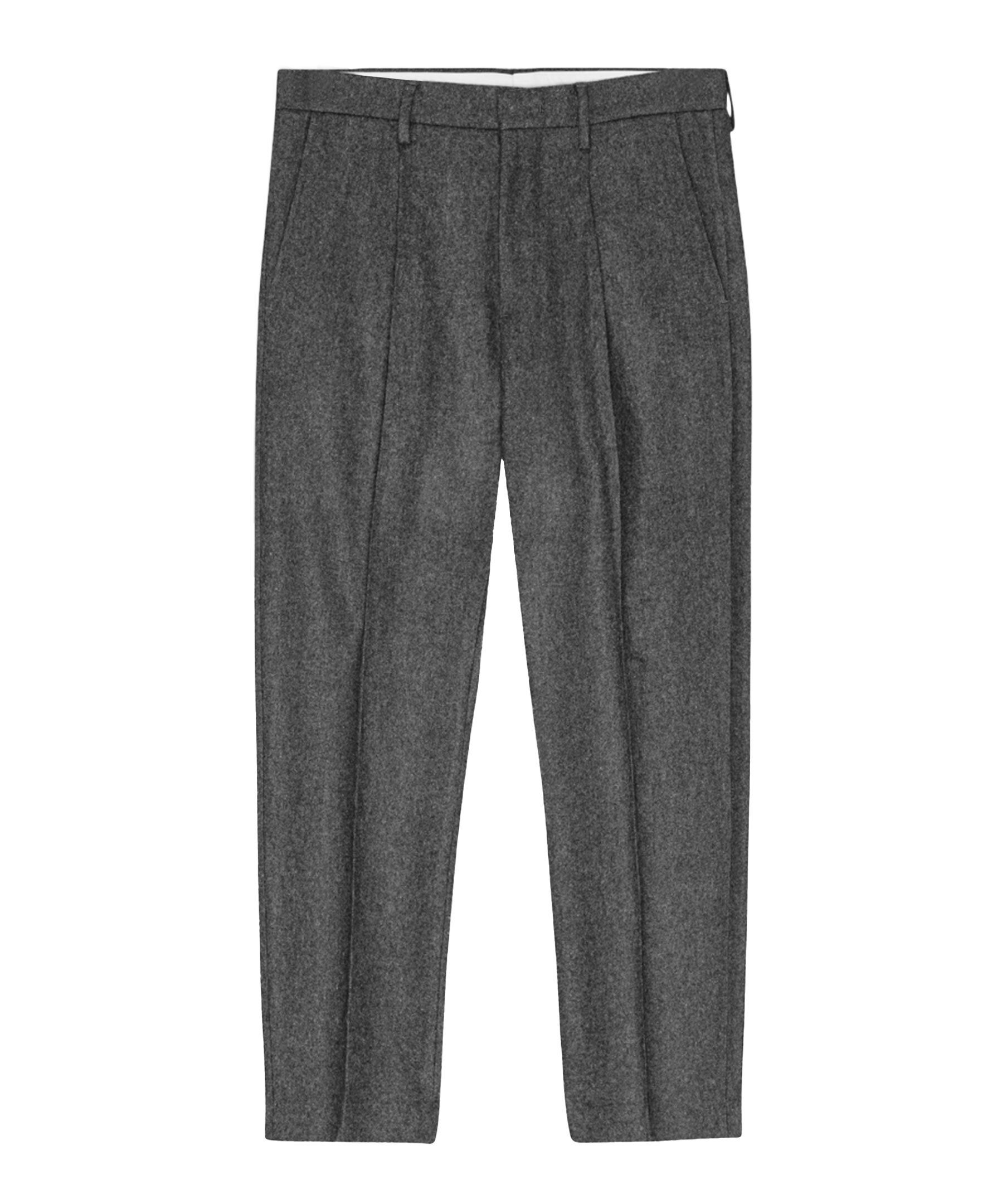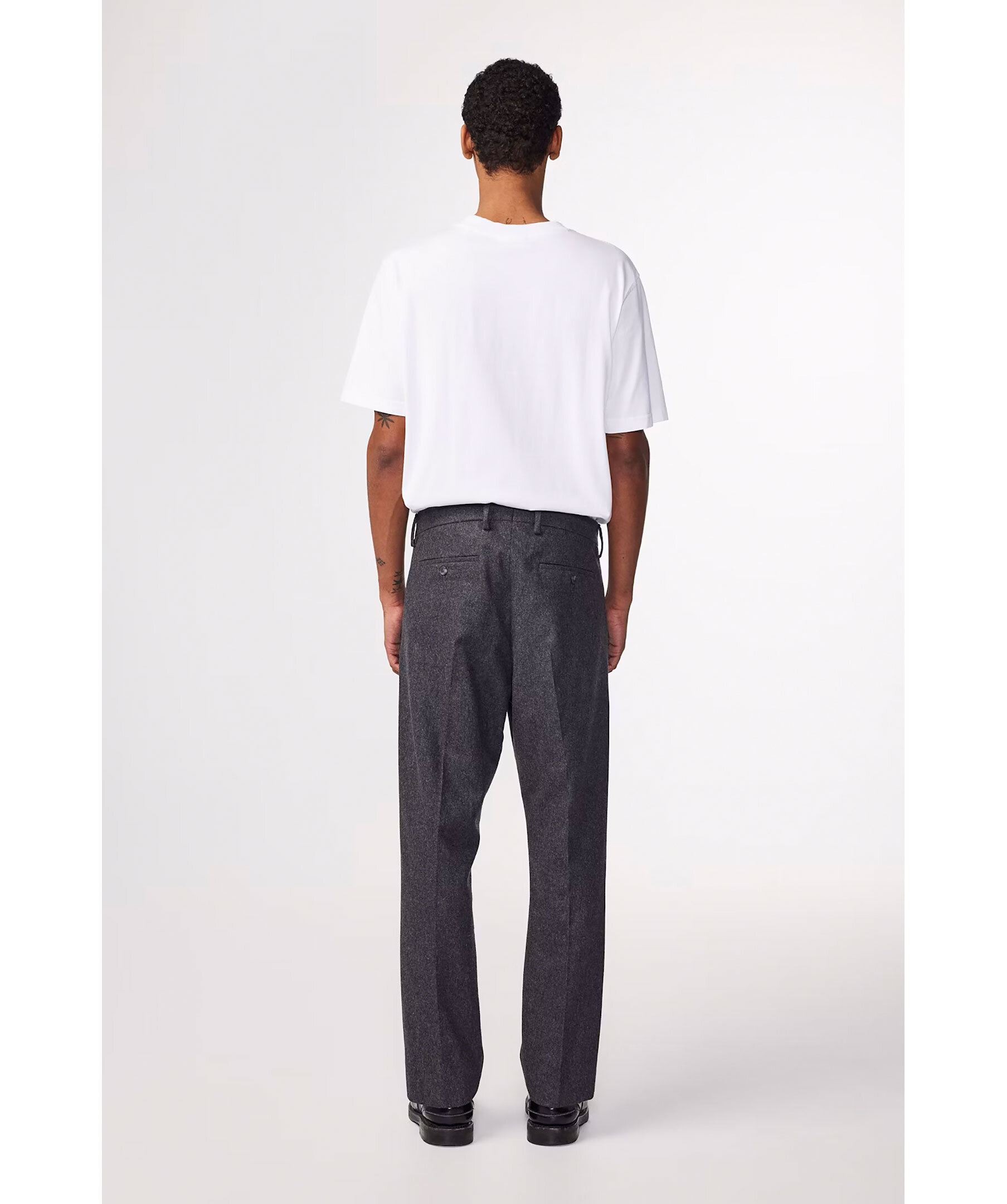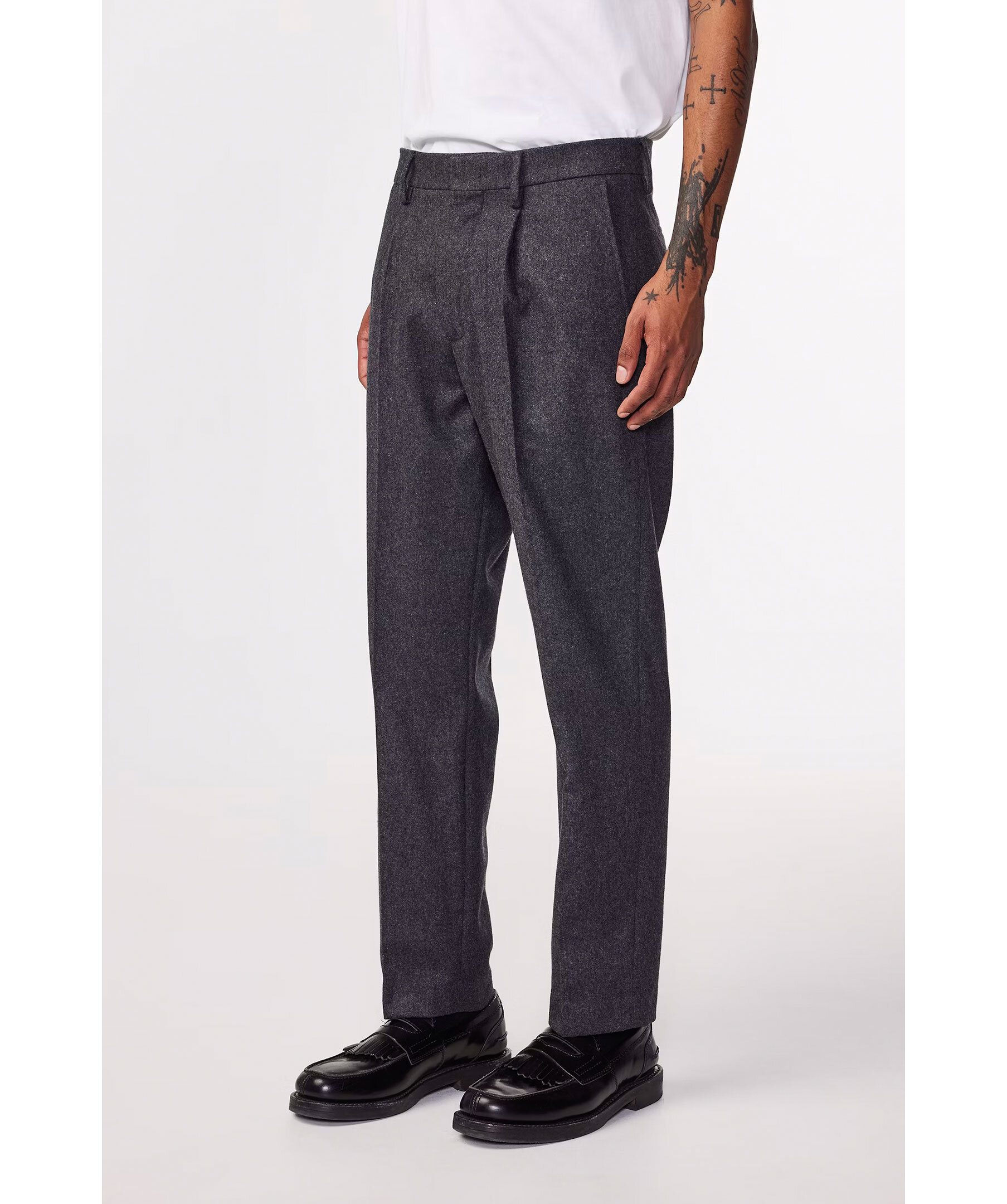 Mörkgråa kostymbyxor från NN.07. Gjorda i regular fit med avsmalnande ben, tillverkade i en 380 g/m2 återvunnen ullblandning melangetwill. Med pressveck, blindfåll och dold stängning.