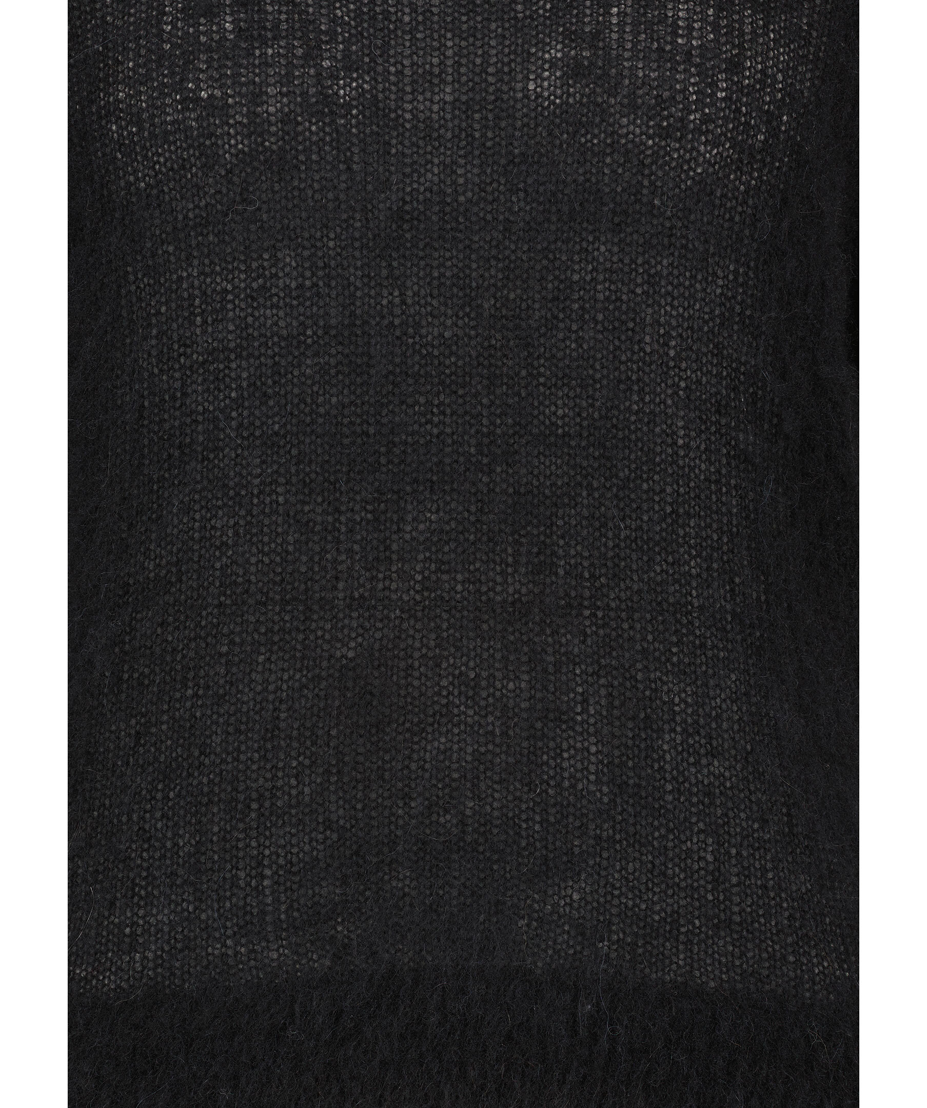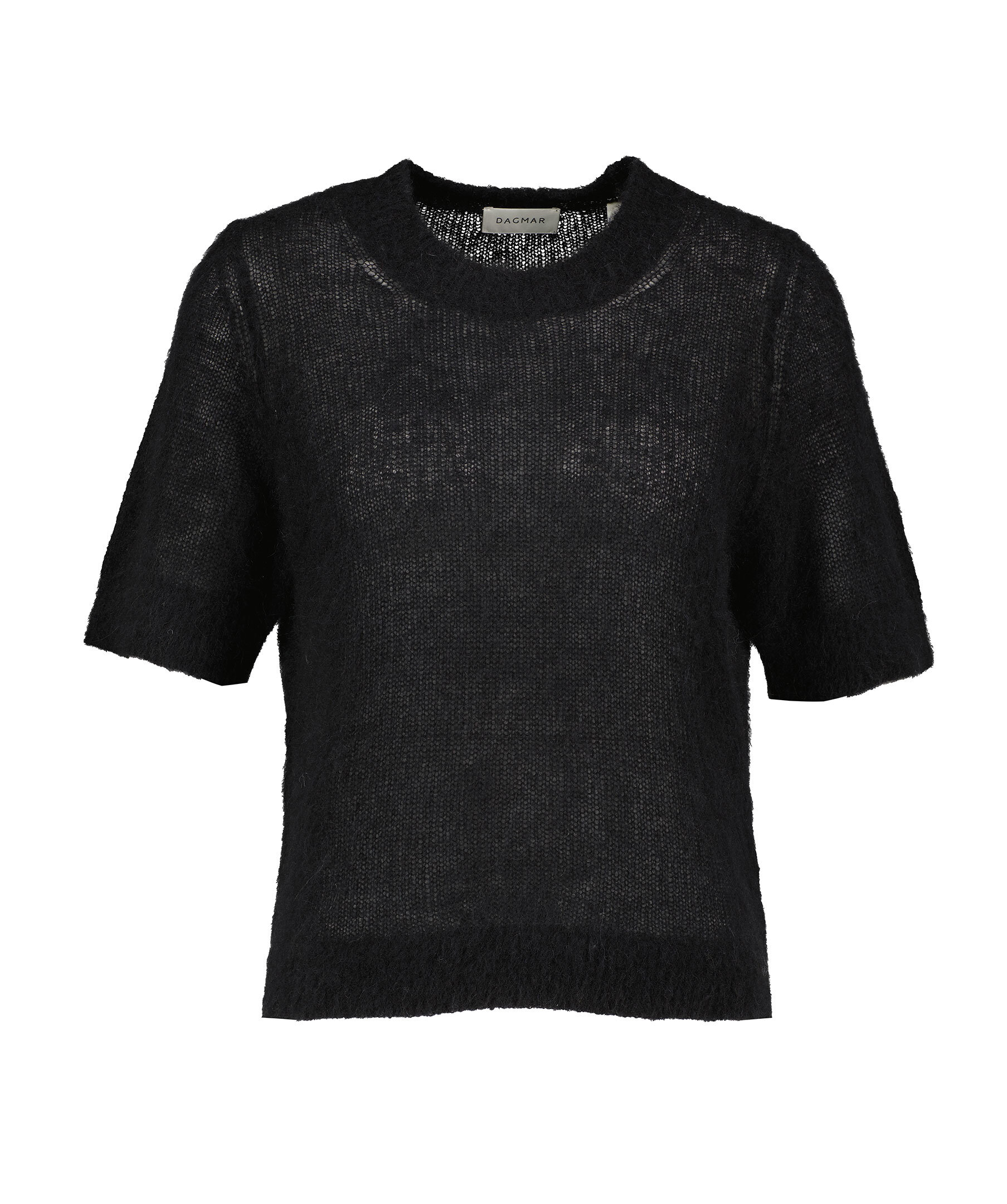 Svart stickad topp från Dagmar. Toppen har armbågslånga ärmar, rund, ribbstickad halsringning och är tillverkad i borstad alpackablandning.