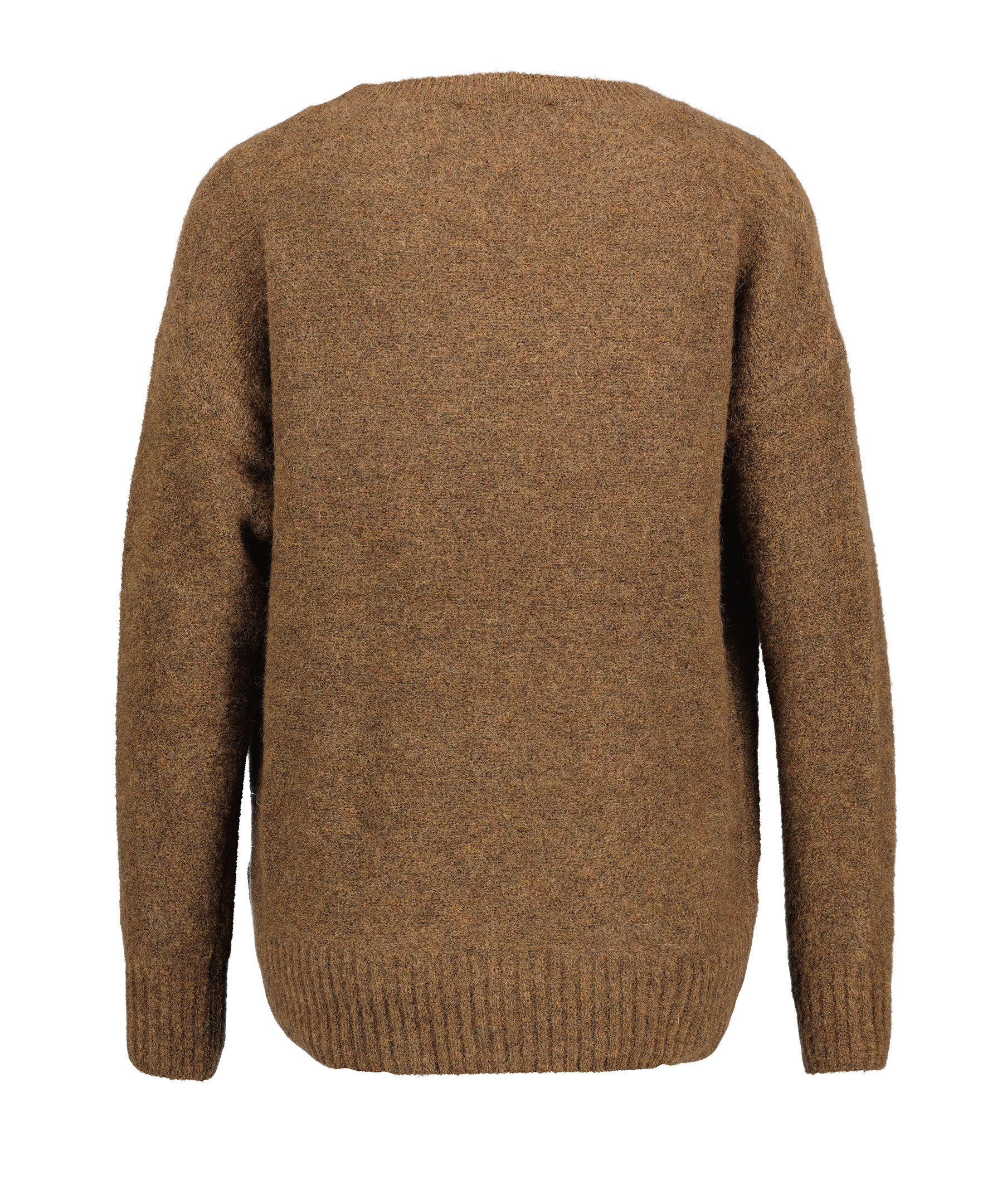 Brunmelerad tjocktröja från My Aurora. Ribbad rundhalsringning. Tröjan är gjort av en ullblandning.