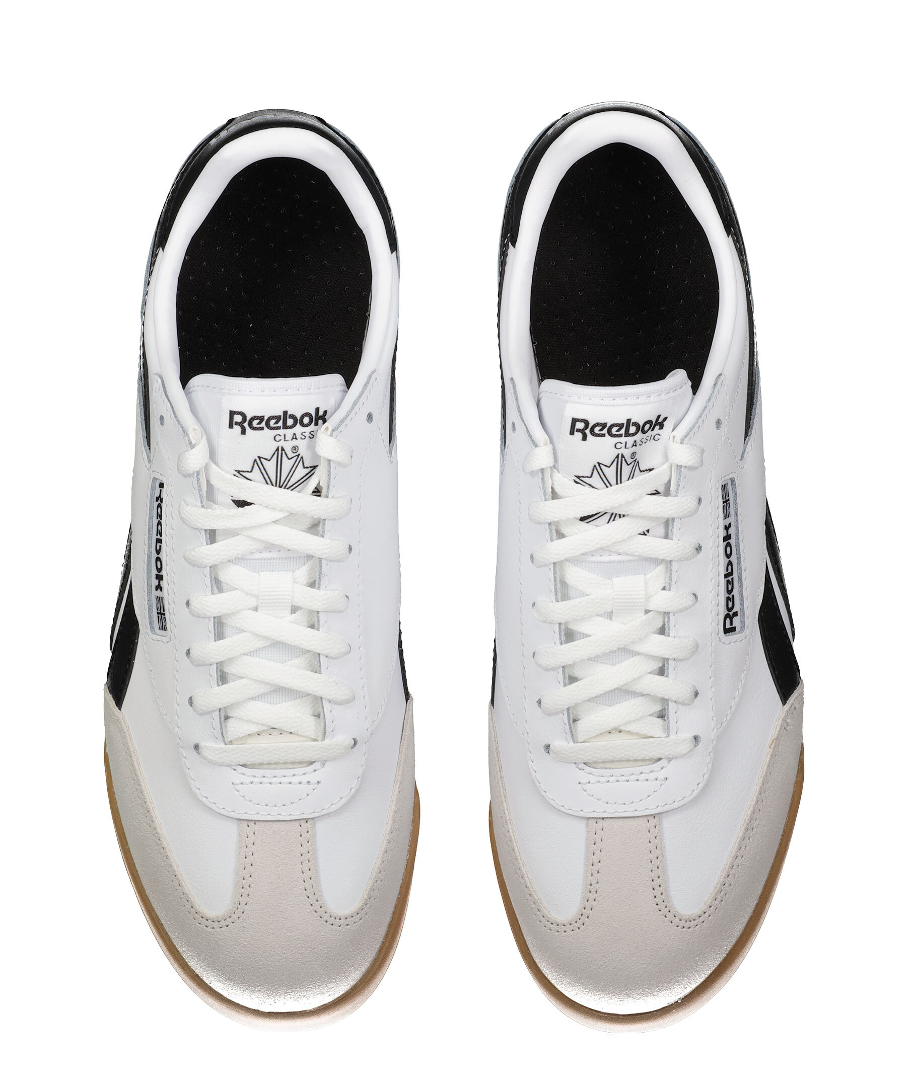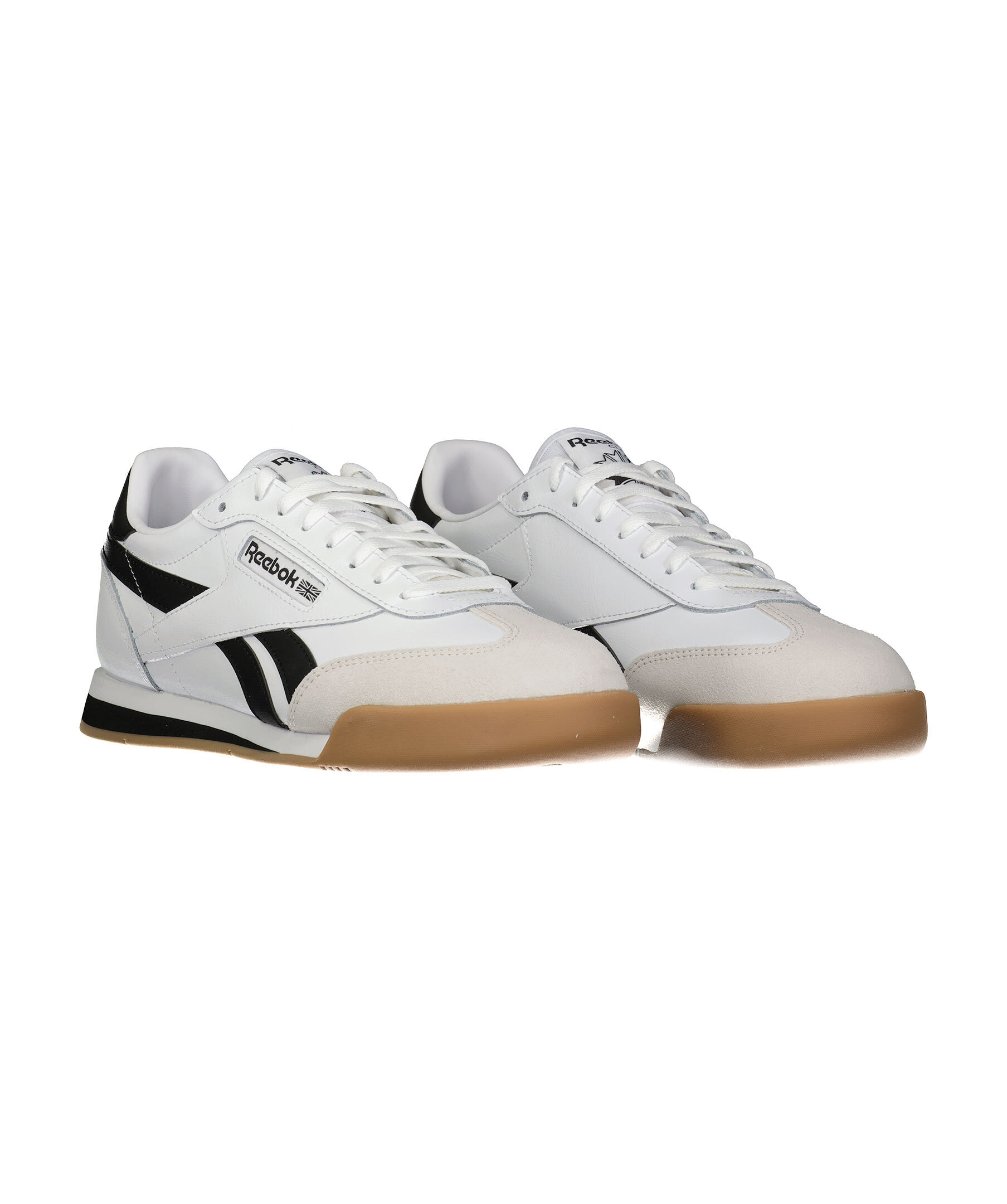 Vita sneakers från Reebok. Skorna har detaljer i mocka och svarta delar. Logotyp på plösen, utsidan av skon samt på hälen. Gjorda i läder med gummisula.