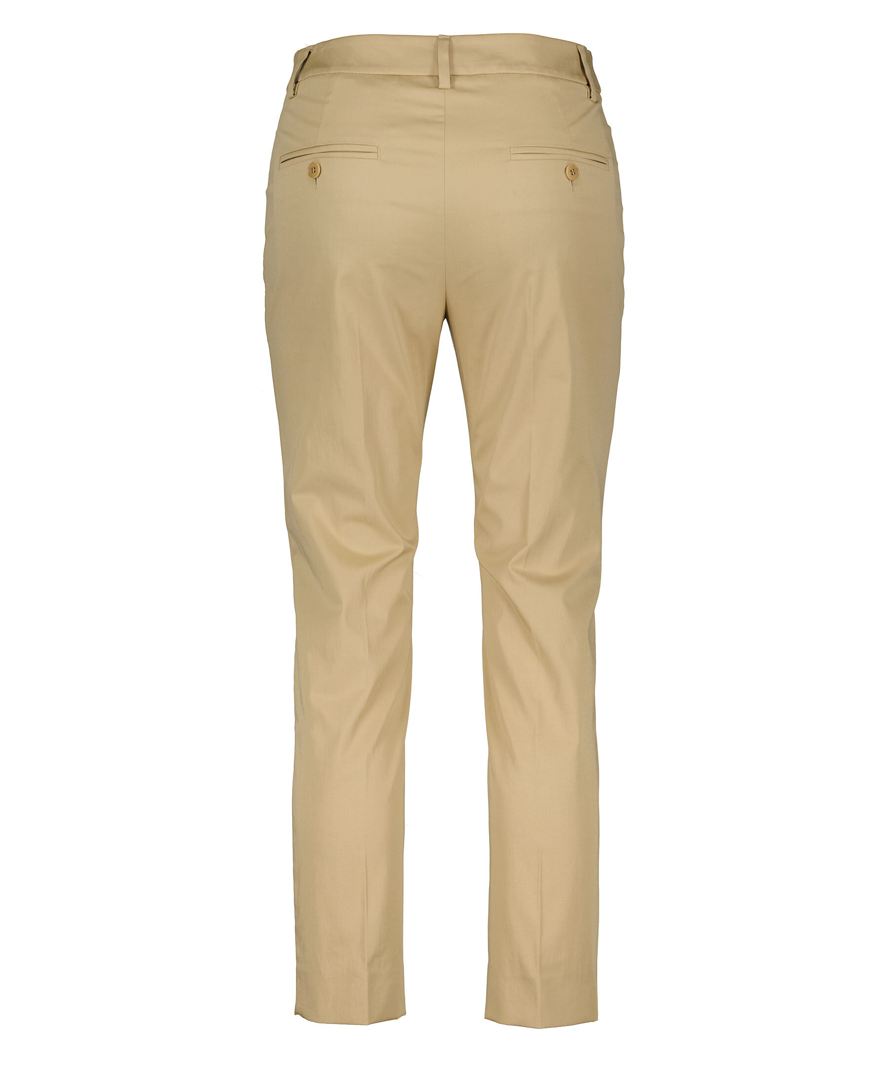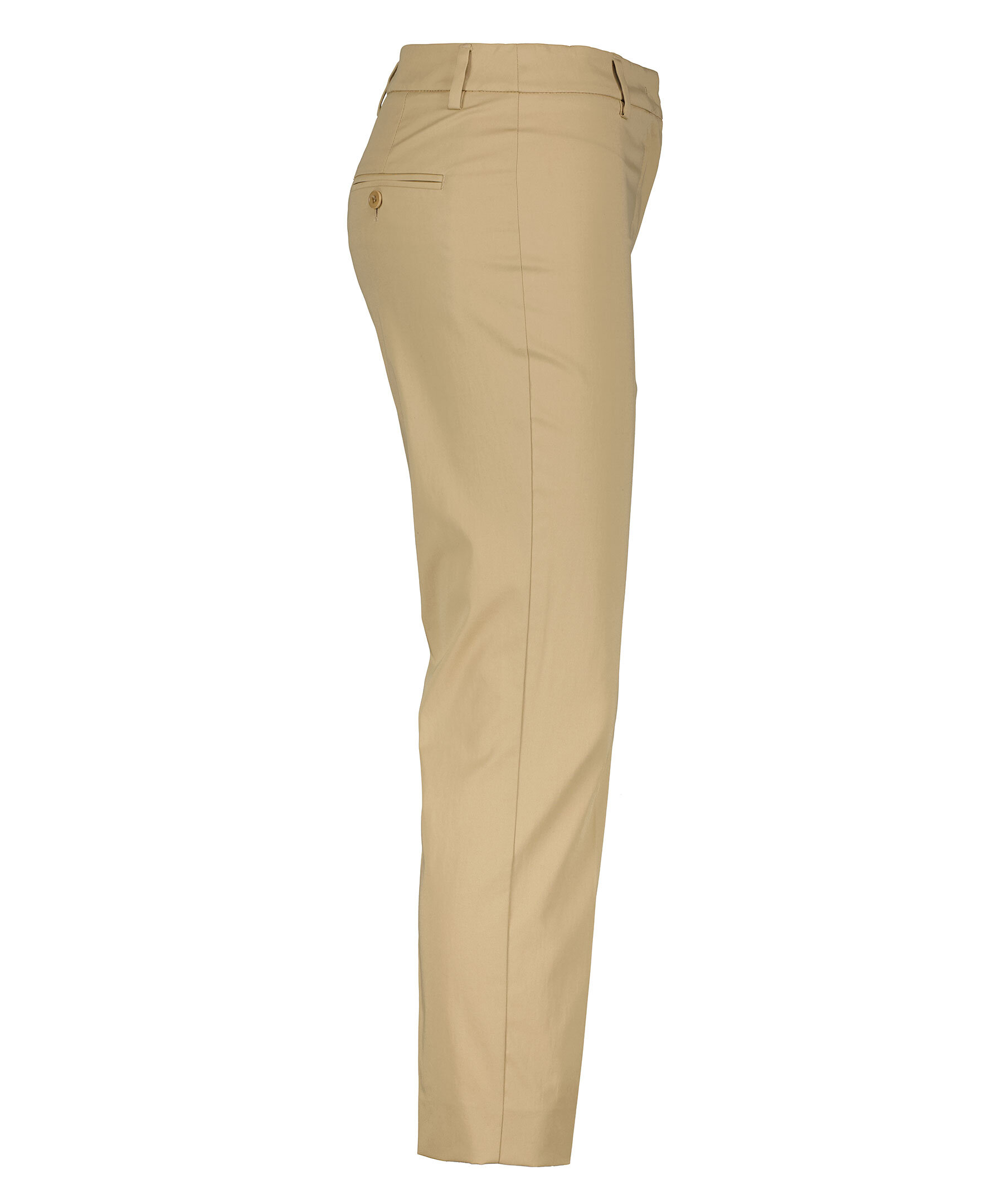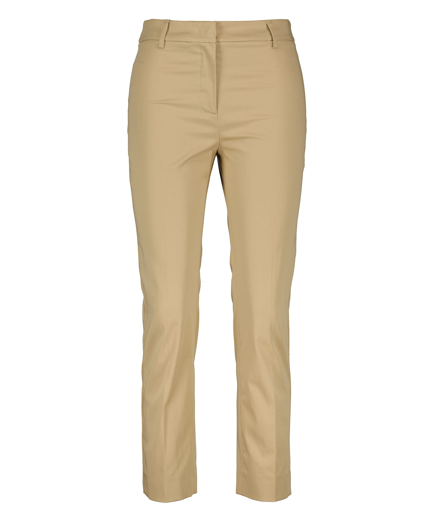 Beiga byxor från Max mara weekend. Croppad längd och avsmalnande byxben. Gylf med dragkedja och hyska och hake fram. Pressade veck fram och bak. Bälteshällor i midjan. Två fickor baktill med knapp.