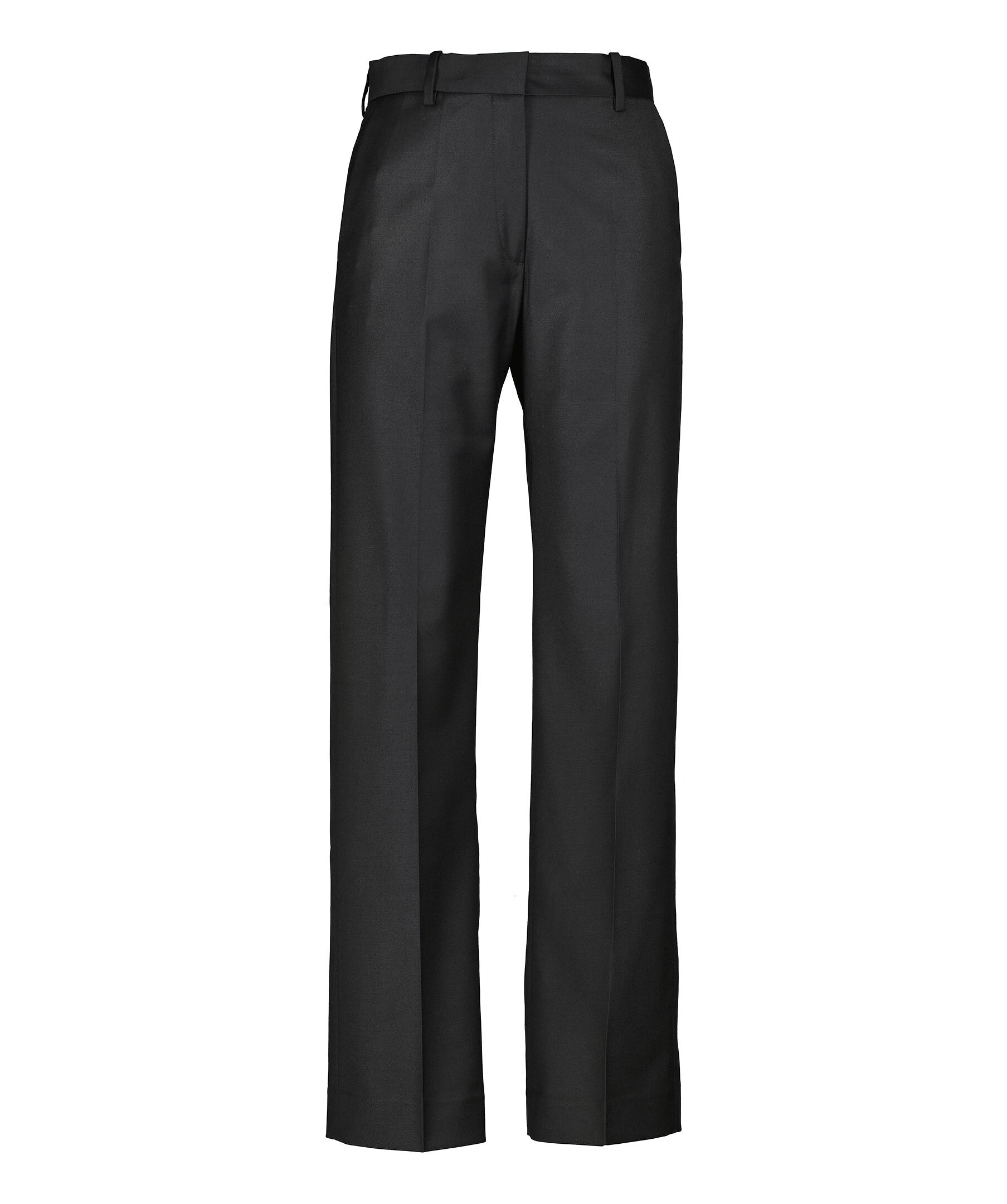 Svarta kostymbyxor från Dagmar. Byxorna har låg midja med bälteshällor, pressveck fram och bak samt två sidfickor och två passpoalfickor bak. Tillverkade i en ullblandning.
