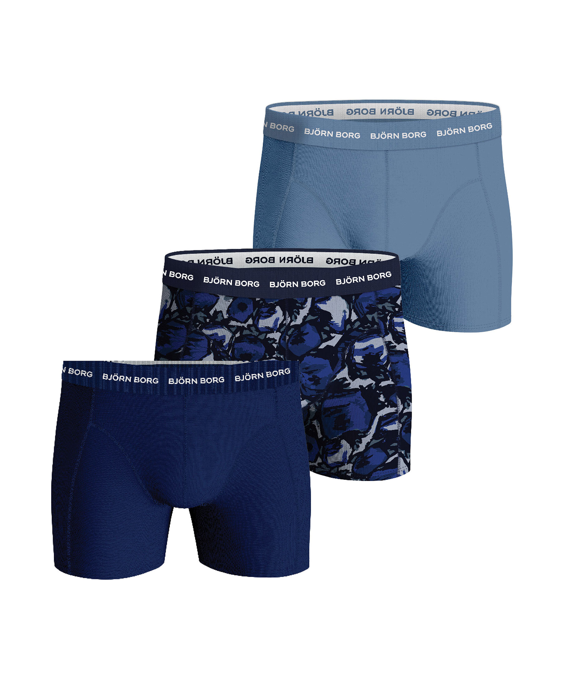 3-pack kalsonger från Björn Borg i färgerna mörkblått, ljusblått samt ett par mönstrade. Kalsongerna har medelhög midja med resår och logotyp. Tillverkade i en stretchig bomullsblandning.