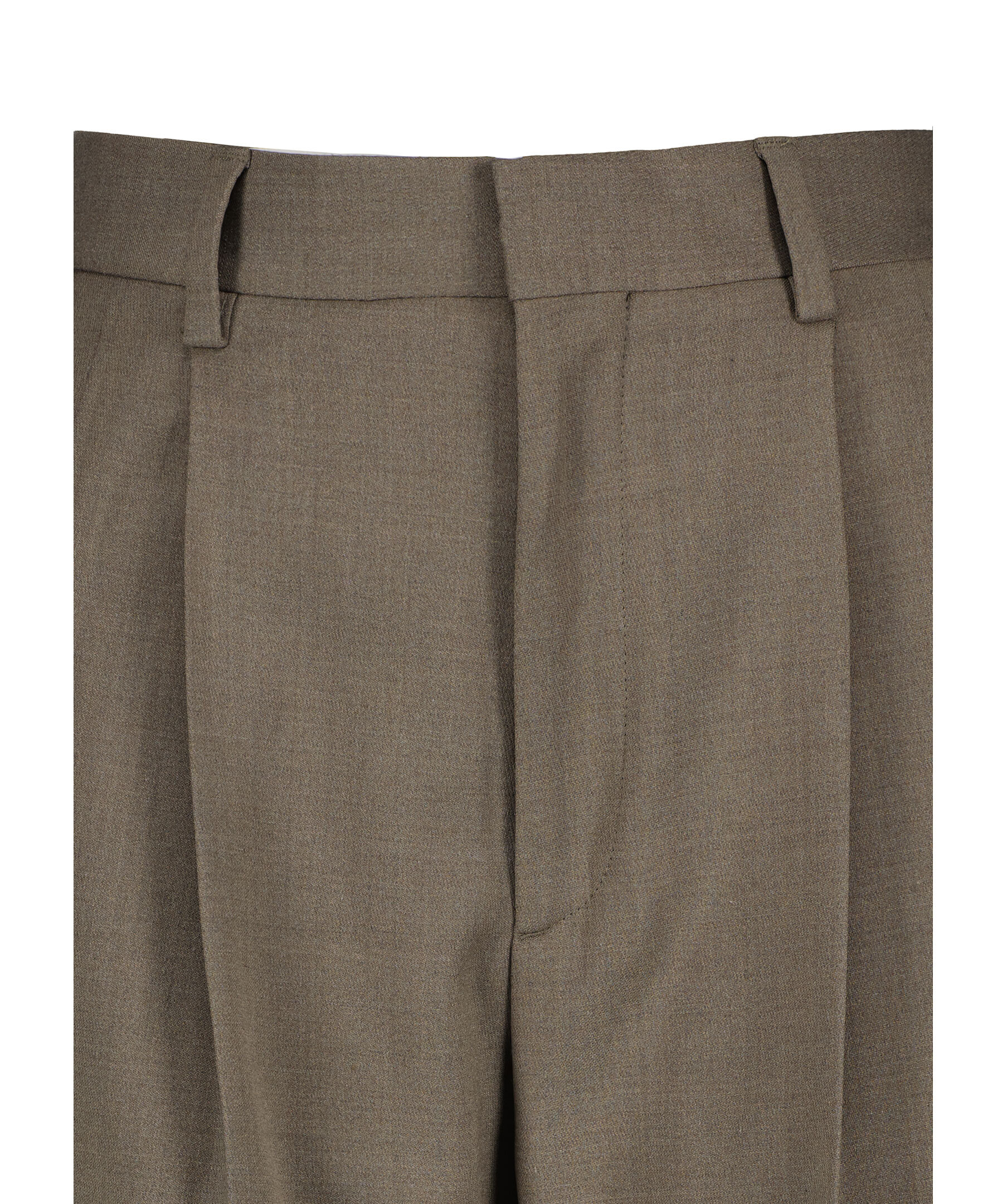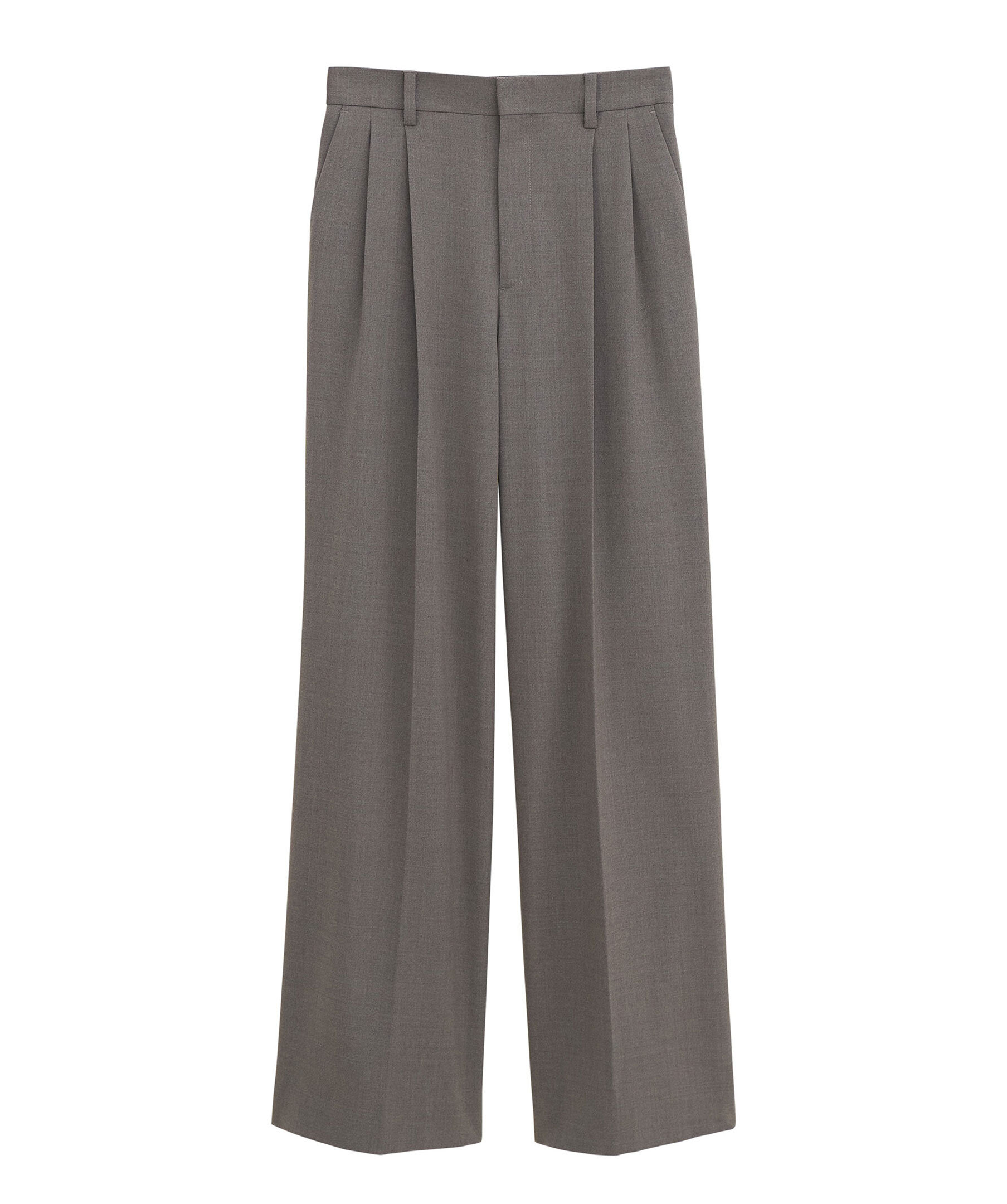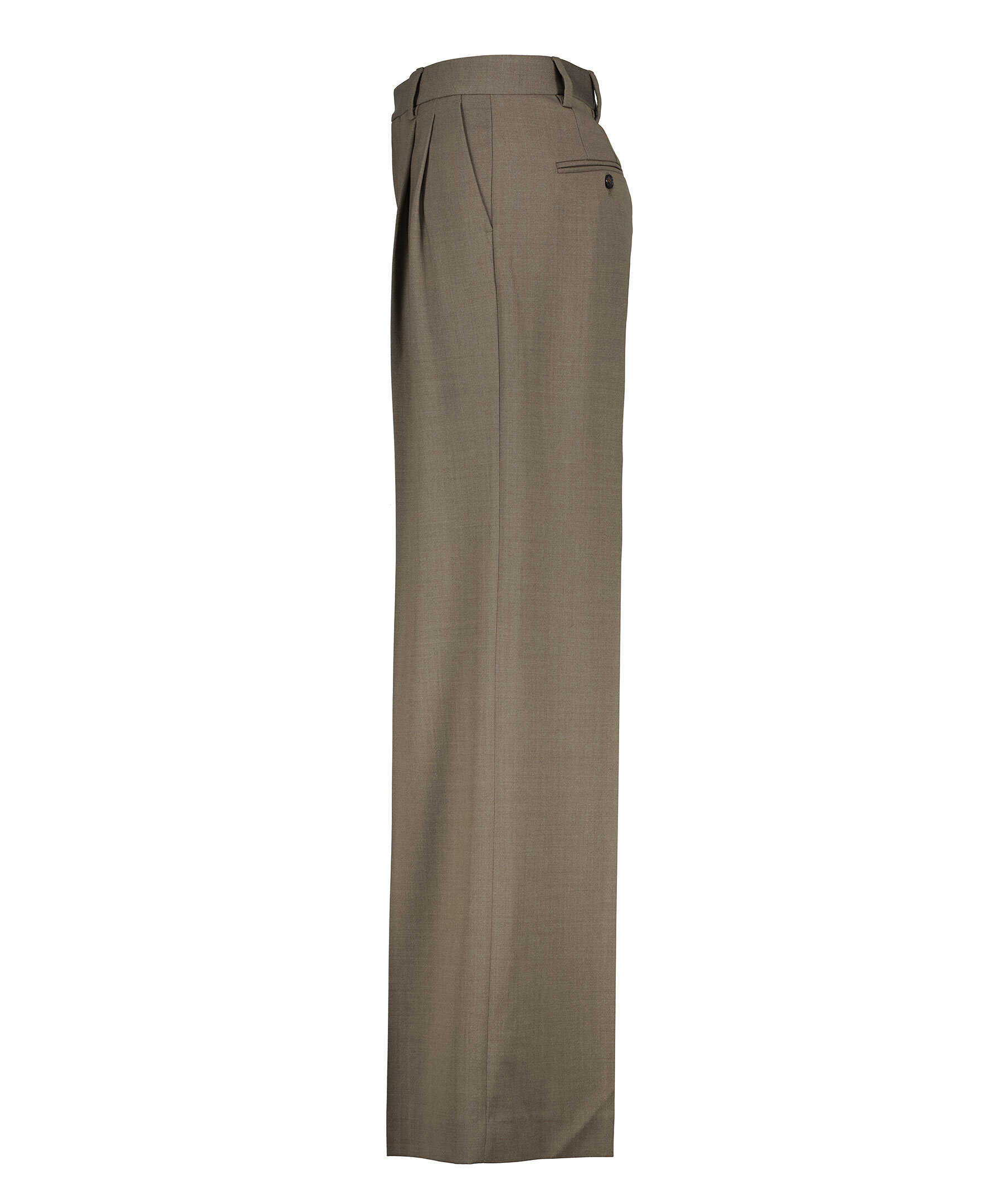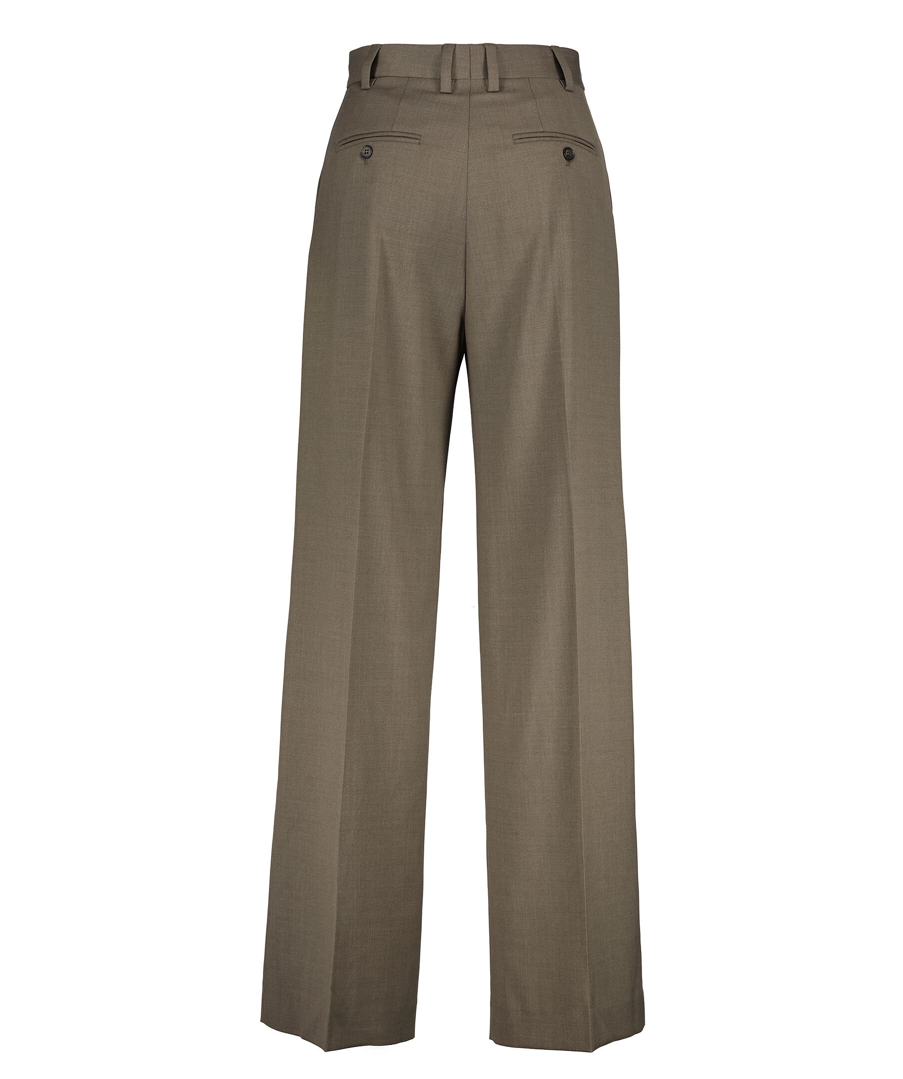 Bruna skräddarsydda byxor från Filippa K. Byxorna har två sidfickor, två passpoalfickor med knapp baktill, pressveck, vida ben med extra lång längd, bälteshällor och en hög midja. Tillverkade i en ullblandning.