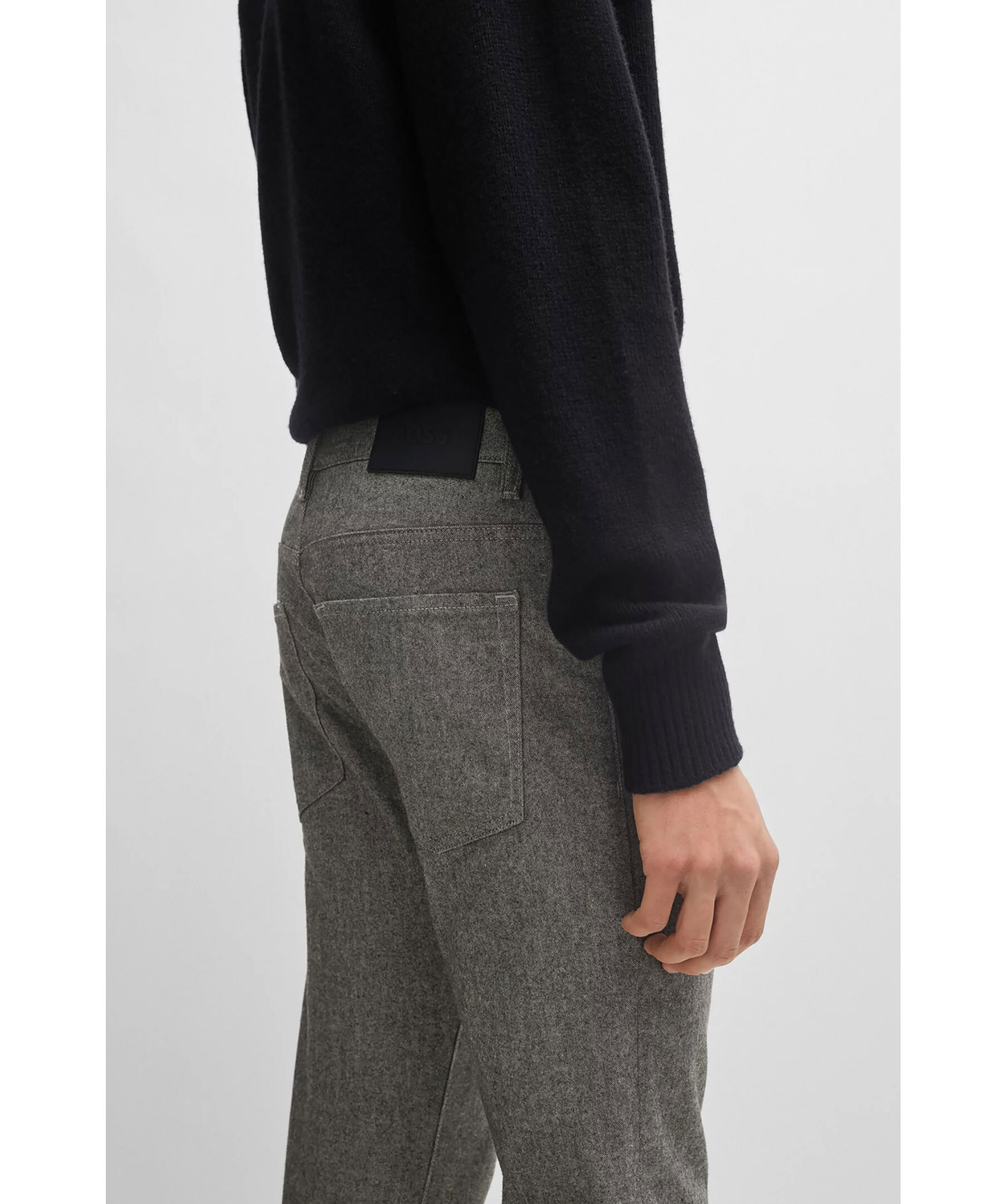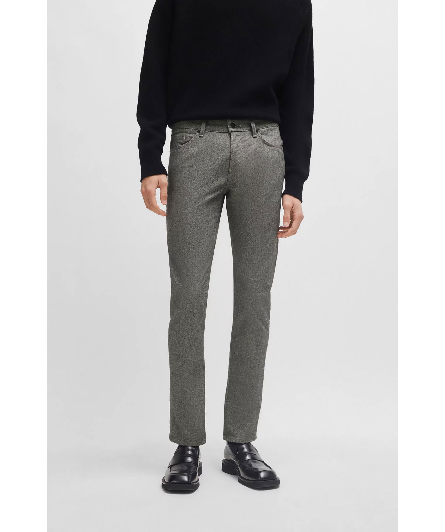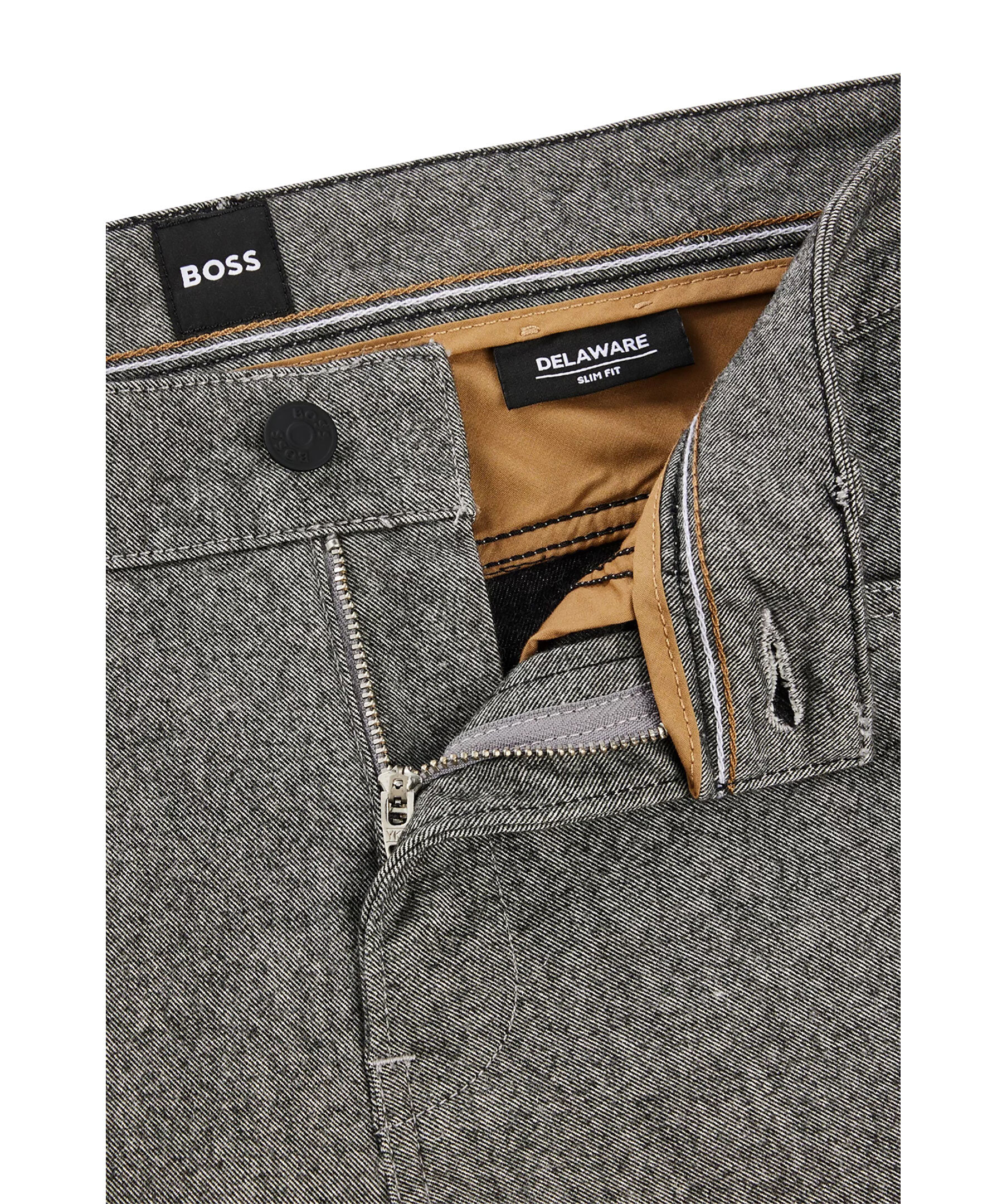 Gråa, melerade jeans från BOSS. Jeansen har normalhög midja, knapp- och blixtlåsstängning, fem fickor samt bälteshällor i midjan. Tillverkade i en bomullsblandning.