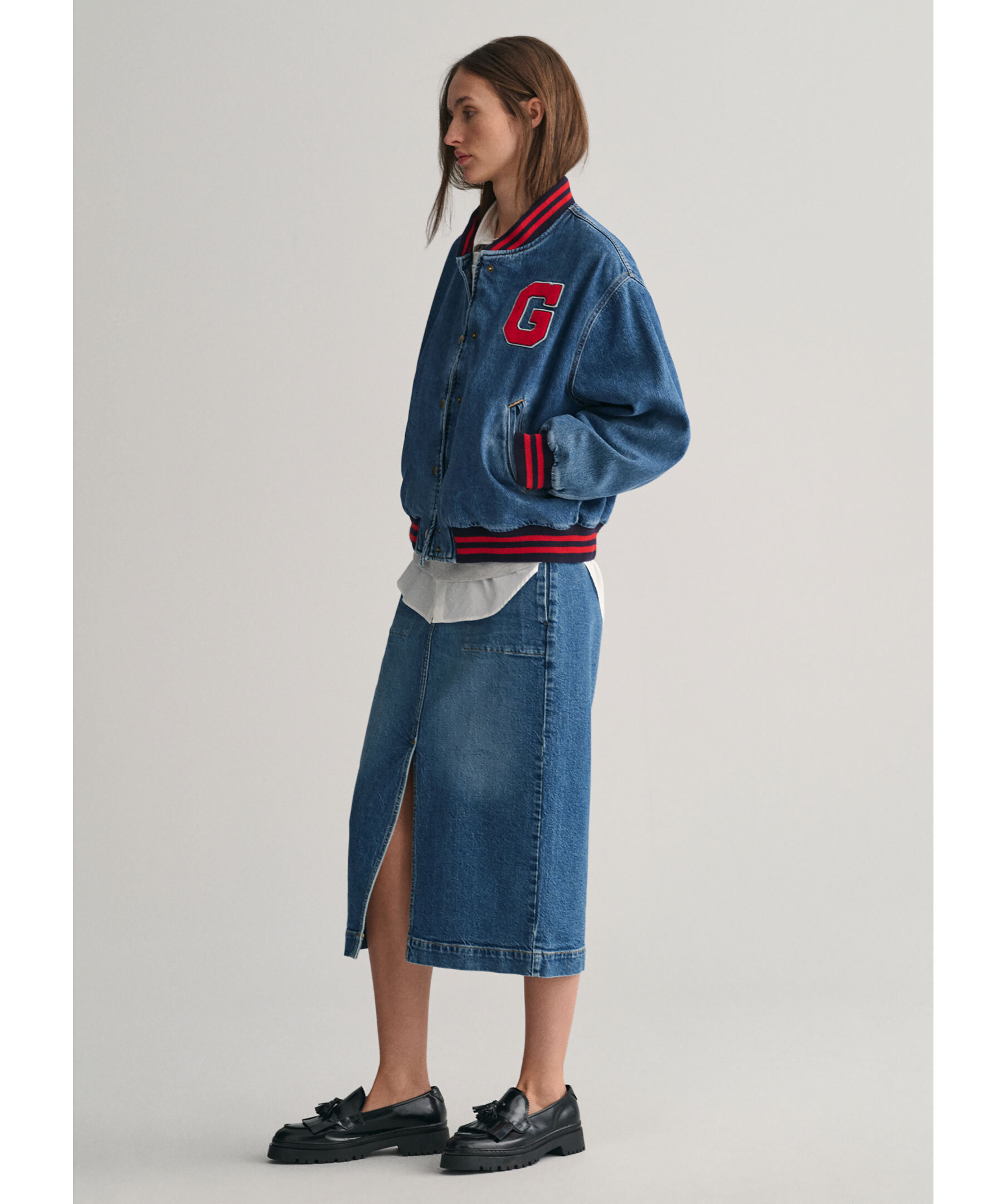 Gant. Denim slit skirt - Blå
