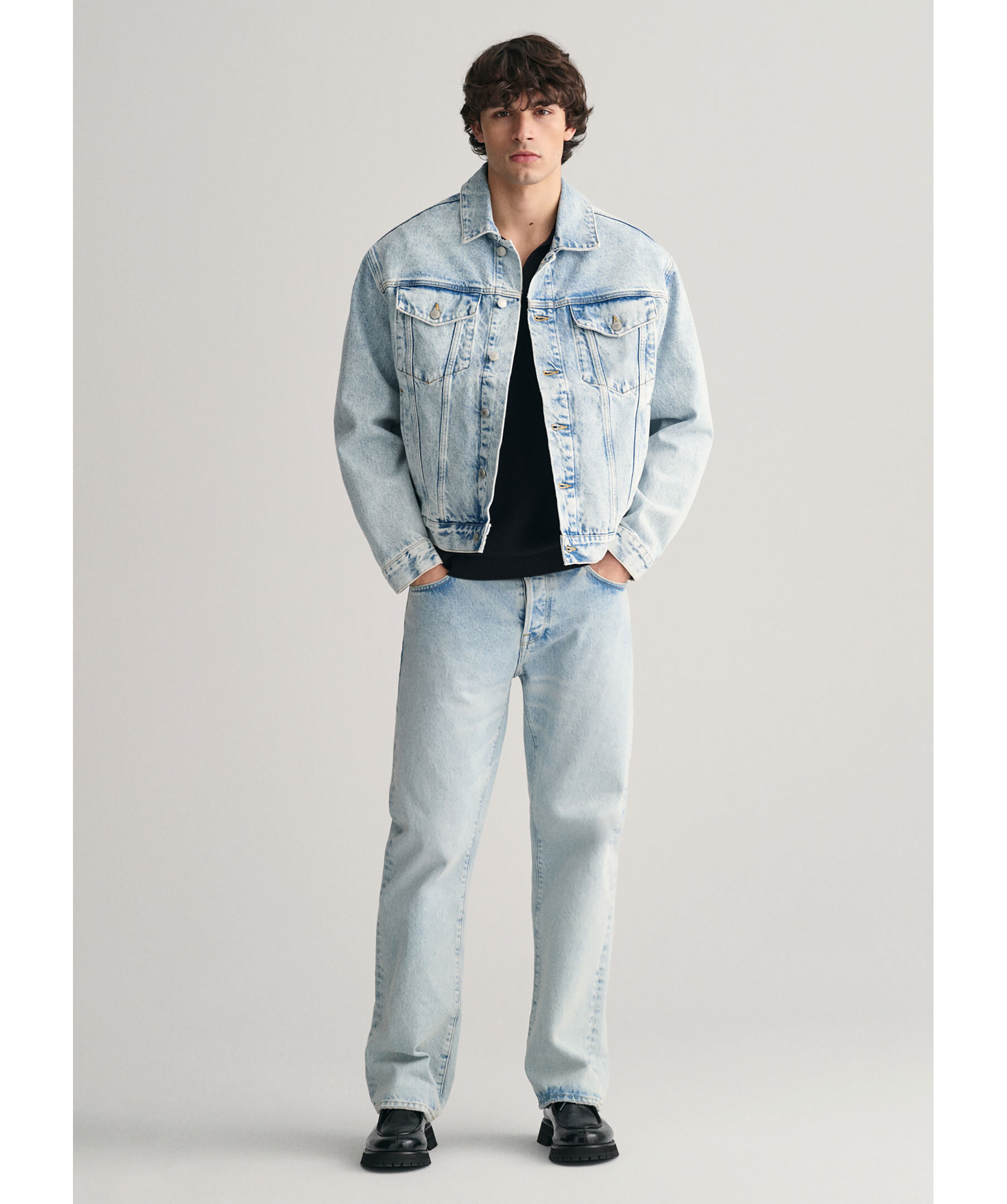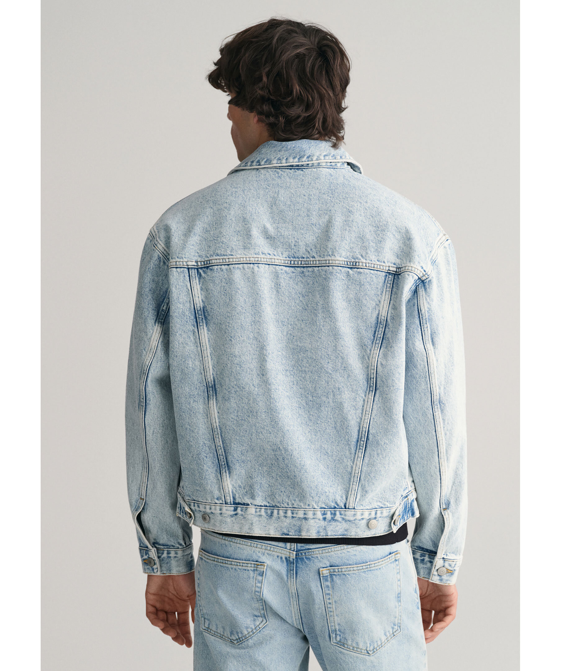 Ljusblå, vintageinspirerad jeansjacka från Gant. Jackan är gjord i en klassisk truckerstil och har urtvättade detaljer. Slutar strax ovanör höfterna, stängs med knappar framtill, har två sidfickor samt två bröstfickor med kontrastsömmar. Relaxed fit. Tillverkad i bomull.