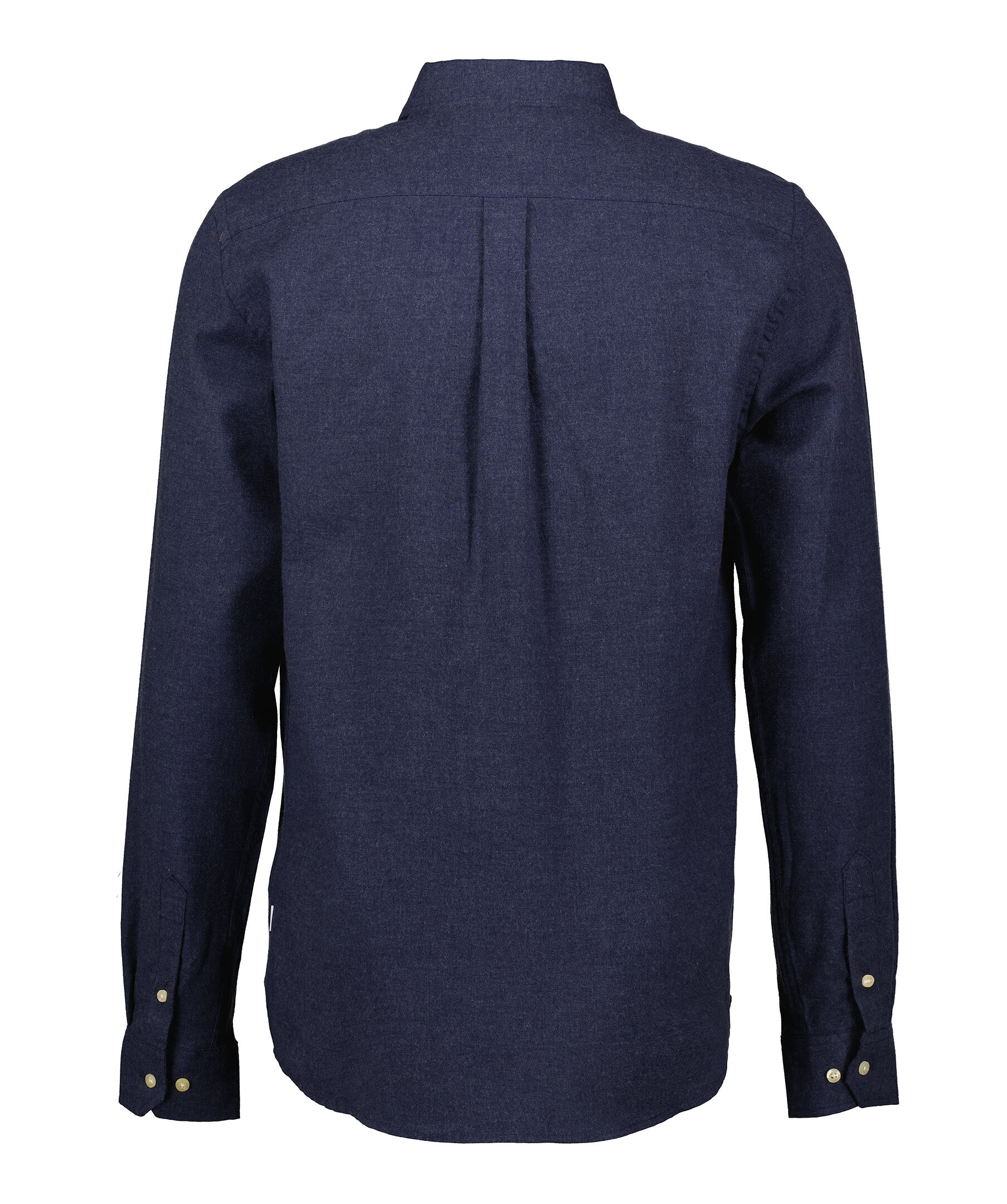 Blå melerad skjorta från Les Deux. Stängs framtill med knappar. Button down-krage. Broderad logotyp på vänster bröst. Enkla manschetter. Tillverkad i 100% Ekologisk bomull. Regular fit.