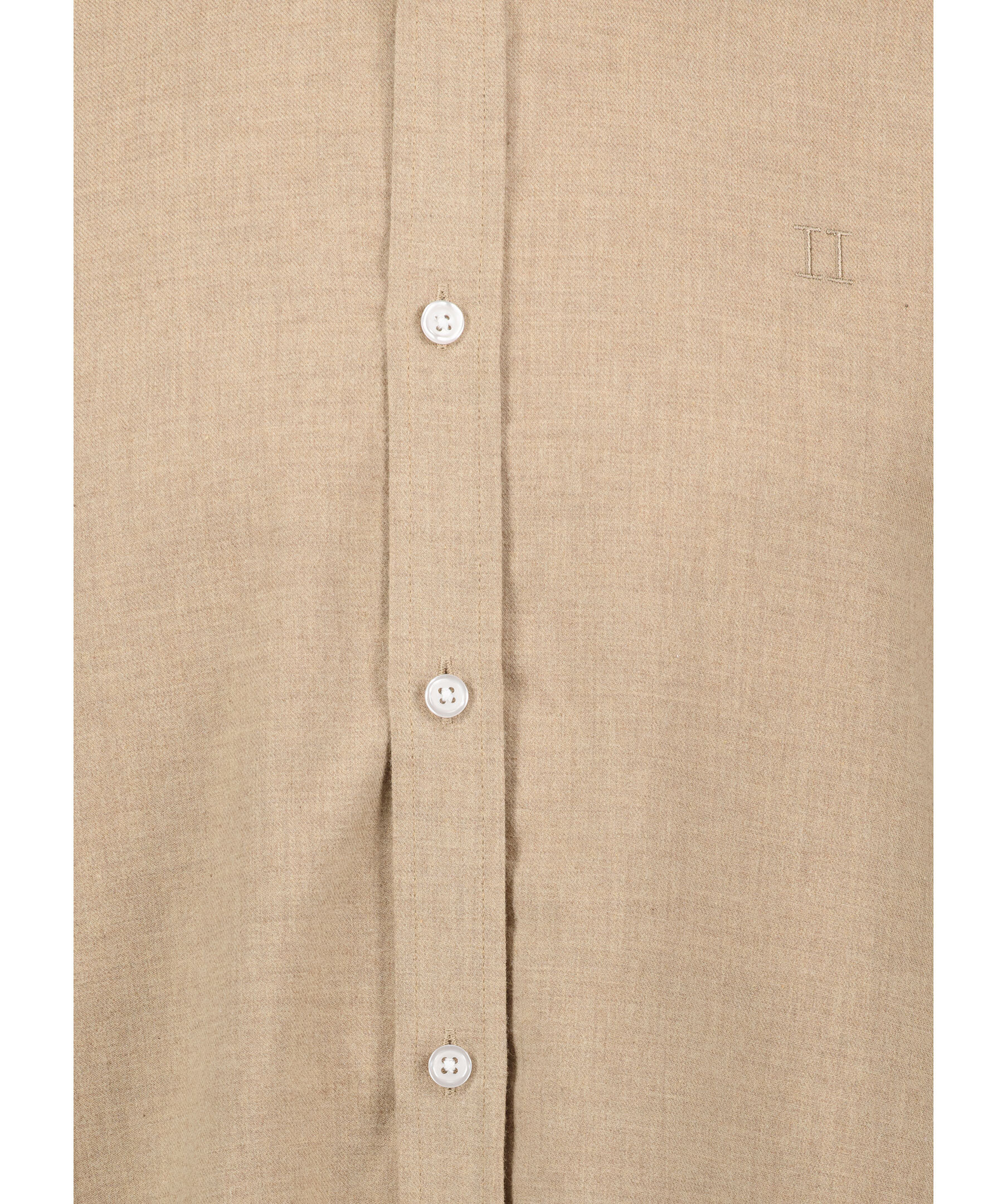 Klassisk beige melerad skjorta från Les Deux. Normal passform och button down-krage. Med mer längd baktill och i 100% bomull. Broderad logga på vänster bröst.