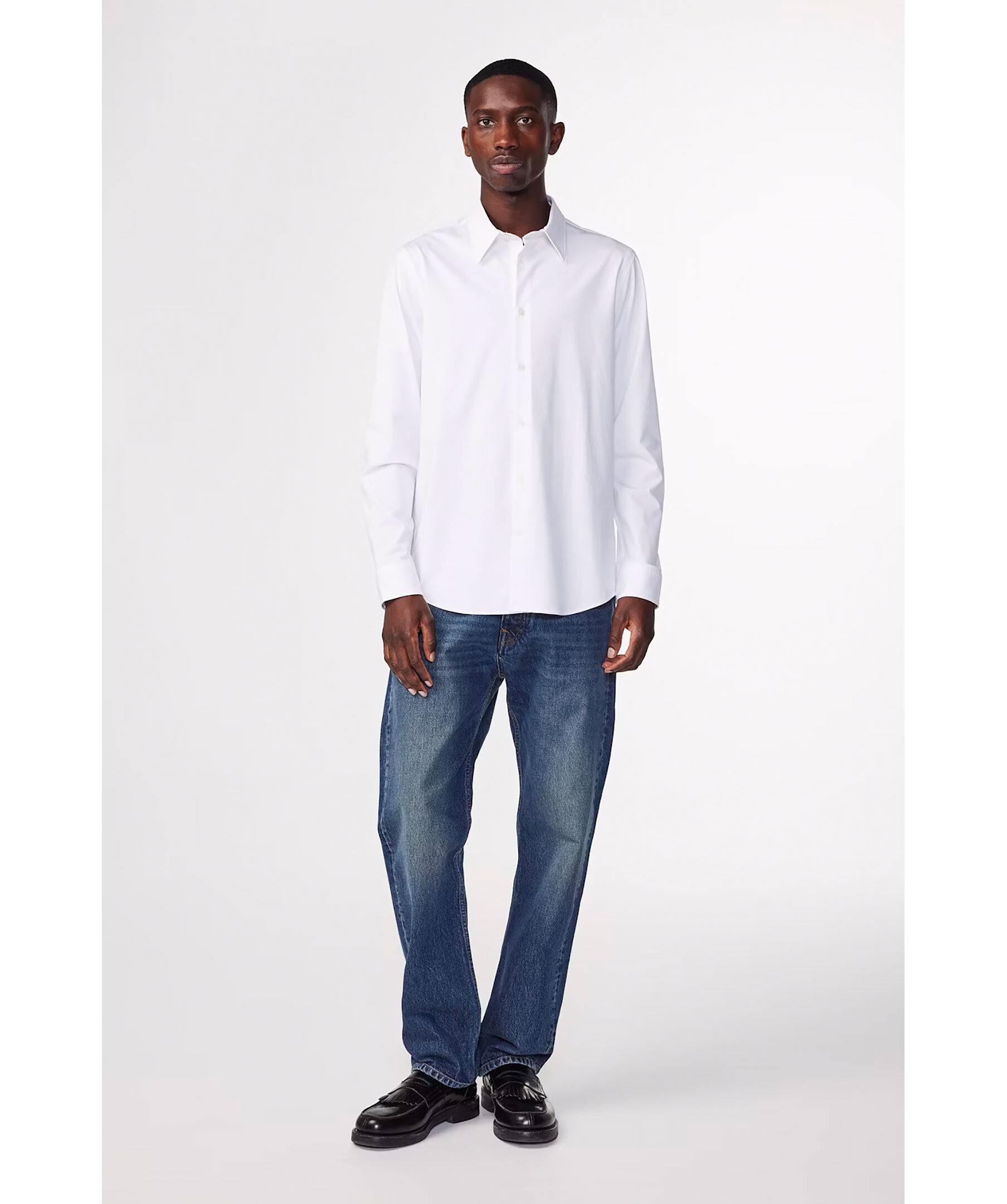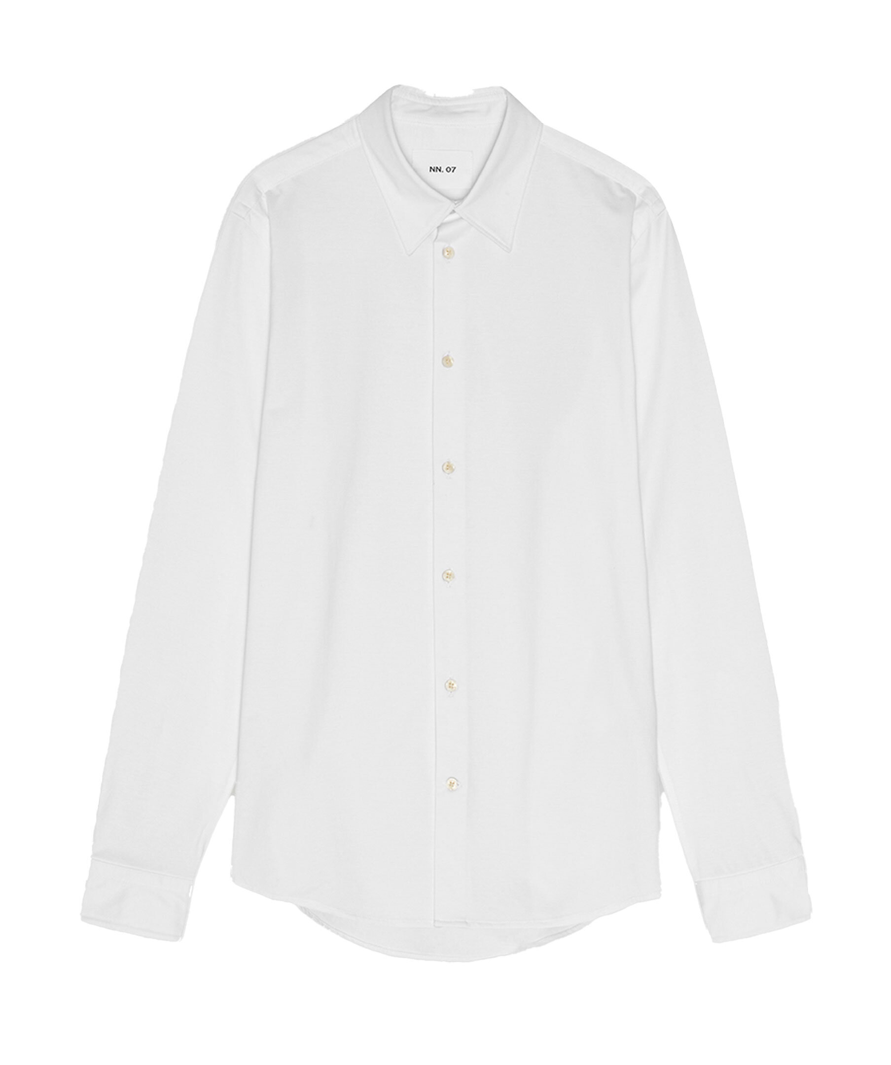 Vit skjorta från NN.07, tillverkad i en ekologisk bomullsblandning. Den är designad i en slim fit silhuett och försedd med pärlemorknappar.