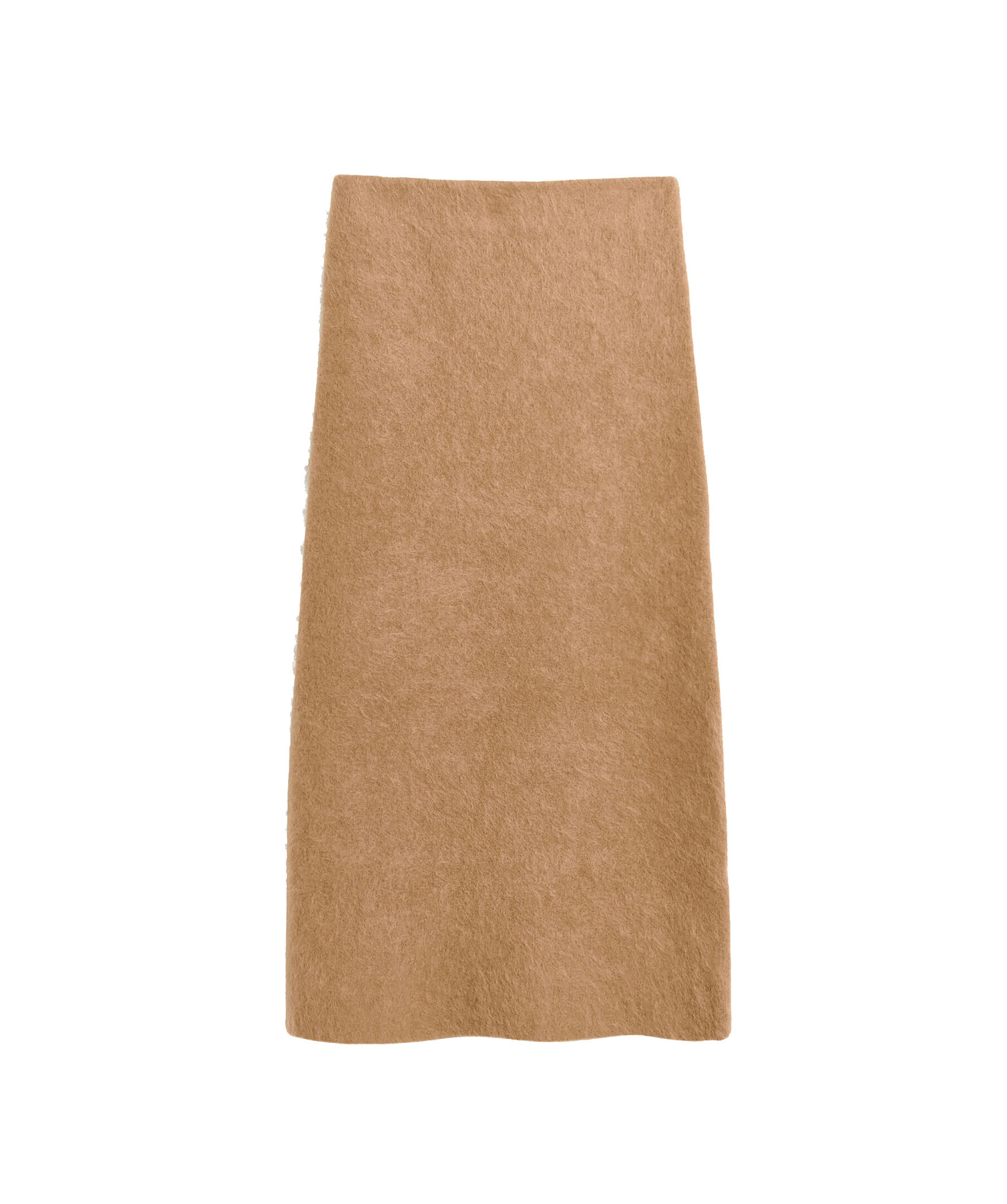 Beige kjol från By Malene Birger. Kjolen har en elastisk midja, rak siluett och slits baktill. Tillverkat av en fluffig ullblandning.