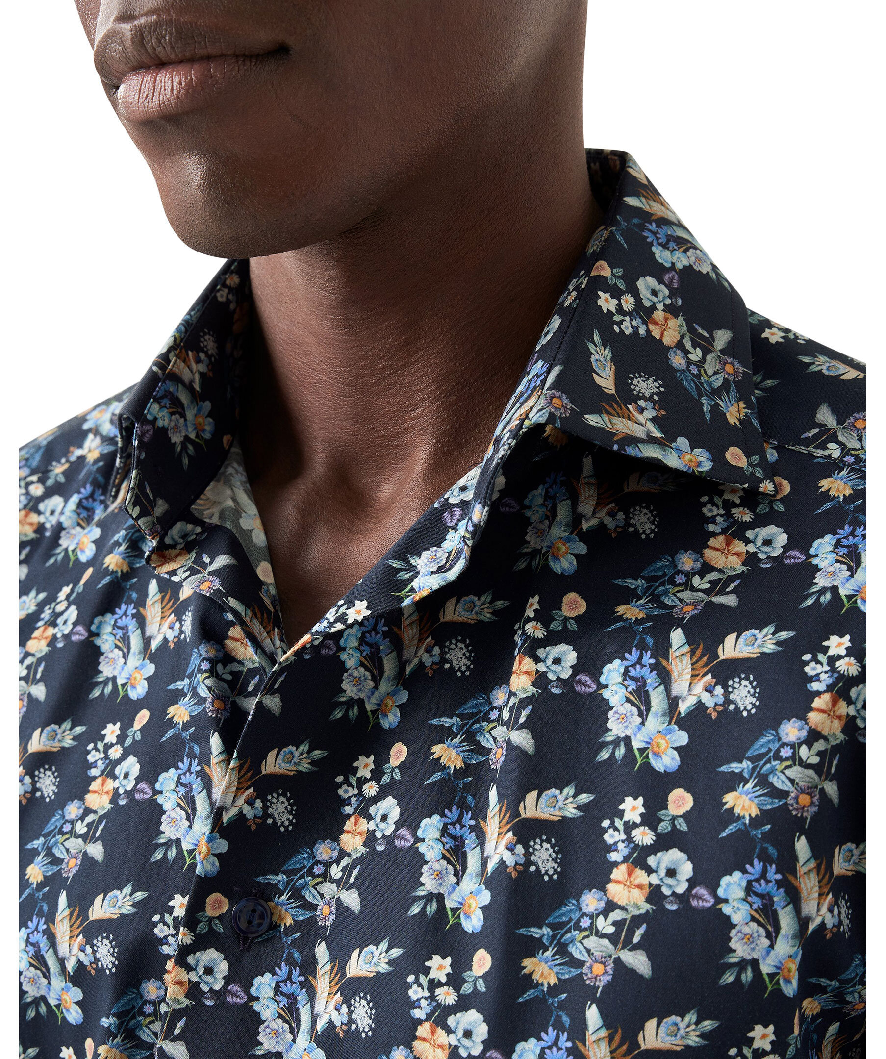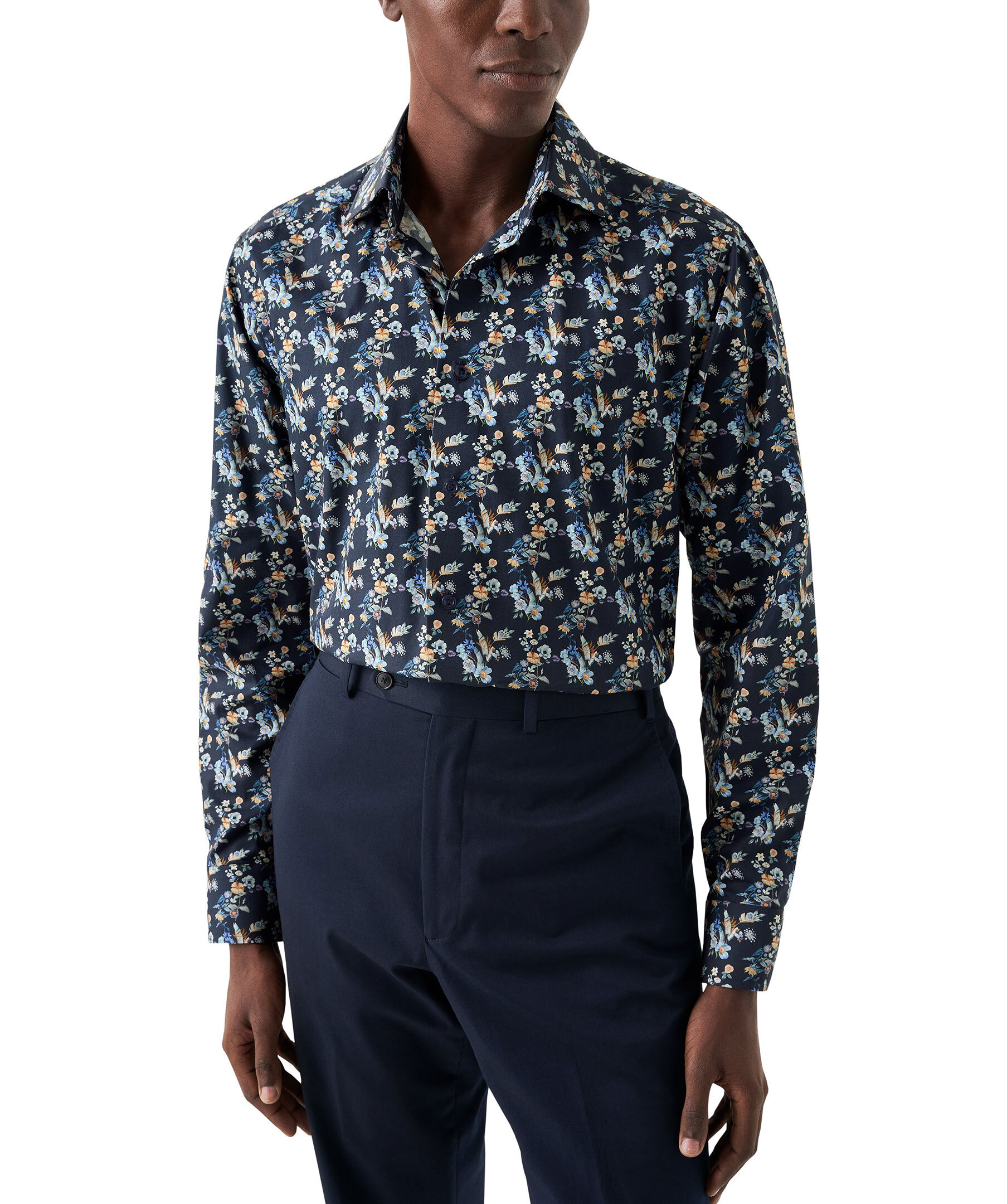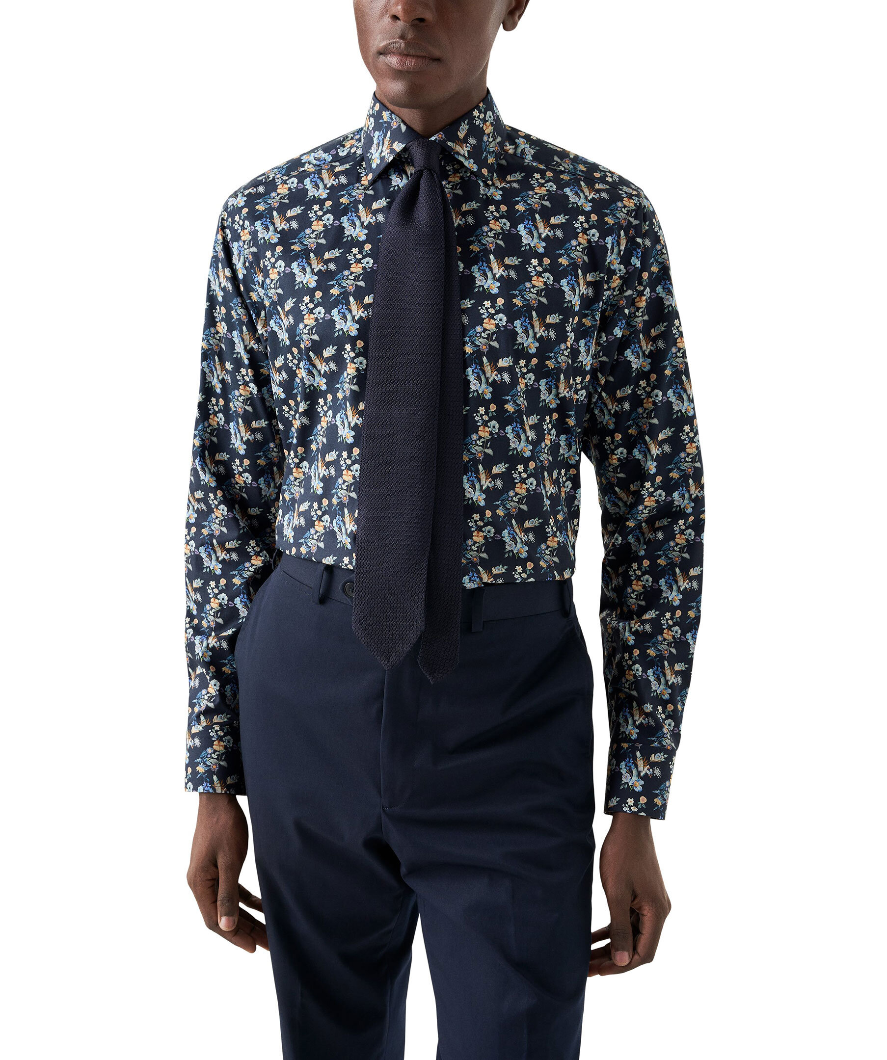 En stilren kostymskjorta med ett livfullt blommönster, tillverkad i vårt extra bekväma twilltyg av 100 % bomull med en fin lyster och en diskret textur. Ett vår- och sommarplagg med klassiska knappar och en nästintill skrynkelfri finish för en oklanderlig look. – 100 % bomull.