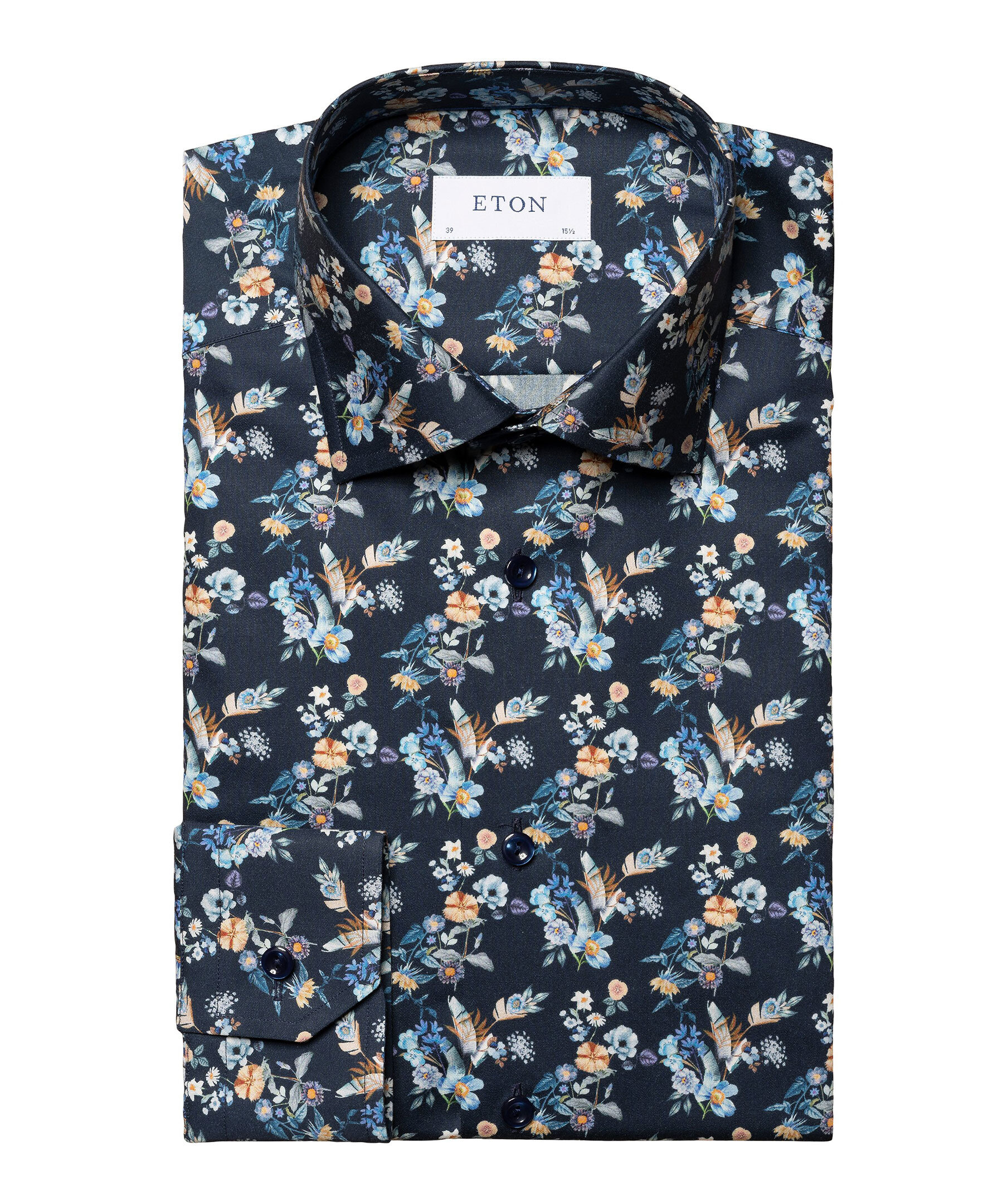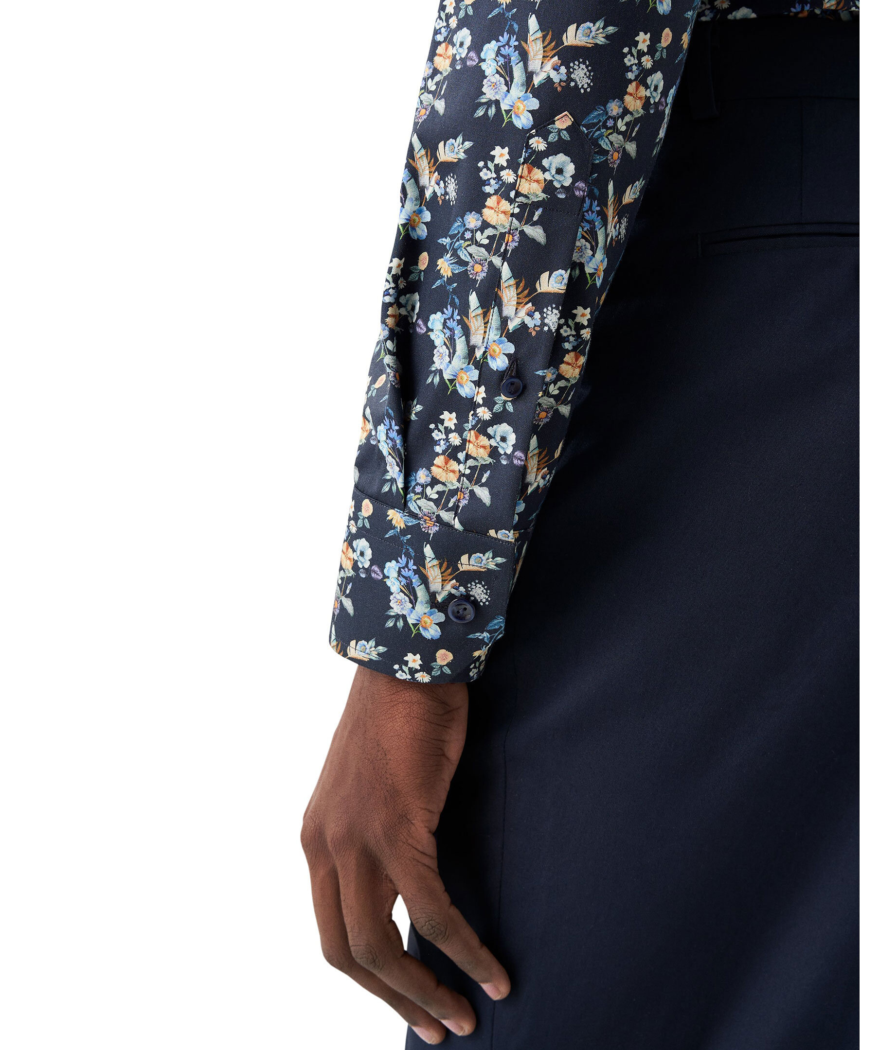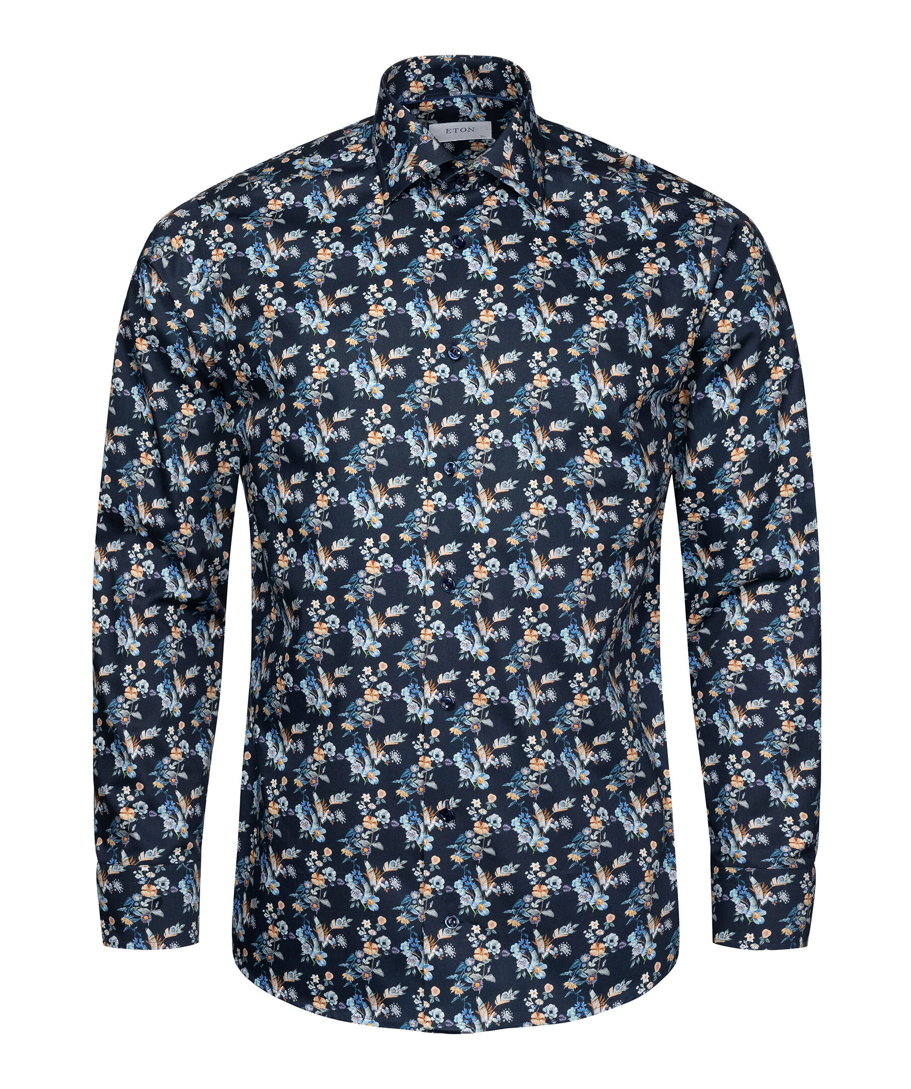 En stilren kostymskjorta med ett livfullt blommönster, tillverkad i vårt extra bekväma twilltyg av 100 % bomull med en fin lyster och en diskret textur. Ett vår- och sommarplagg med klassiska knappar och en nästintill skrynkelfri finish för en oklanderlig look. – 100 % bomull.