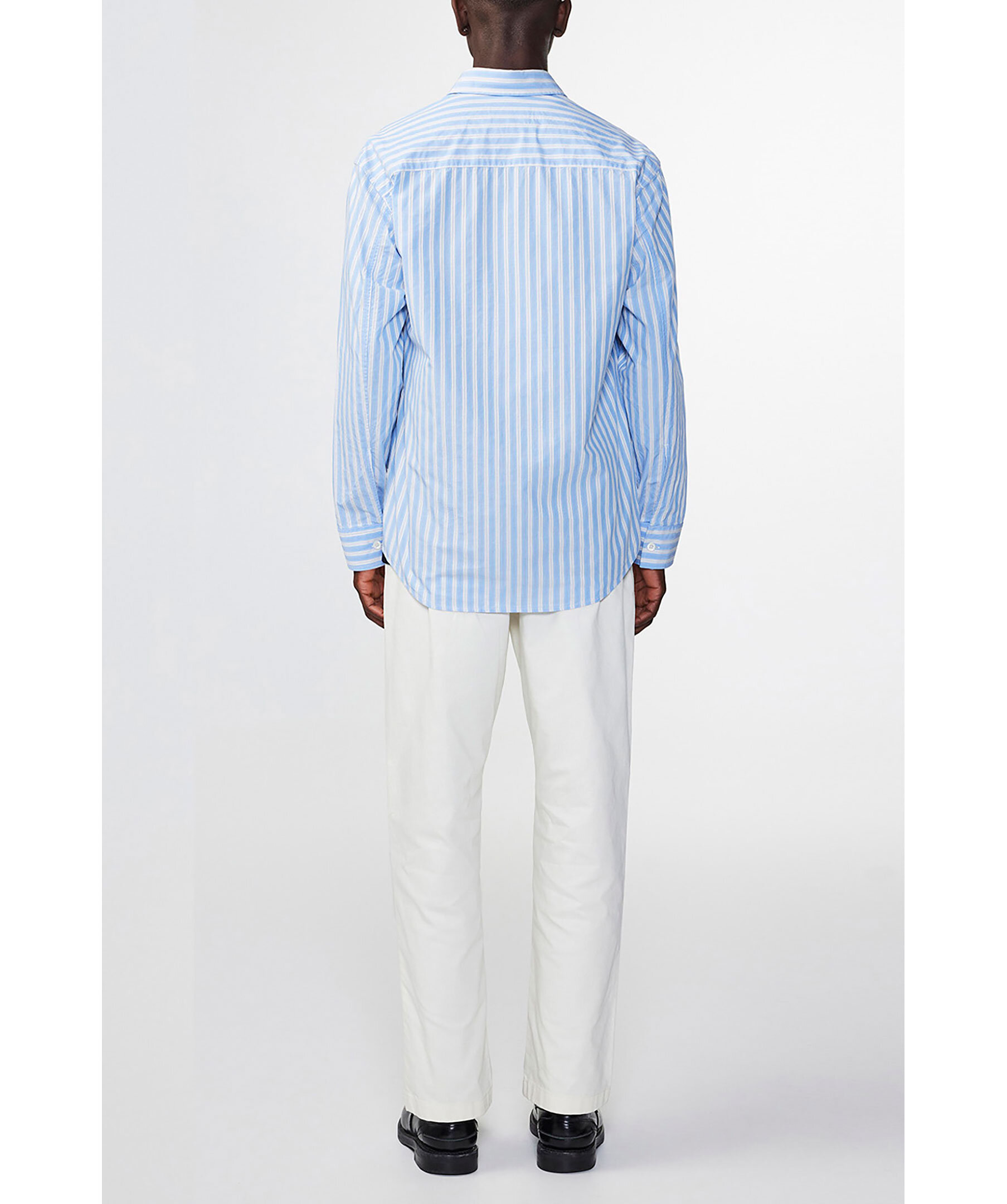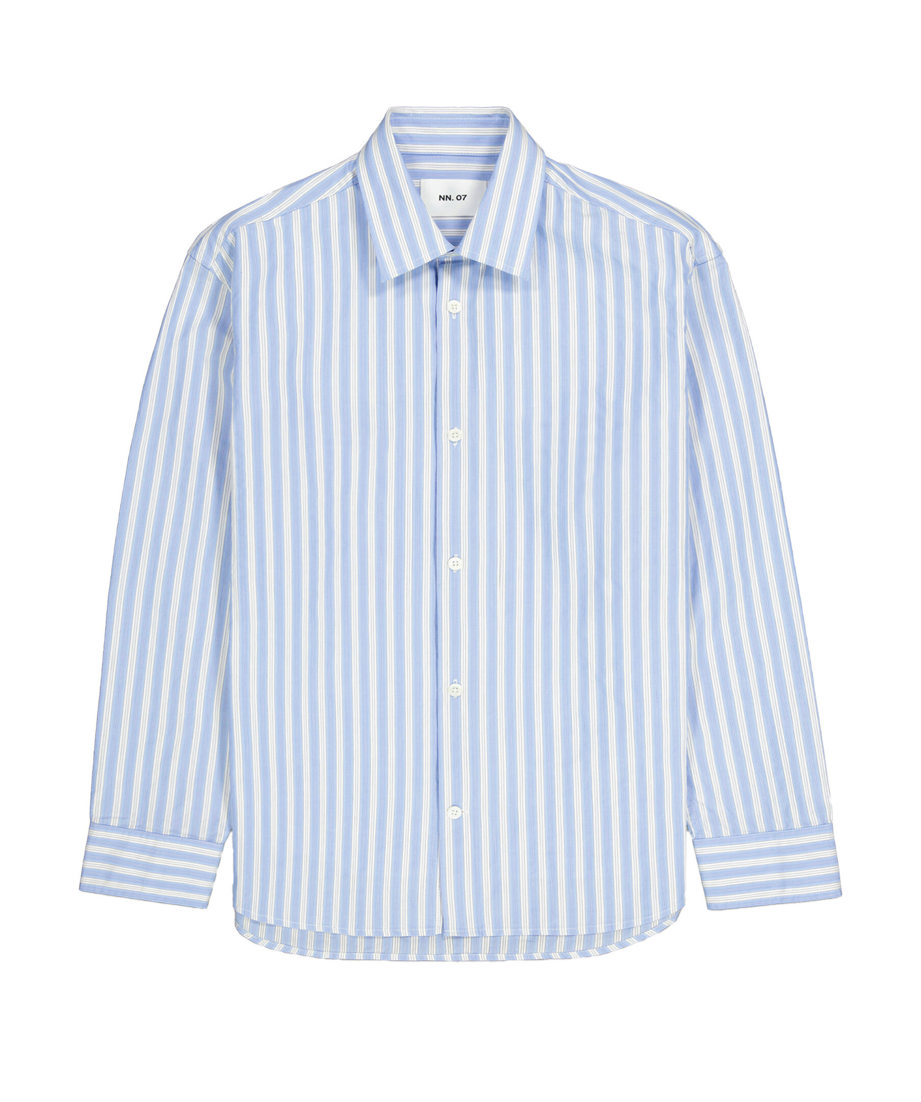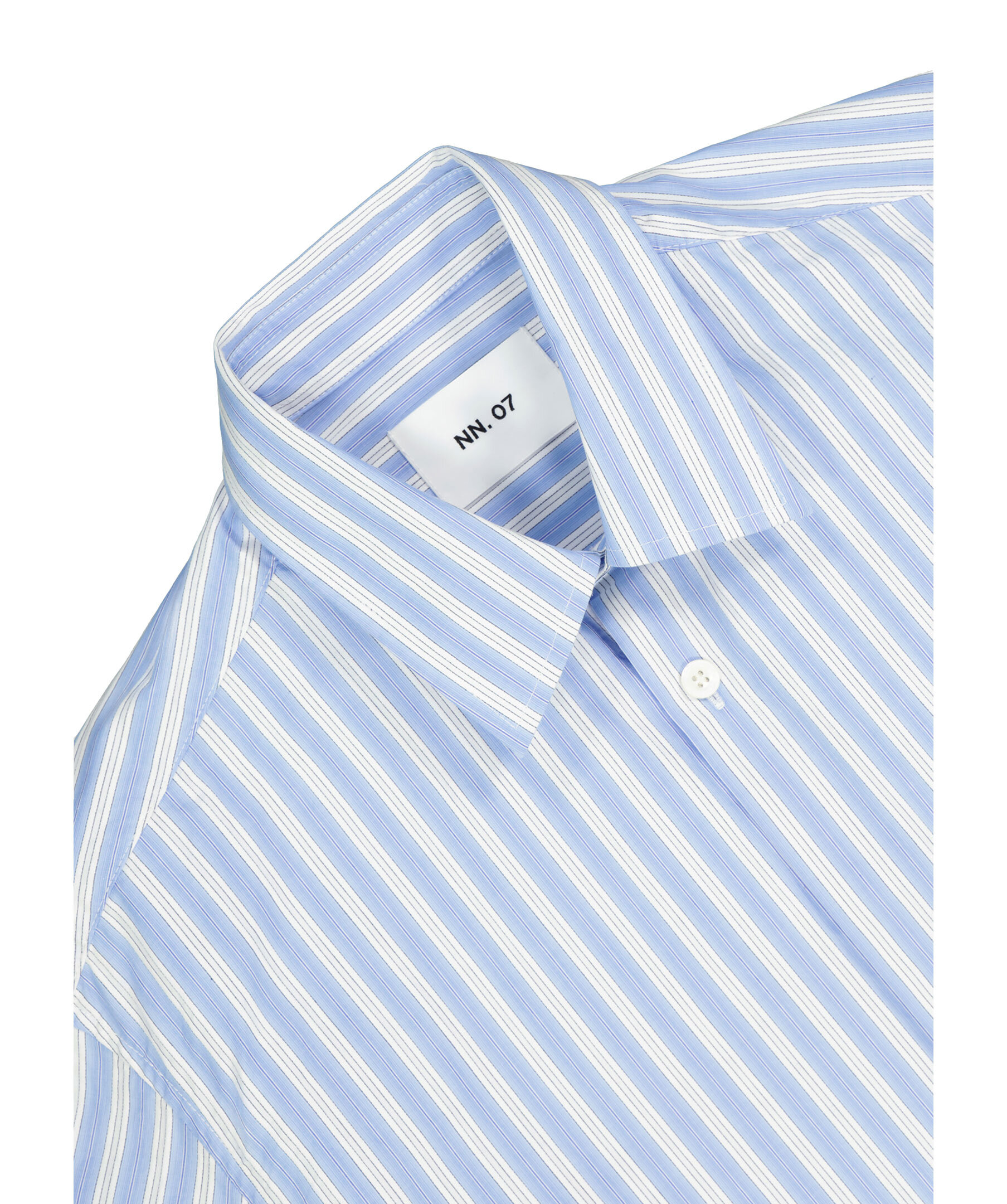 Blårandig skjorta i avslappnad passform från NN 07. Button-down krage med pärlemorknappar. Tillverkad i bomull.