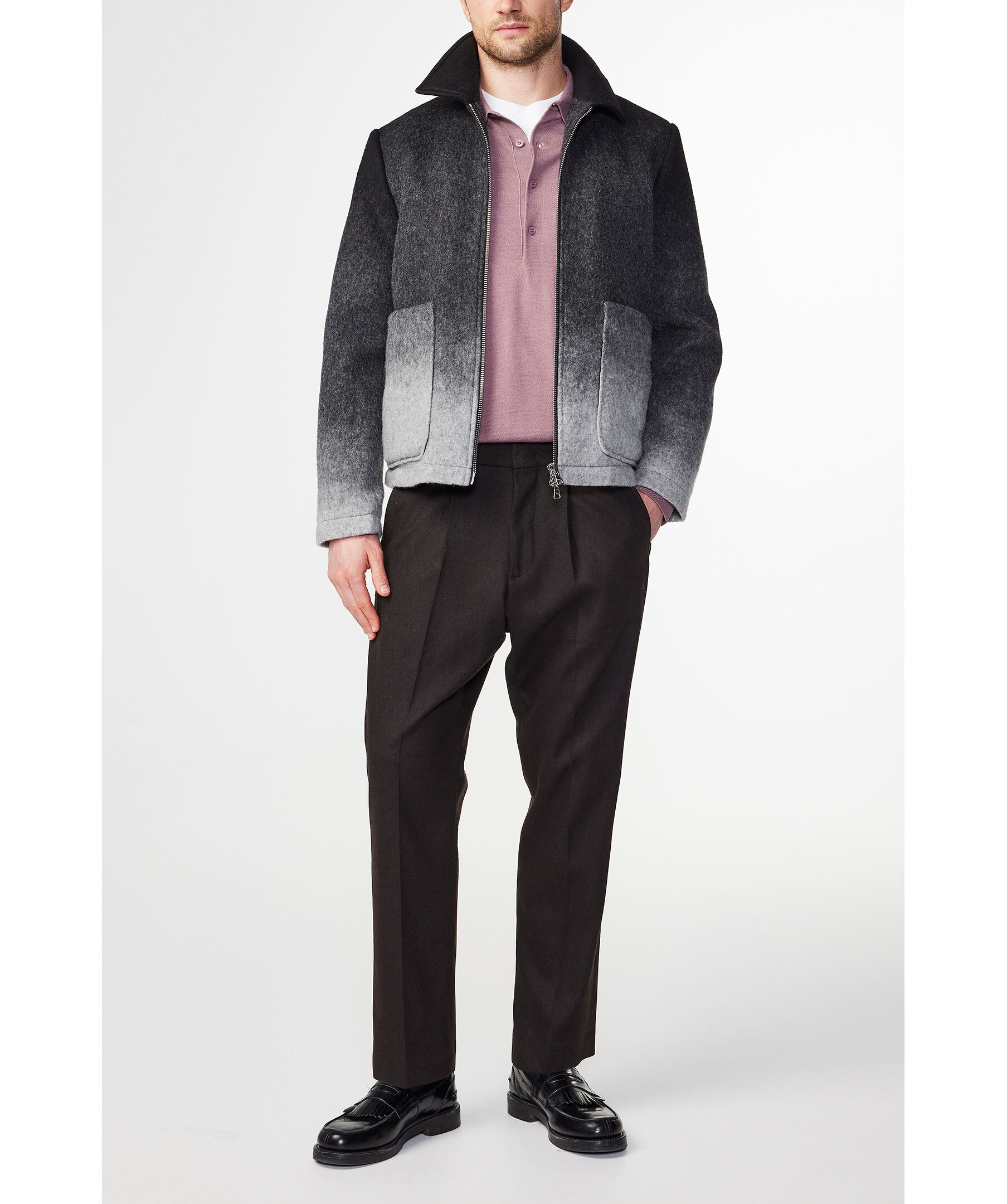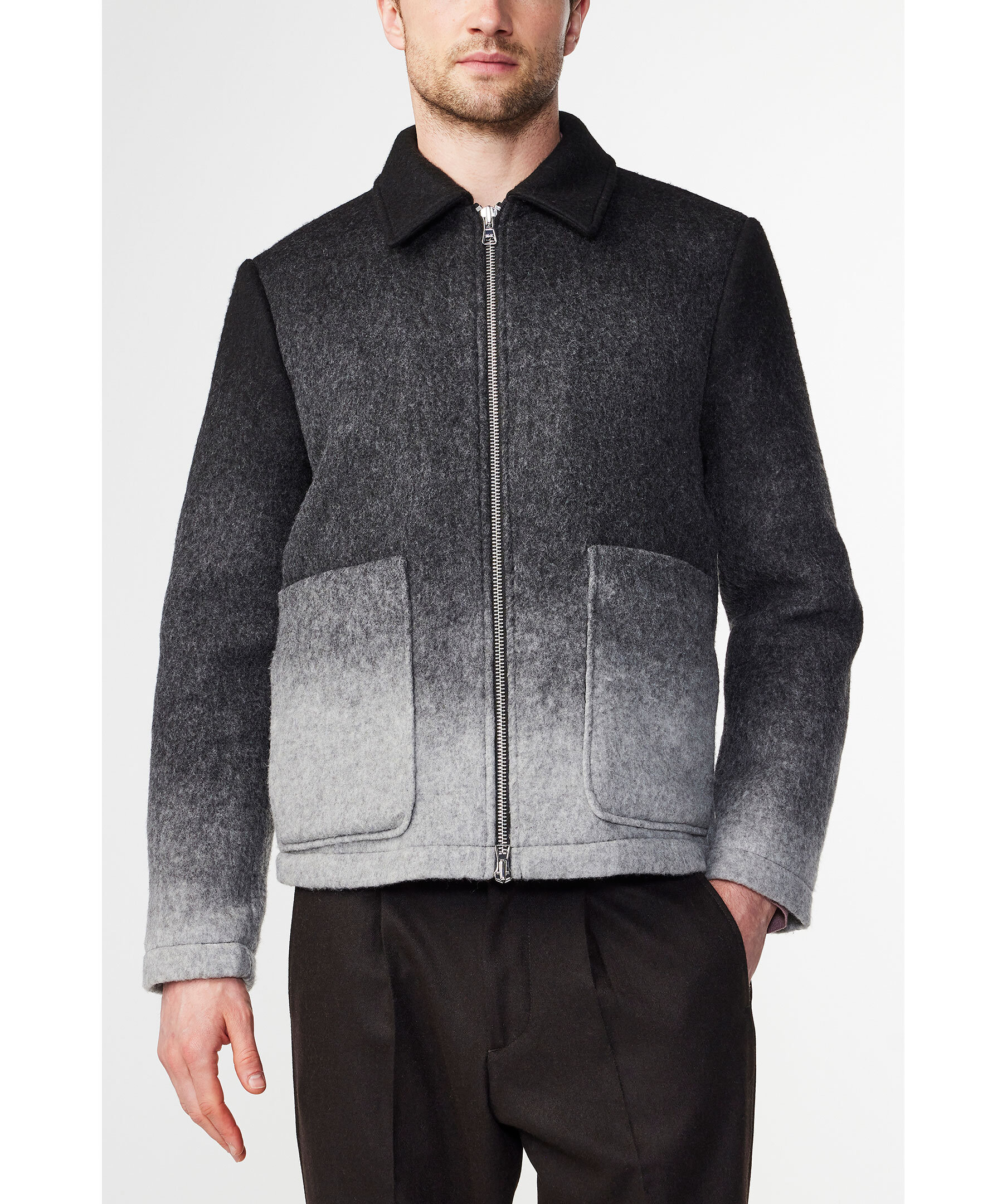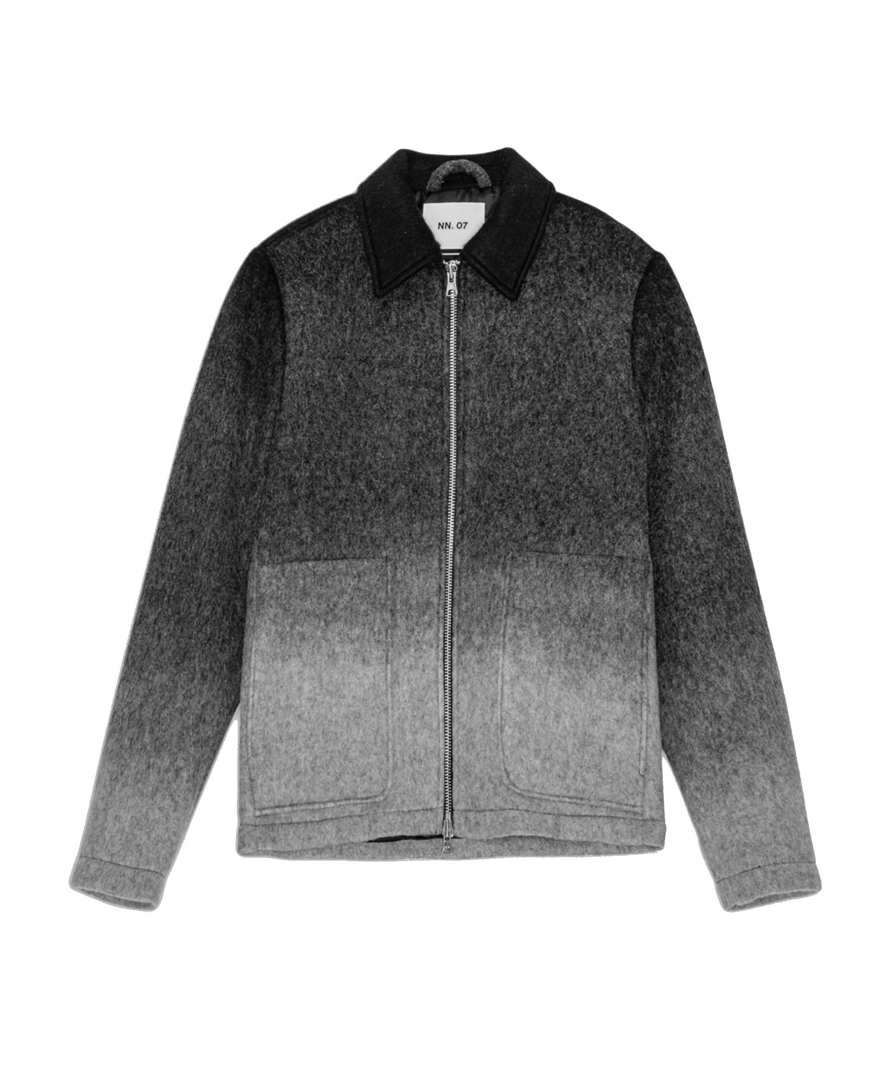 Grå ombrefärgad jacka i en kort modell från NN07. Jackan stängs med tvåvägsdragkedja och har två stora påsydda fickor i midjan. Tillverkad i en ullblandning.