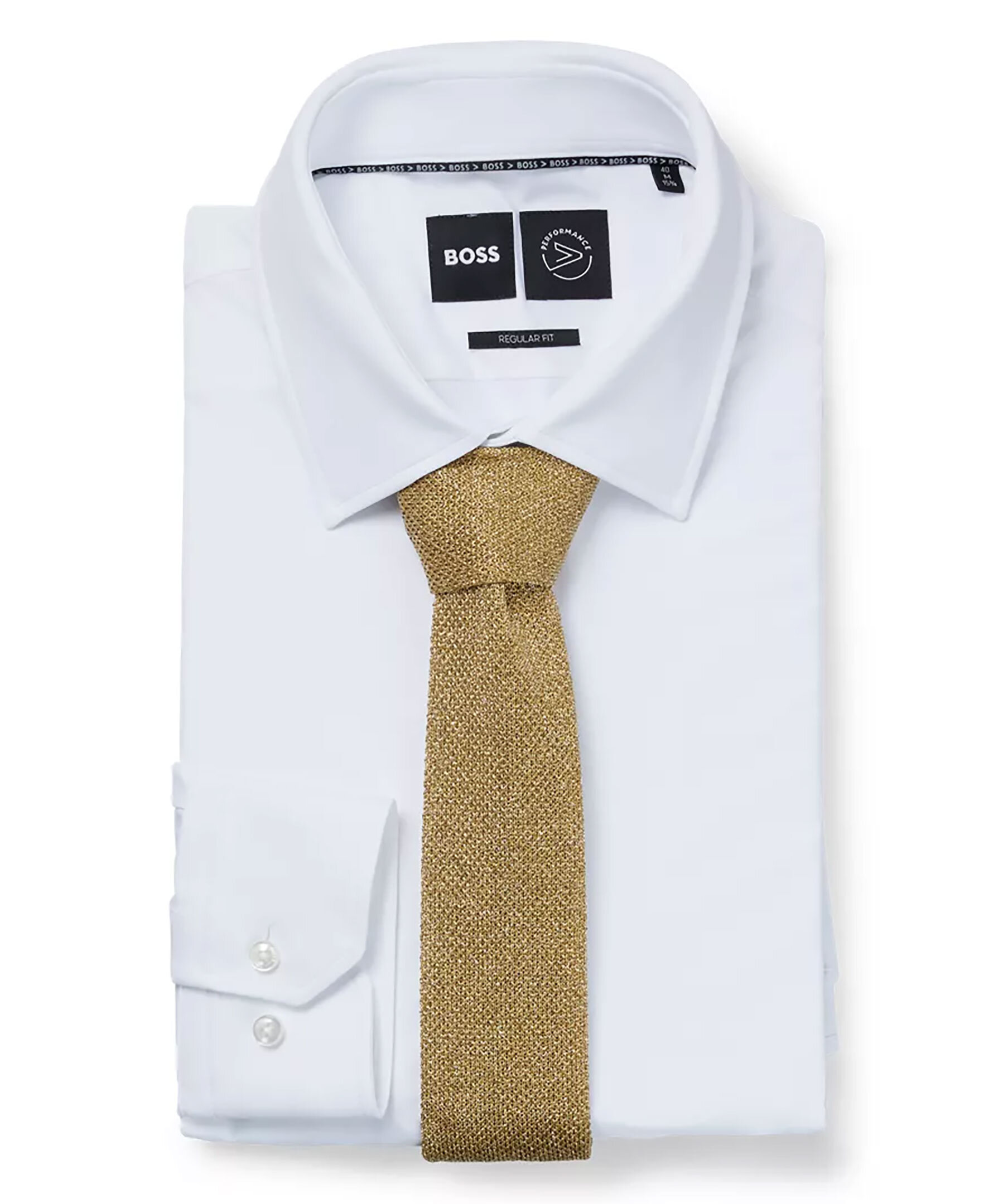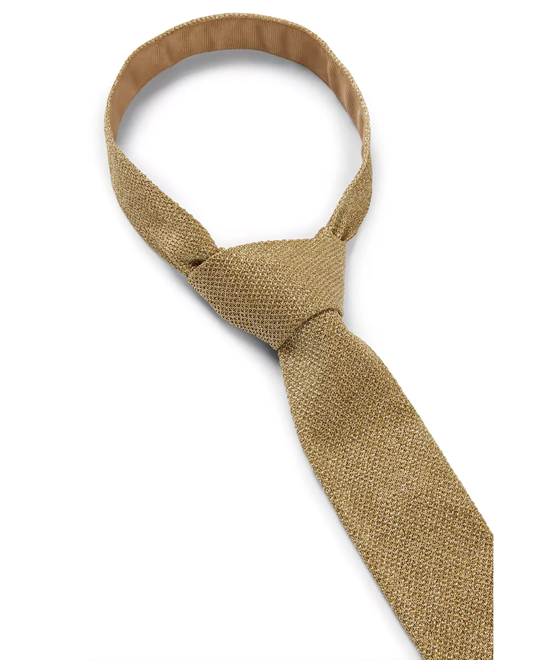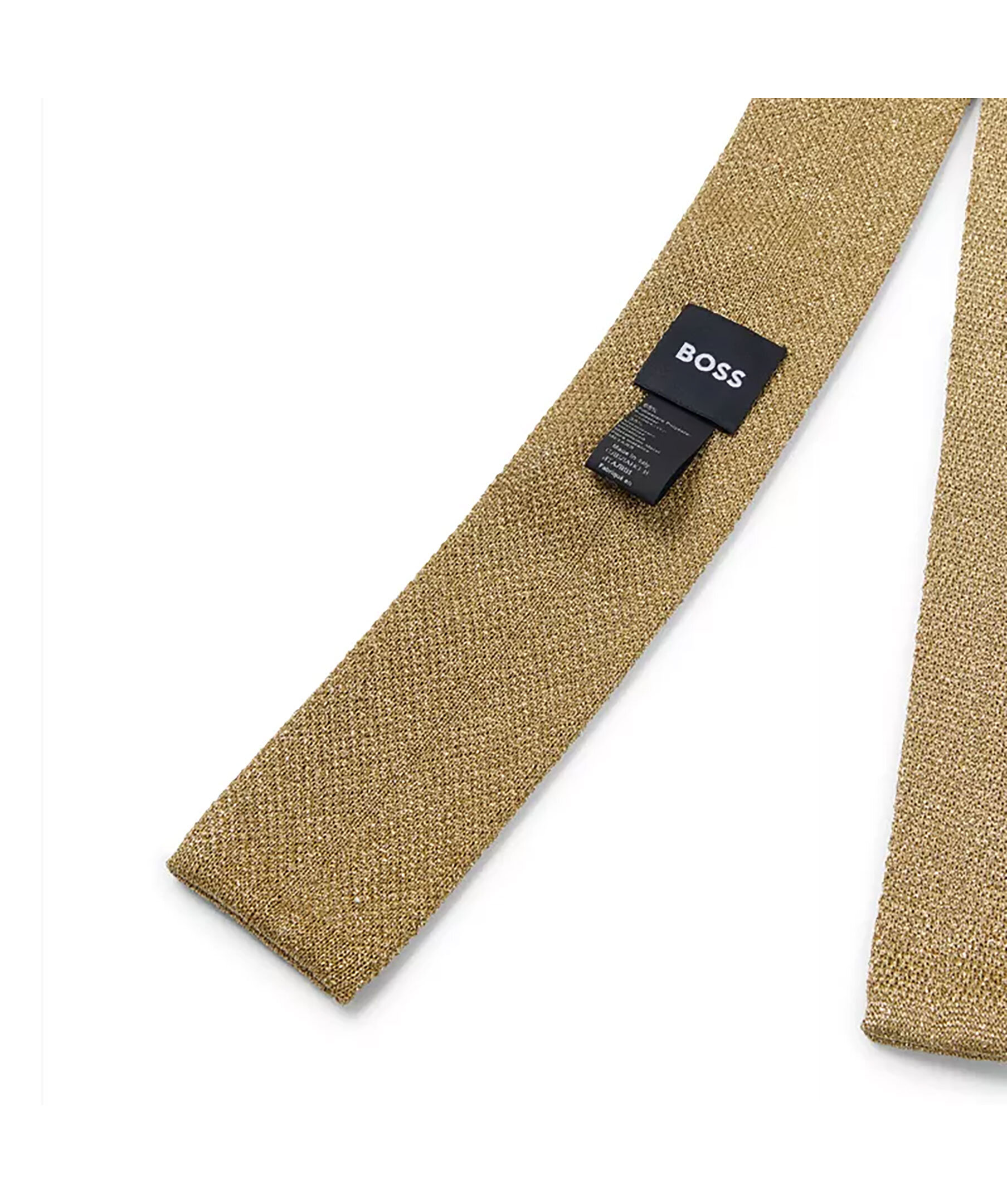 En guldfärgad, modern slips från BOSS Black. Designad med en rak spets och stickad med piqué-struktur i guldgarn som innehåller metalliserade fibrer för en glittrande look. Mått: Längd: 150 cm, Bredd: 6 cm