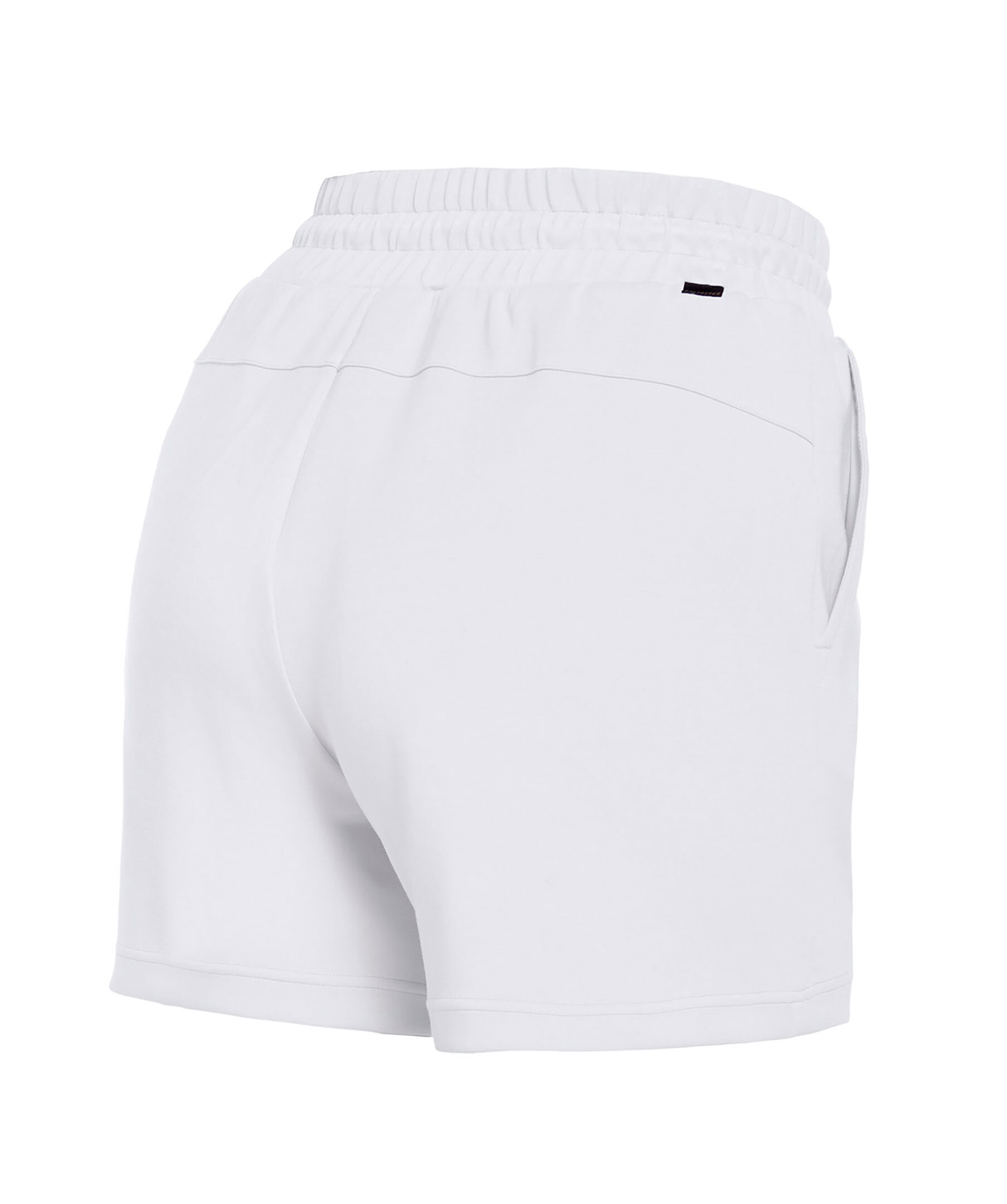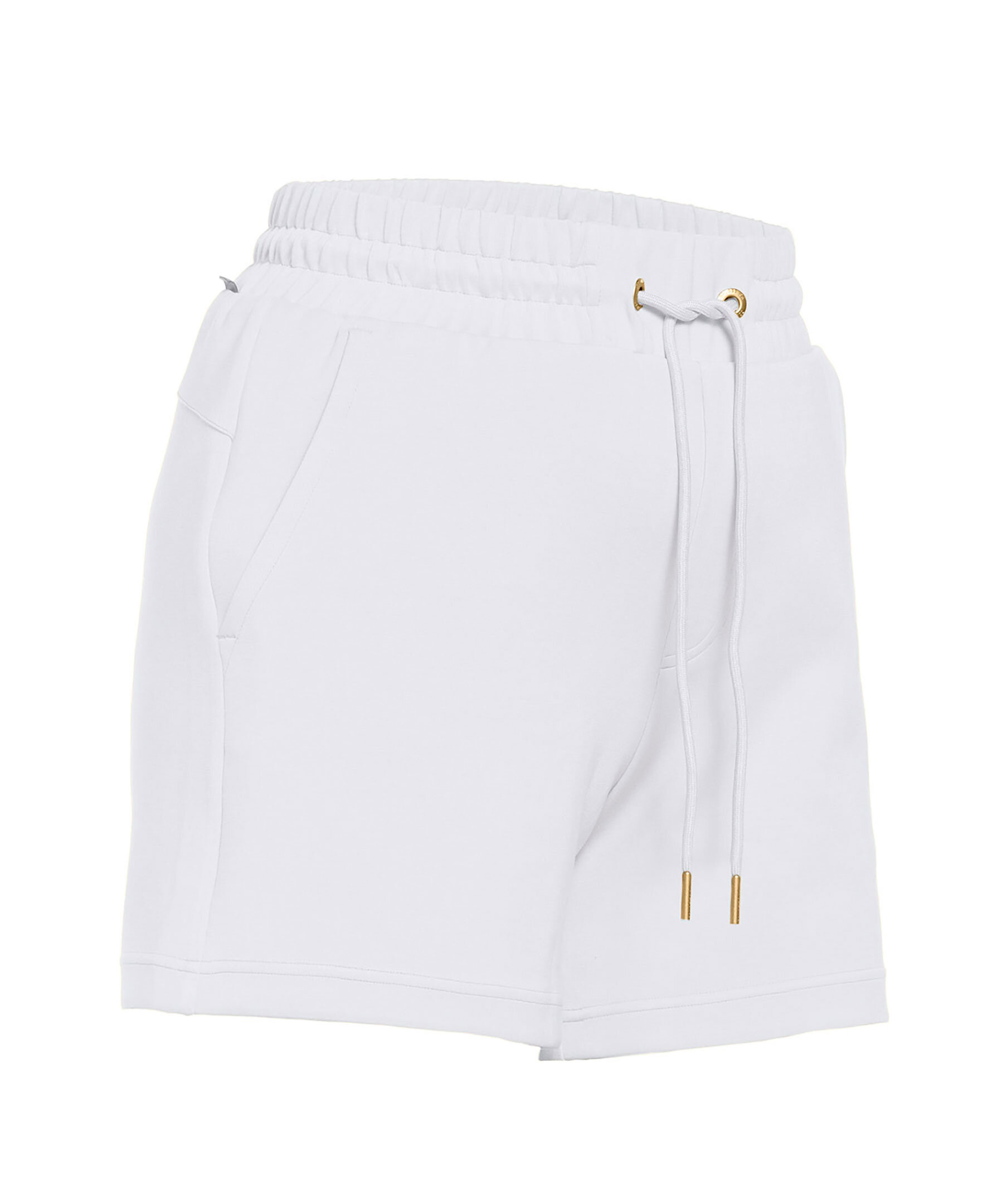 Vita mjukisshorts från Goldbergh. Tillverkade i stretchig modalblandning. Bred mudd i midjan och lång snörning med guldfärgad metallspets som går ut igenom guldfärgade metallöglor. Vävd märkesetikett på baktill och öppna fickor i sidorna.