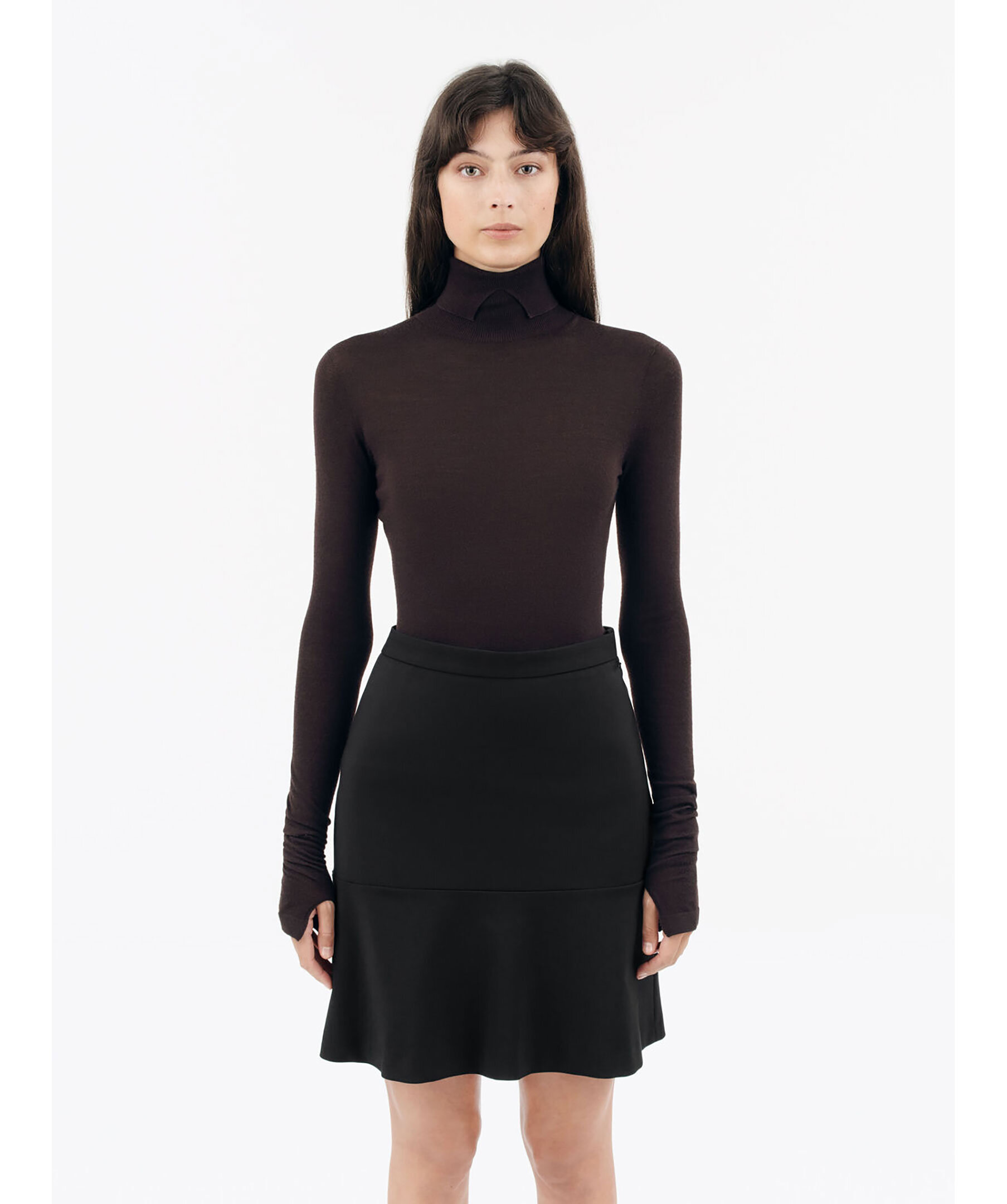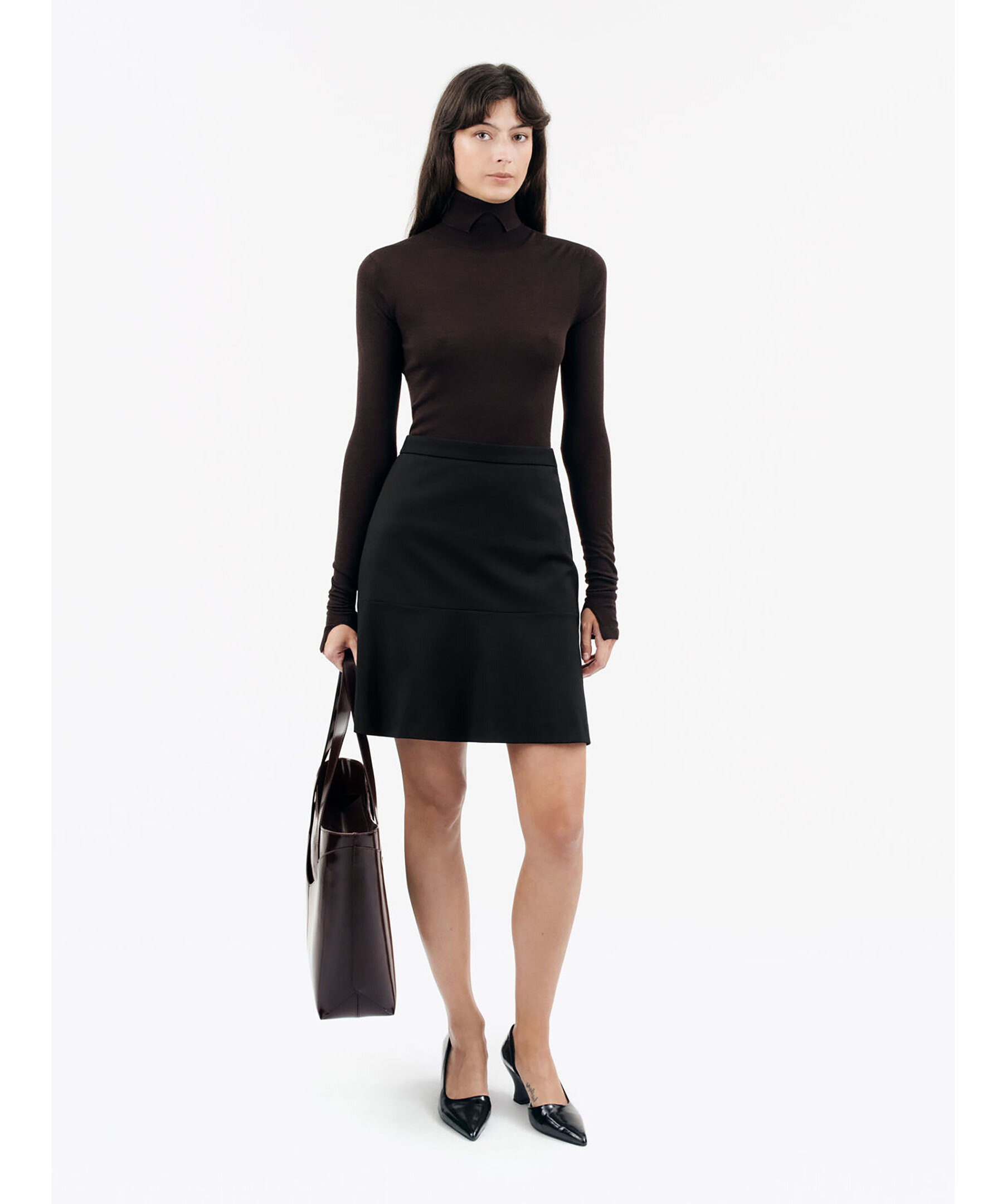 Svart, knälång kjol från Tiger of Sweden. Kjolen har en normal passform och är något utsvängd. Dold dragkedja i sidan. Modellen är 176cm lång och har på sig strl 36.