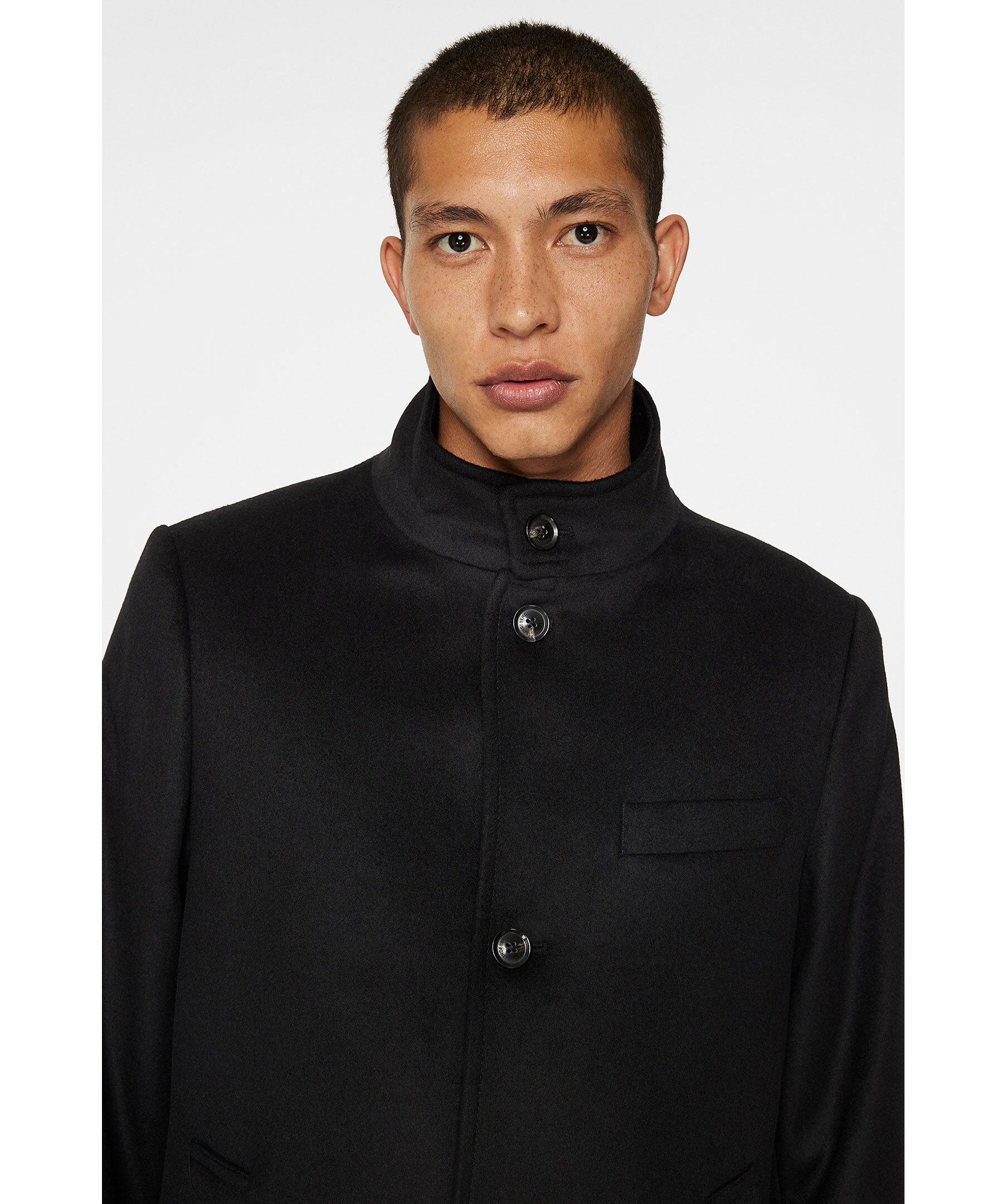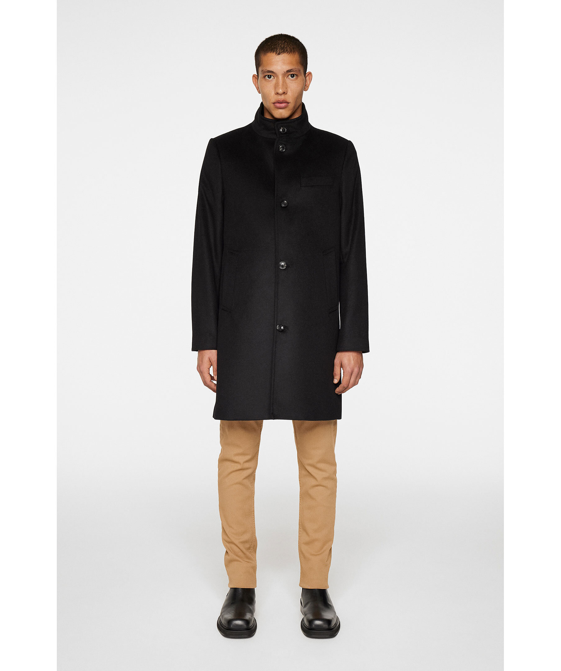 Svart rock från J.Lindeberg. Rocken är tillverkad i en lyxig blandning av ull och kashmir som andas sofistikering och värme. Knappstängningen framtill ger en raffinerad touch medan den helfodrade insidan säkerställer komfort och slitstyrka. Den är skuren i standardpassform som har en smickrande effekt på alla siluetter – ett flexibelt plagg för både formellt och casual.