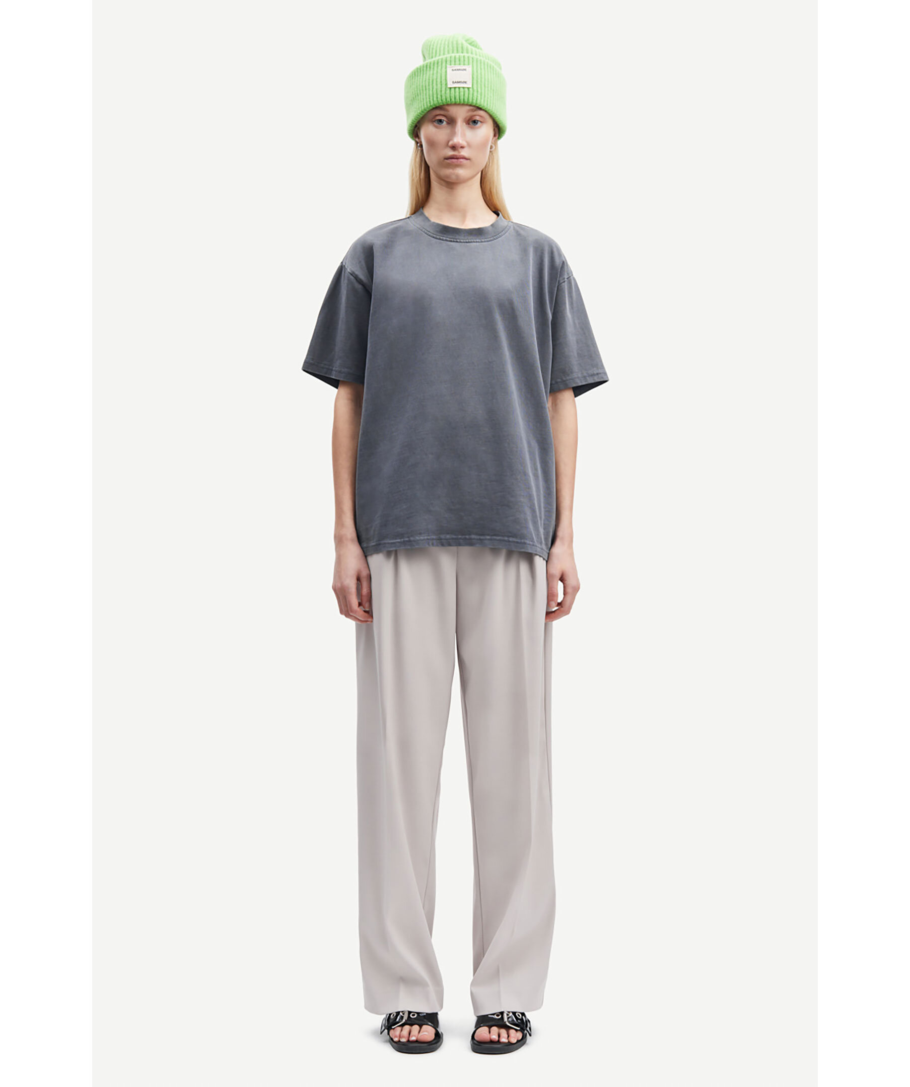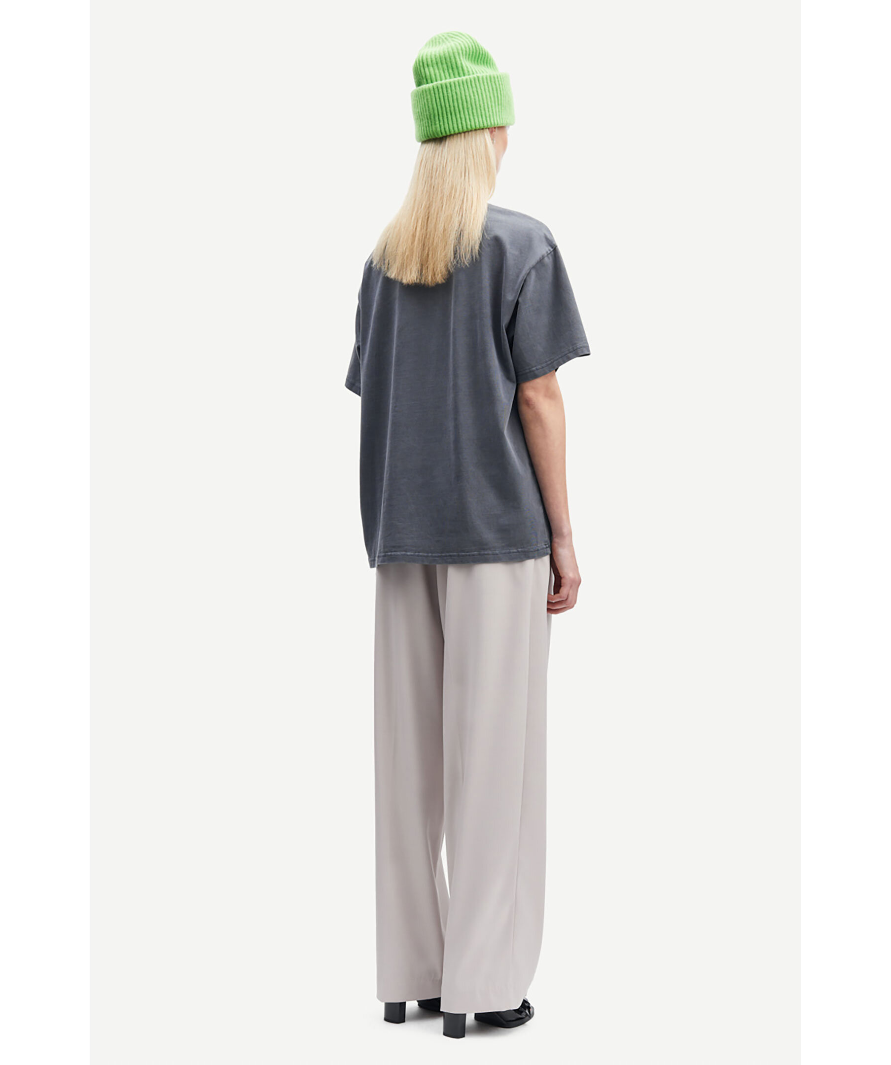 Beigea byxor i en avslappnad passform från Samsoe Samsoe. Byxorna har vida med med resår i midja och sidosömsfickor. Tillverkade i återvunnen polyester, polyester, viskos och elastan i stretchblandning. Denna produkt är GRS-certifierad. Varje steg i leveranskedjan har uppfyllt stränga sociala, miljömässiga och kemiska krav.