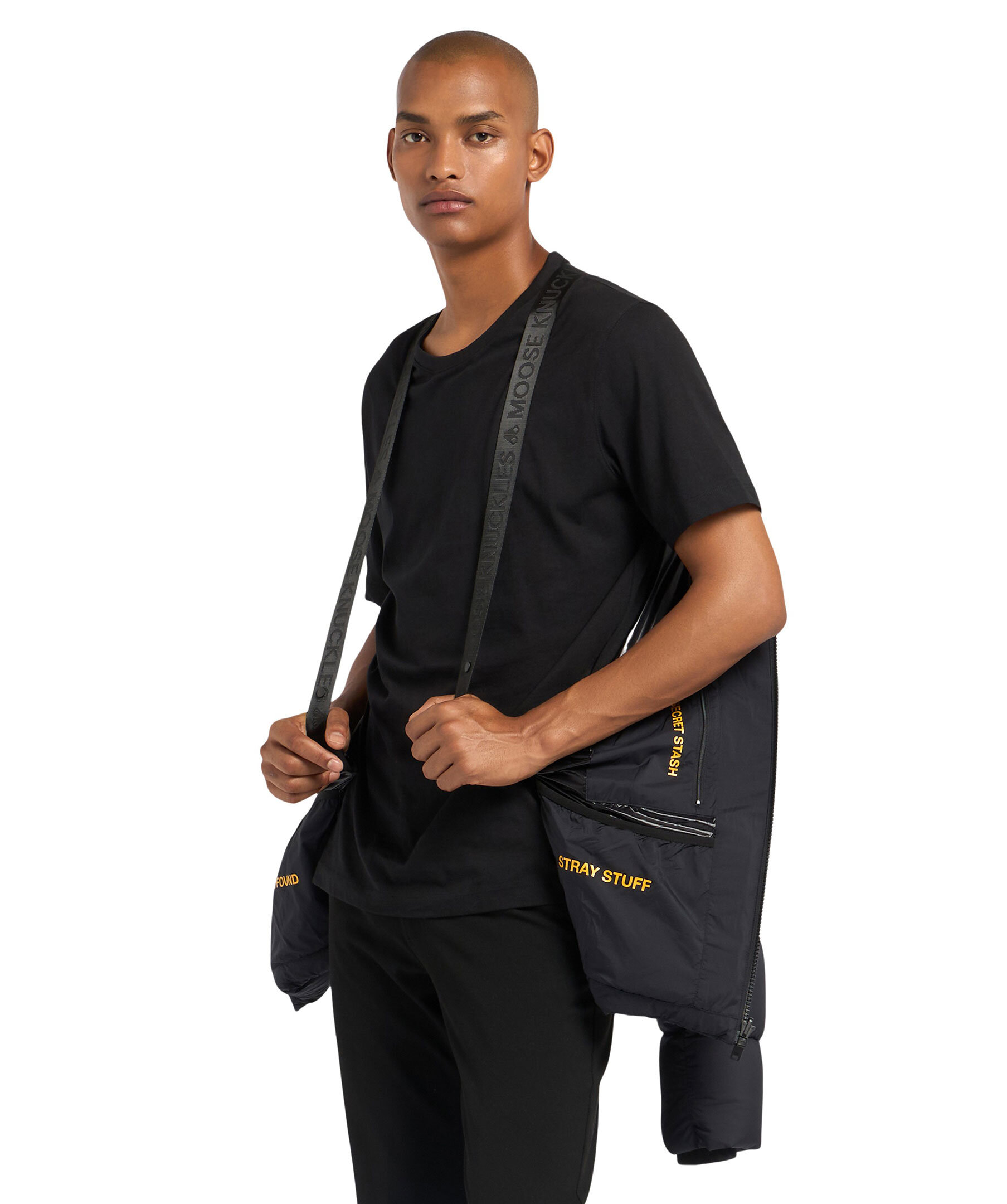Svart pufferjacka från Moose Knuckles. Jackan stängs med dragkedja framtill och har två sidfickor, innerfickor, dragsko i jackans nederkant samt elastiska muddar och logga på vänster ärm. Tillverkad i nylon med gåsfjädervaddering.