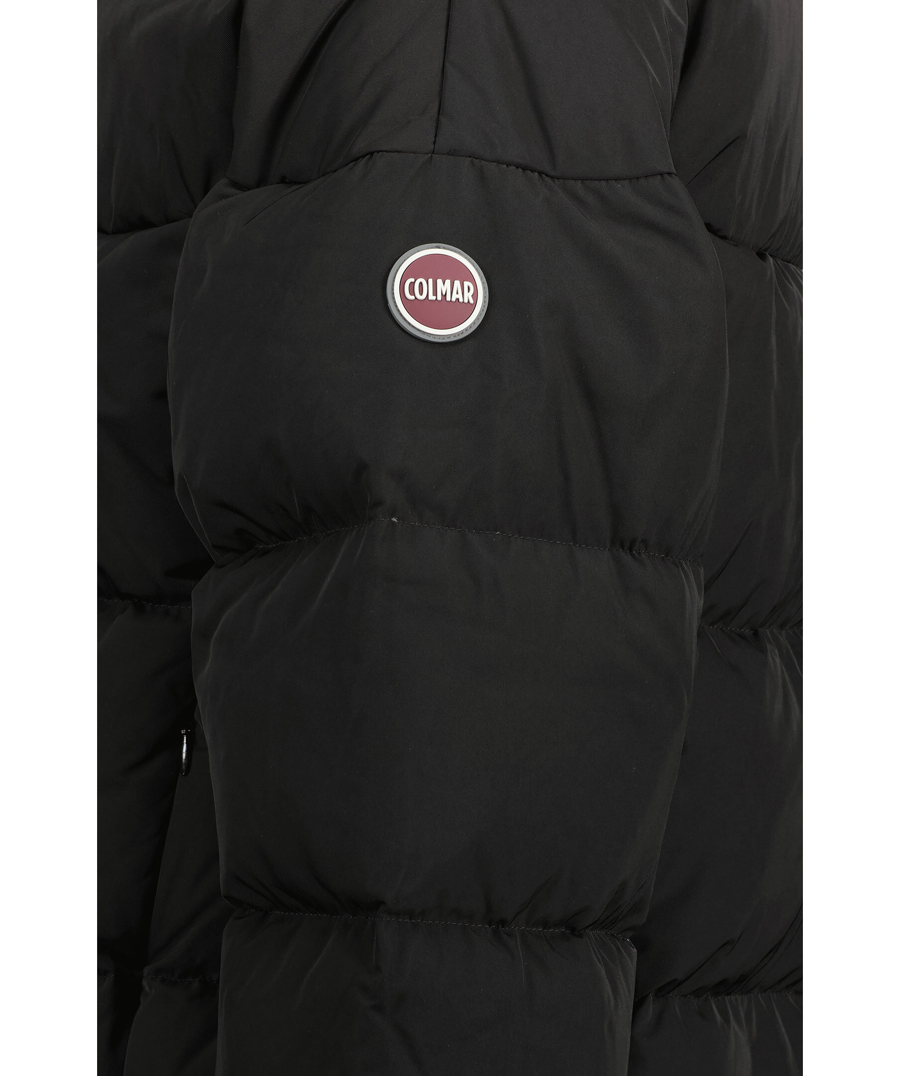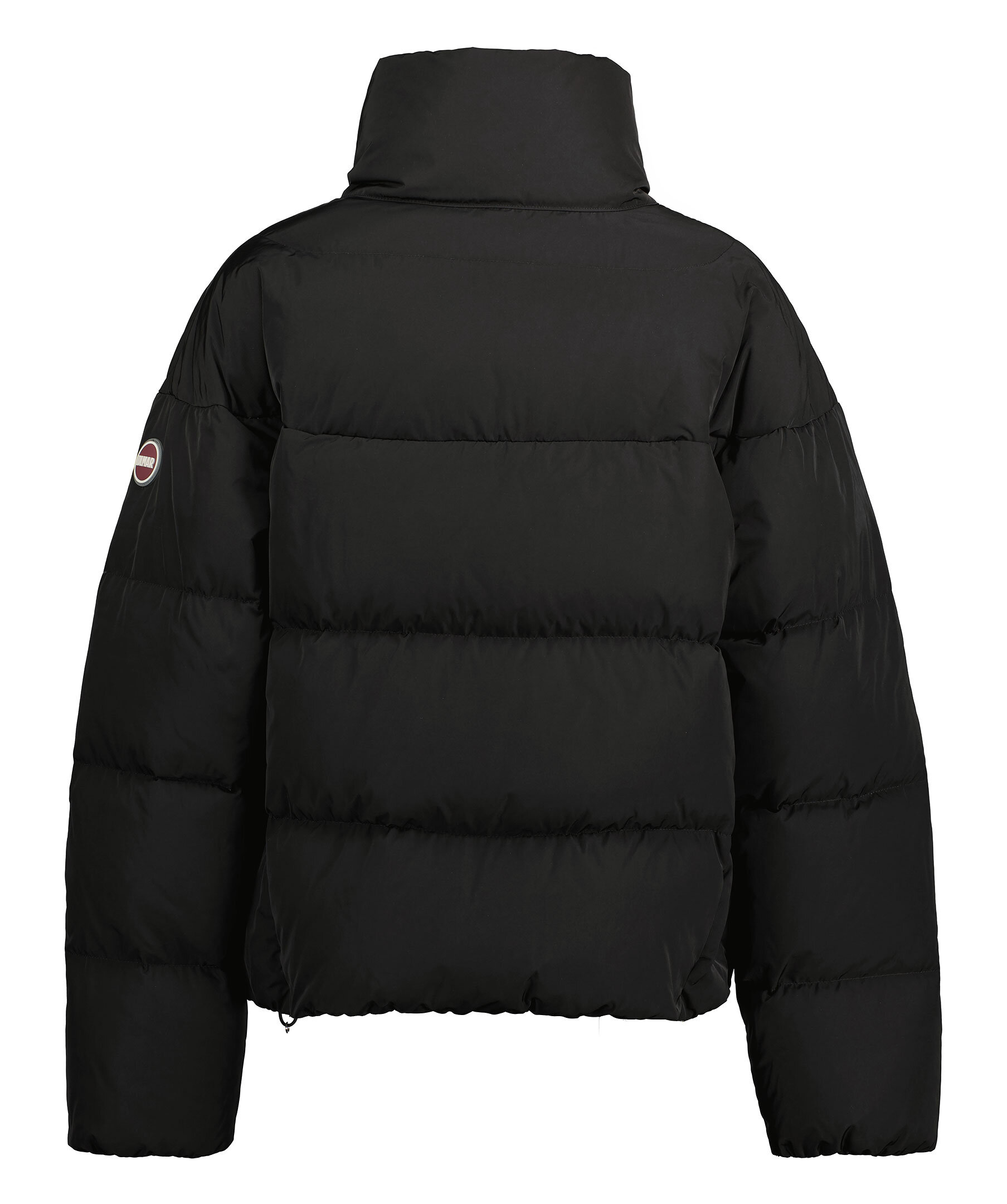 Svart quiltad dunjacka från Colmar. Stängs framtill med dragkedja. Gummerad patch med logotyp på vänster ärm. Två fickor framtill som stängs med dragkedja. Jackslut med dragsko.