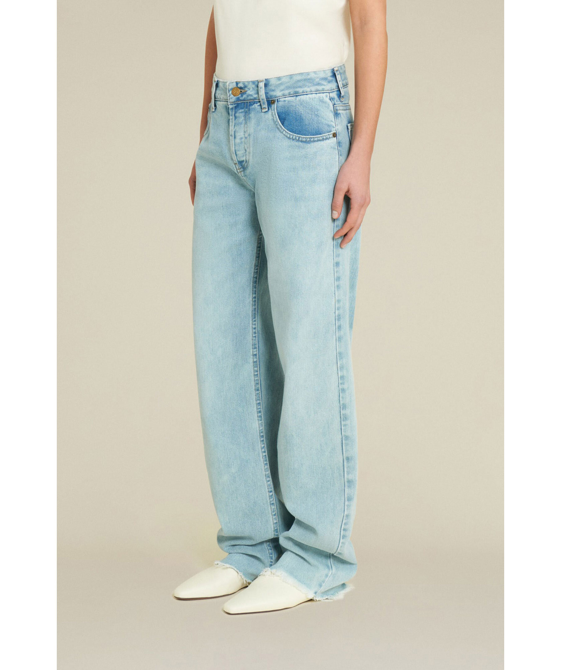 Ljusblåa jeans från Lois. Jeansen har låg midja, fem fickor, logotyp på ena bakfickan och myntfickan samt bälteshällor i midjan. Raka ben. Tillverkade i en bomullsblandning.