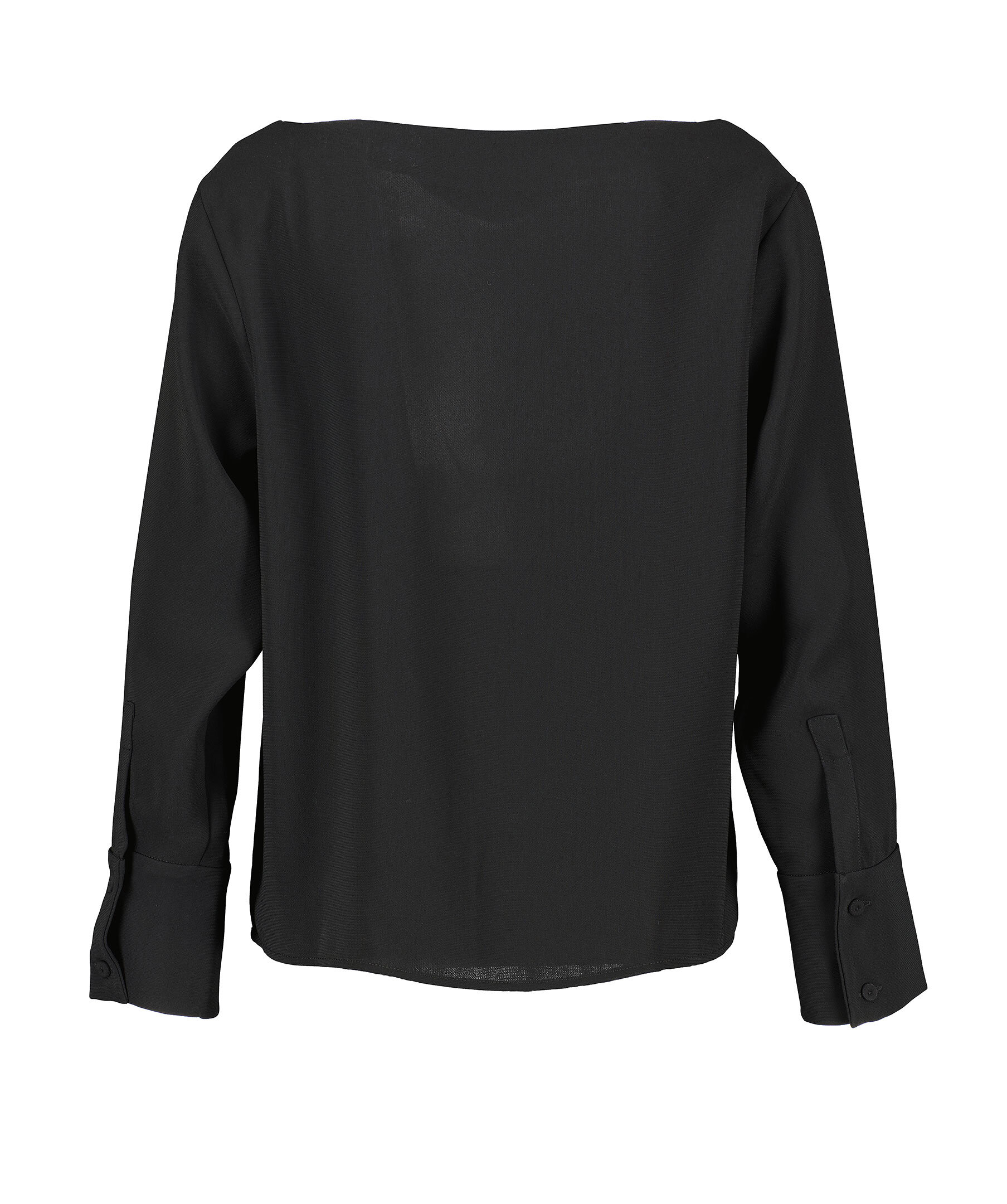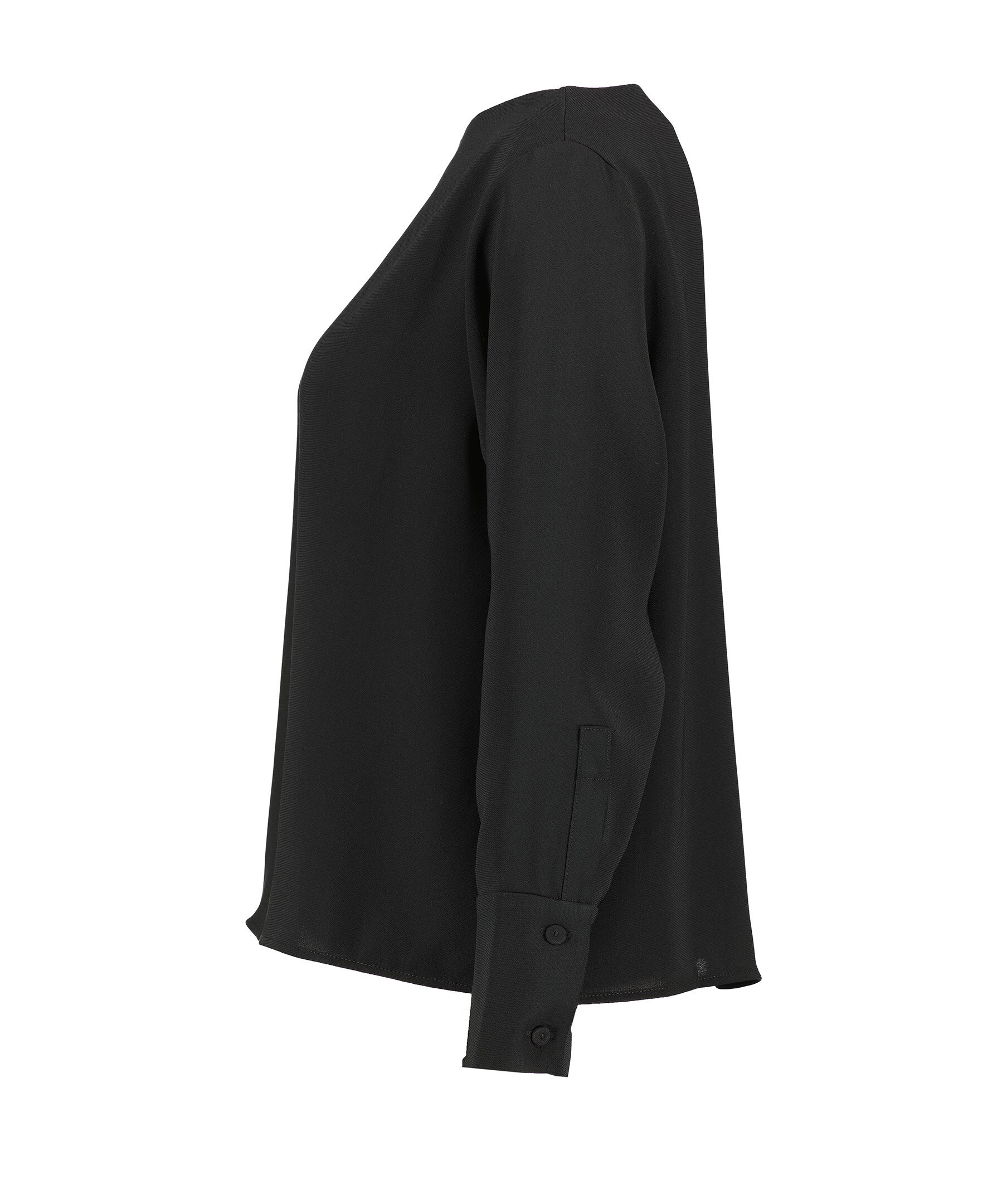 Svart blus från My Aurora. Blusen har en rund halsringning och klädda manchestter knappar. Tillverkad av polyster.