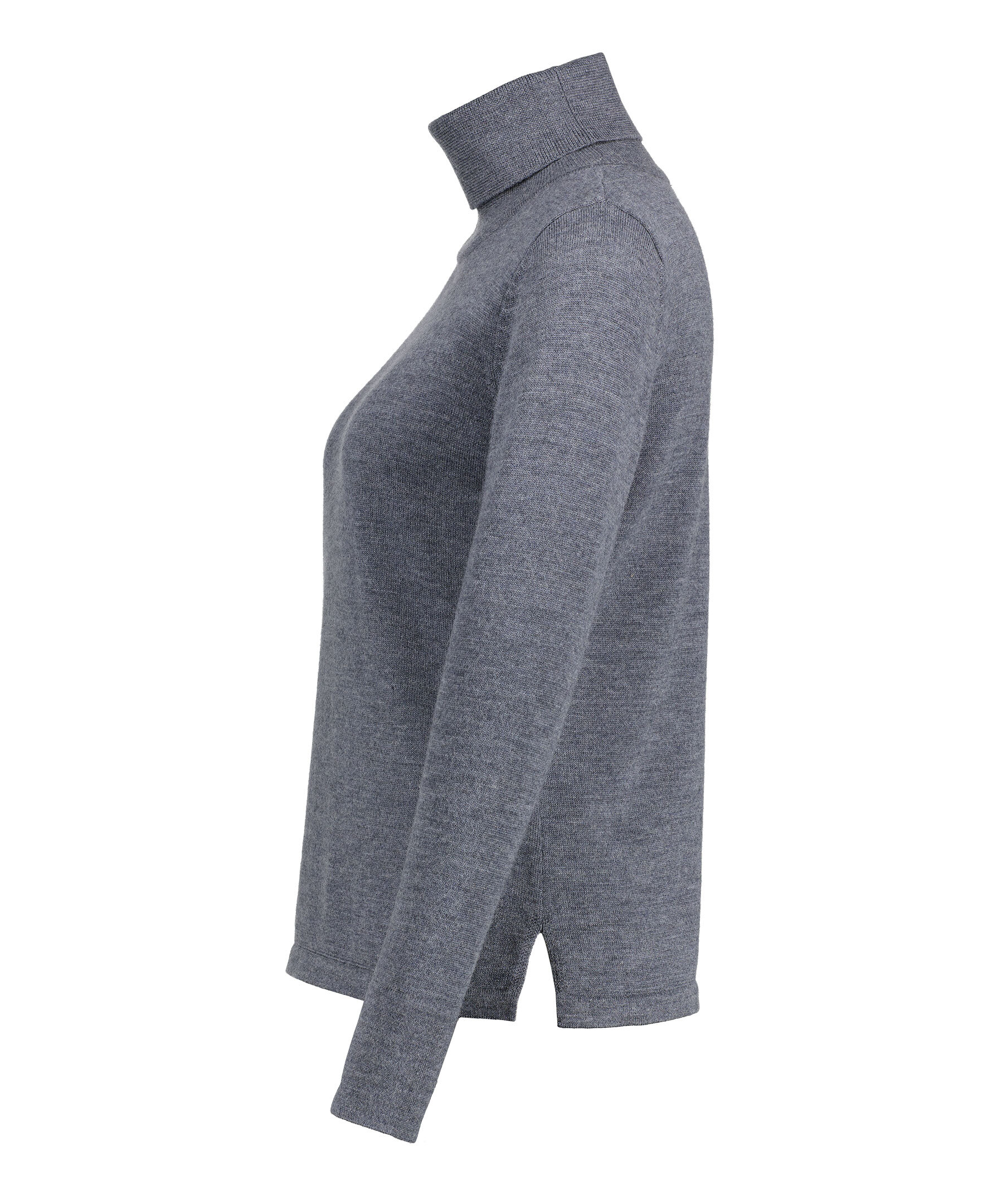 Mörkgrå melerad, stickad polotröja från My Aurora. Tillverkad i 100% merinoull. Korta slitsar i sidorna, ribbstickad polokrage samt muddar vid ärm- och plaggslut.