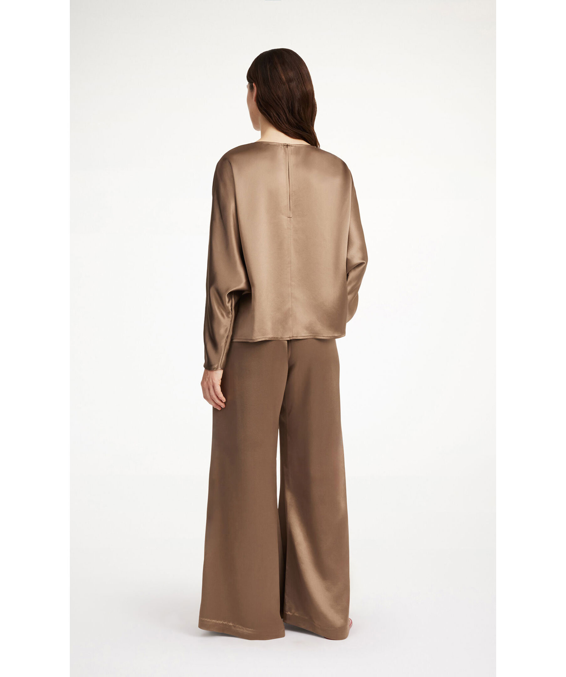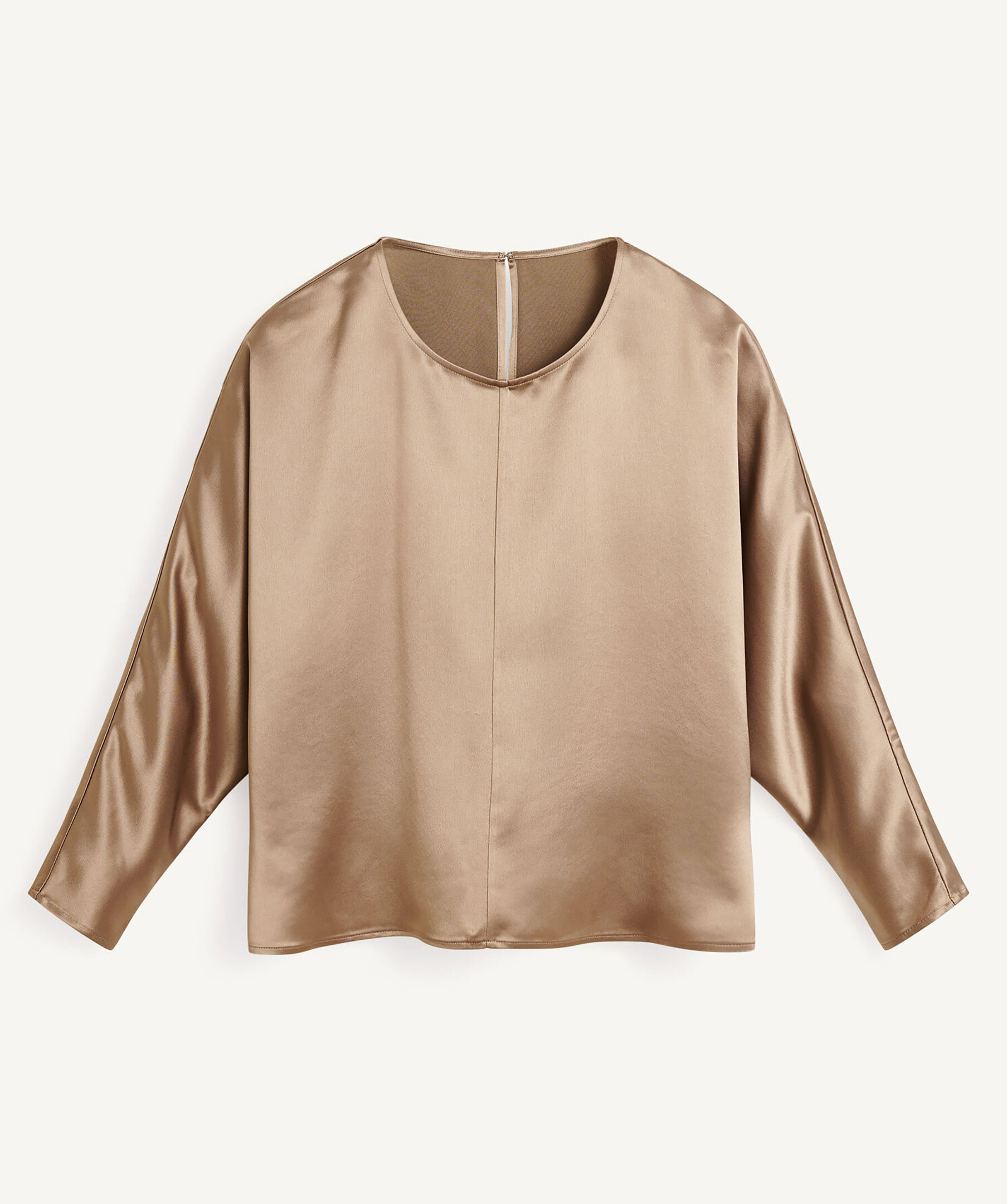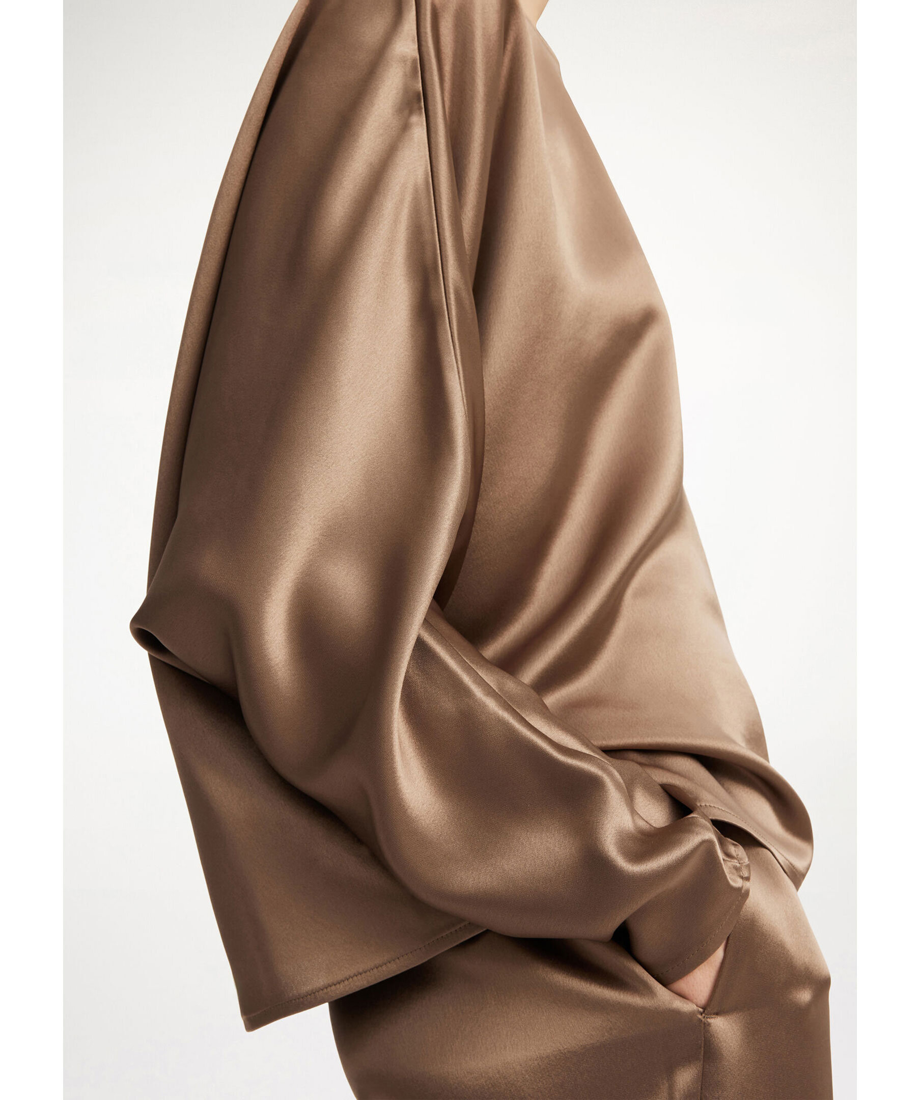 Brun blus med dekorativa sömmar från By Malene Birger. Långa avsmalnade ärmar, U-ringning och hyska och hake bak.