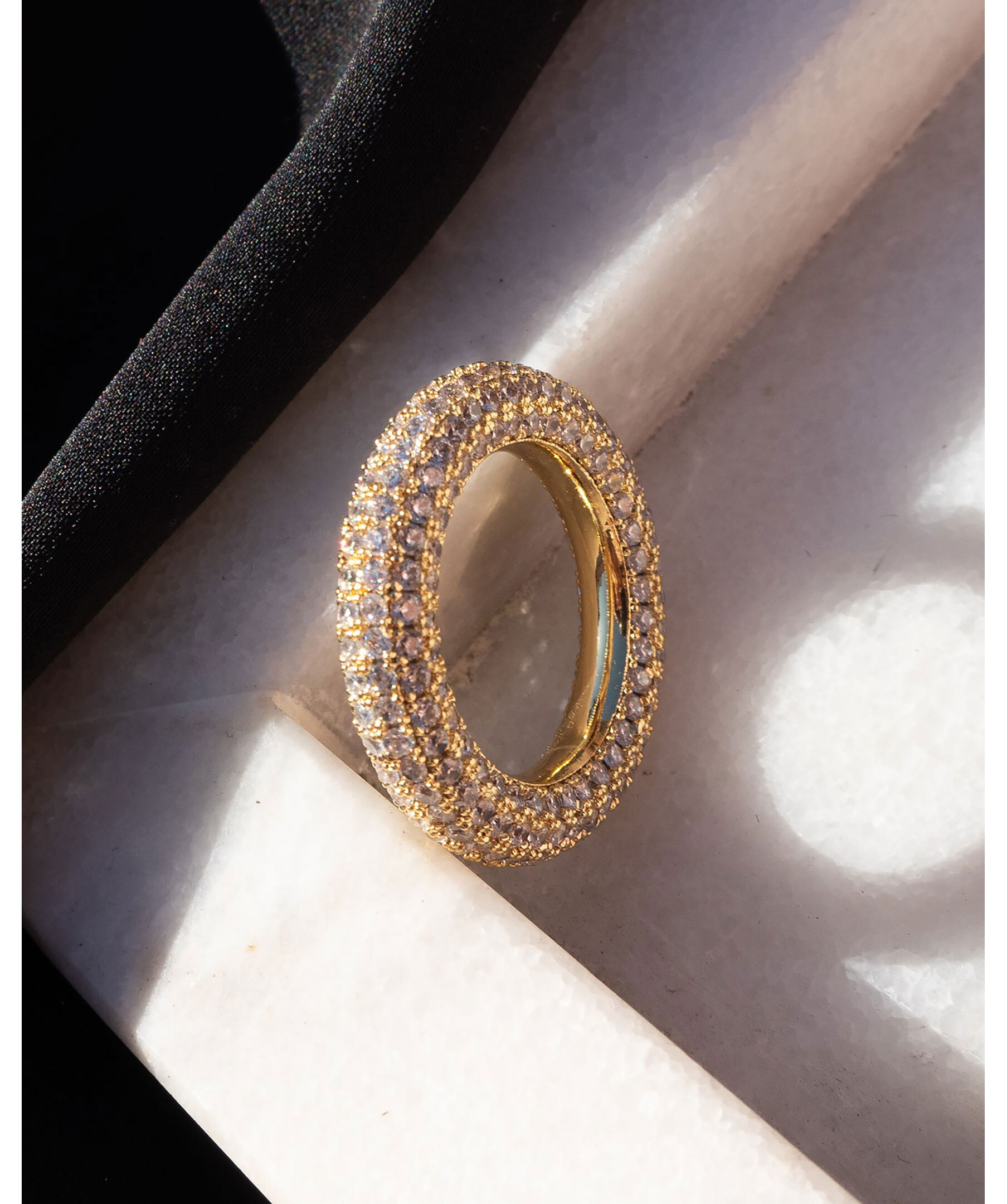 Ring från Luv Aj med pläterad mässing och Zirconia stenar. Pläteringen är 0,03 mikron + e-beläggning för långvarig hållbarhet samt pläterad högpolerad 14K antikguld för maximal glans. Handsatta CZ-stenar för en lyxig look. Ringen är 100 % nickelfri och kadmiumfri. Ringen är 4,3 mm hög.