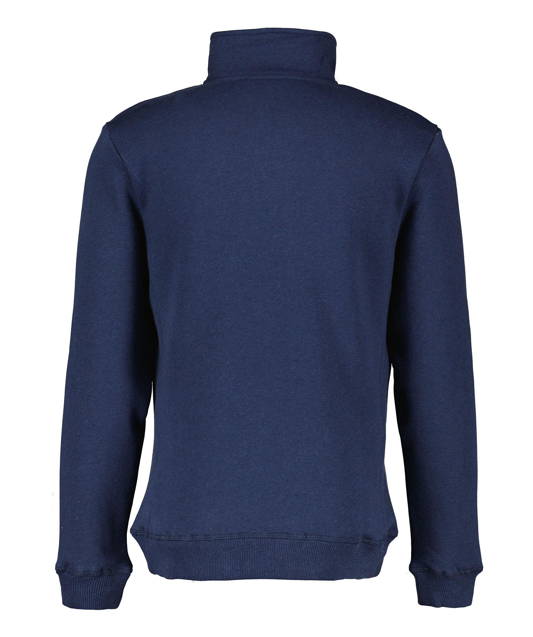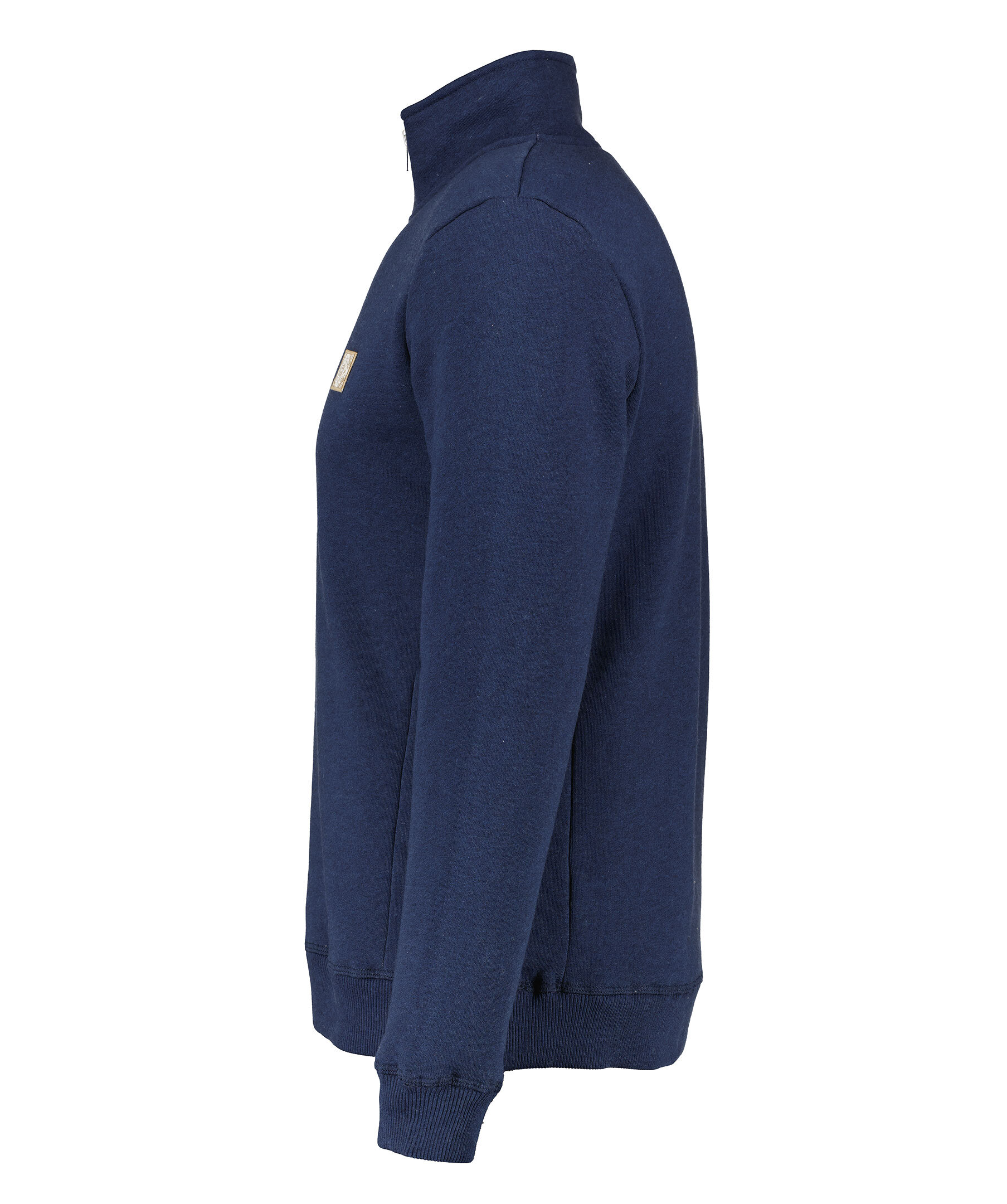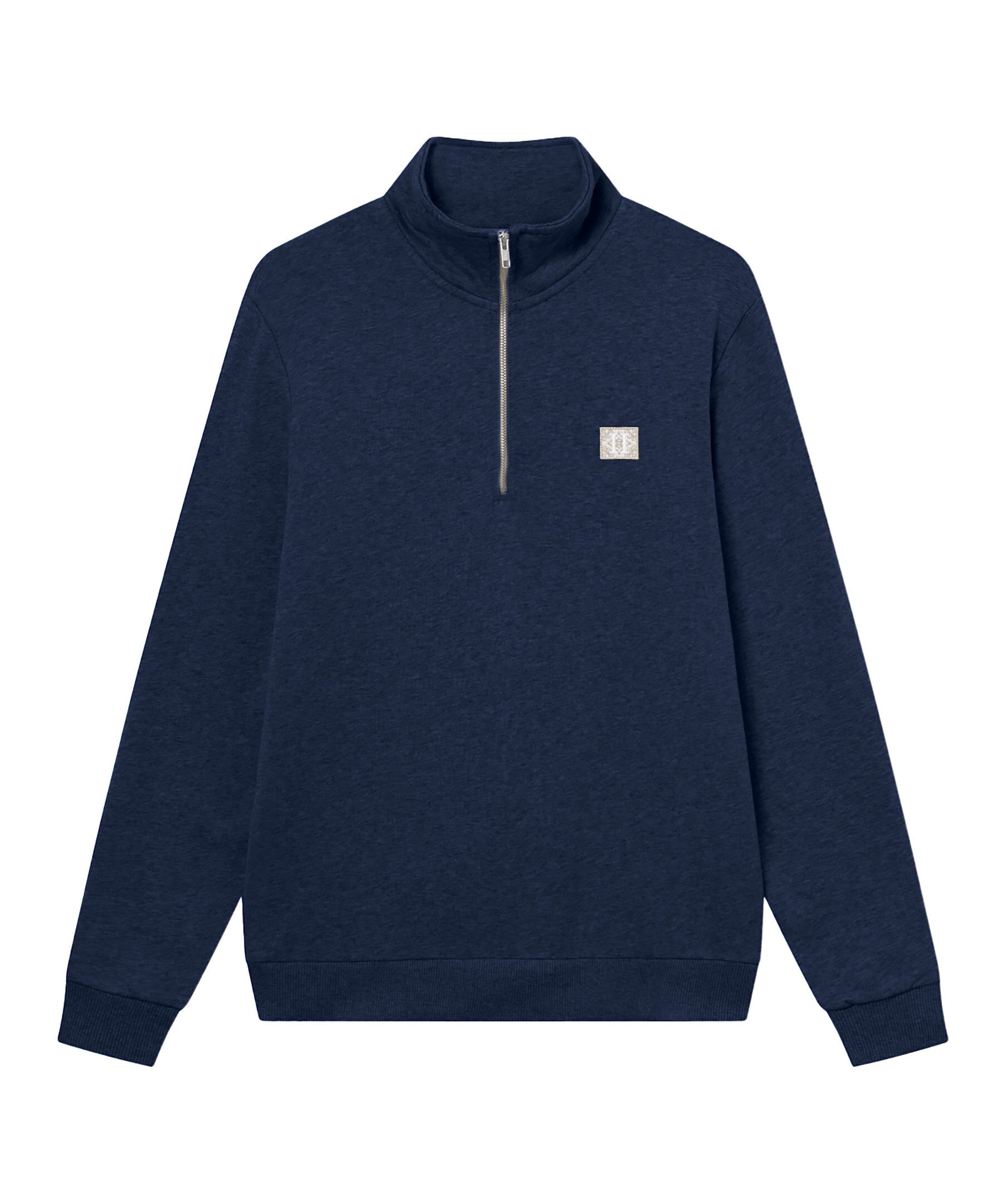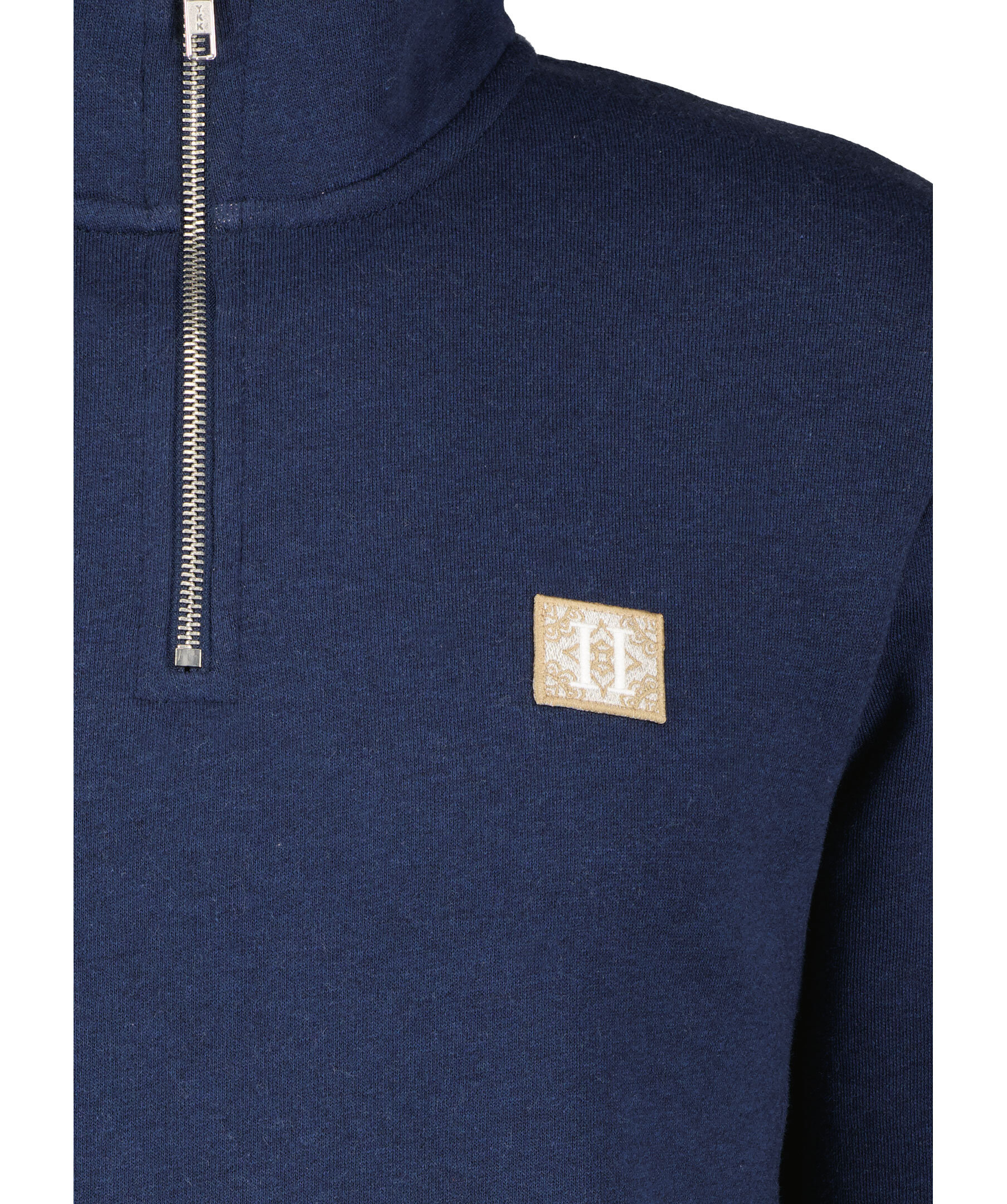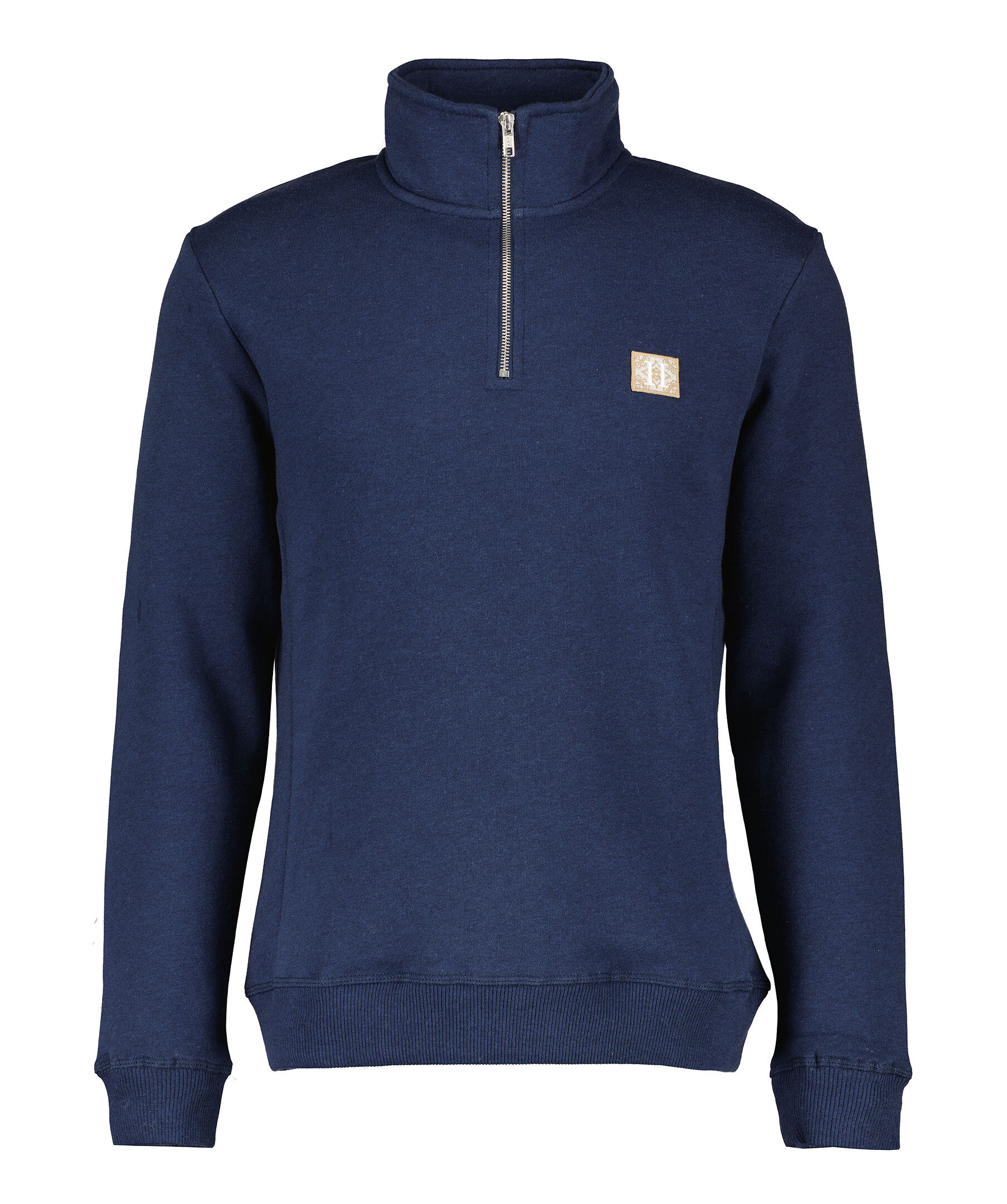 Mörkblå half zip från Les Deux. Tröjan har ribbstickad krage, ribbstickade muddar och liten patch-logotyp på bröstet. Tillverkad i bomull.