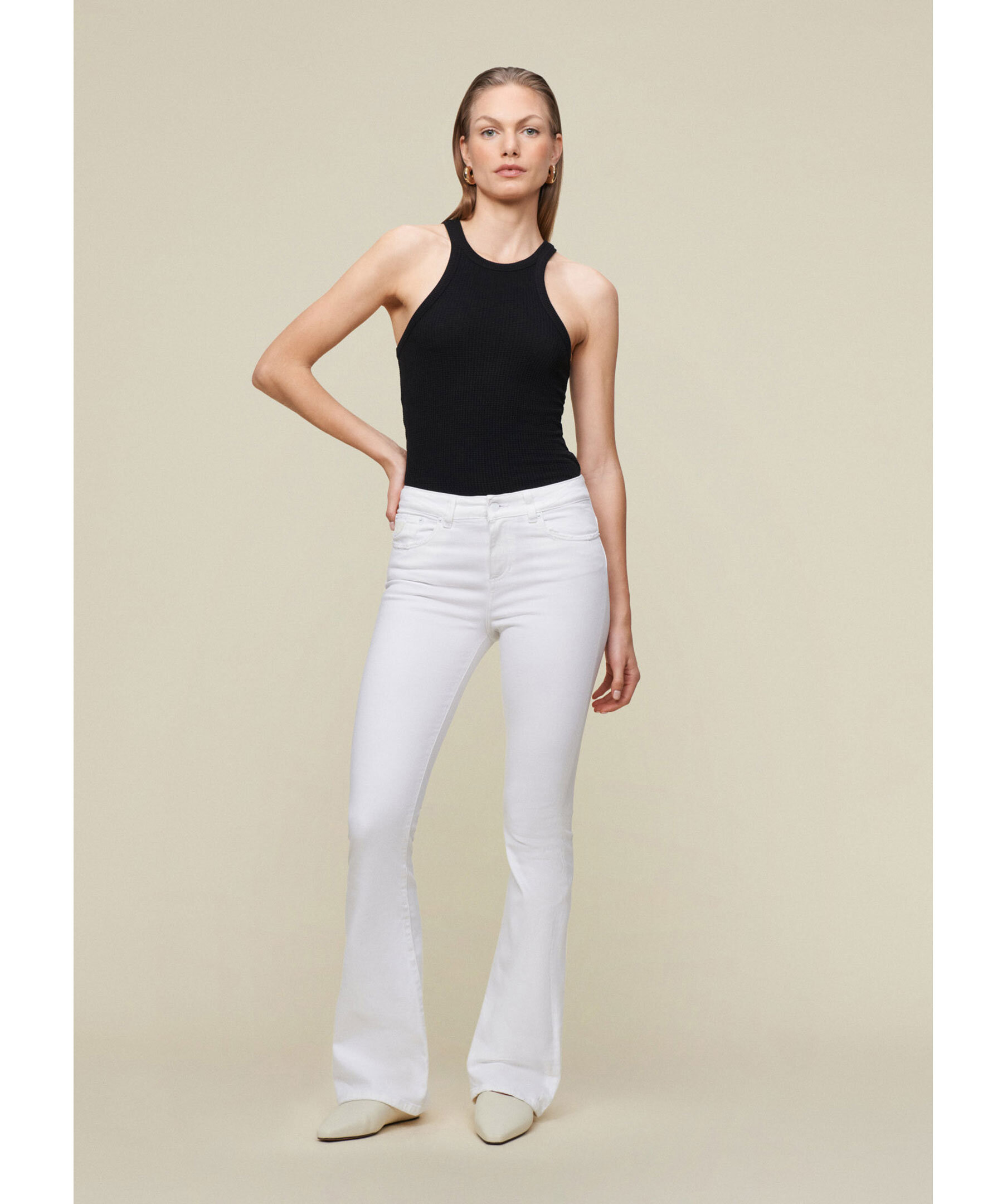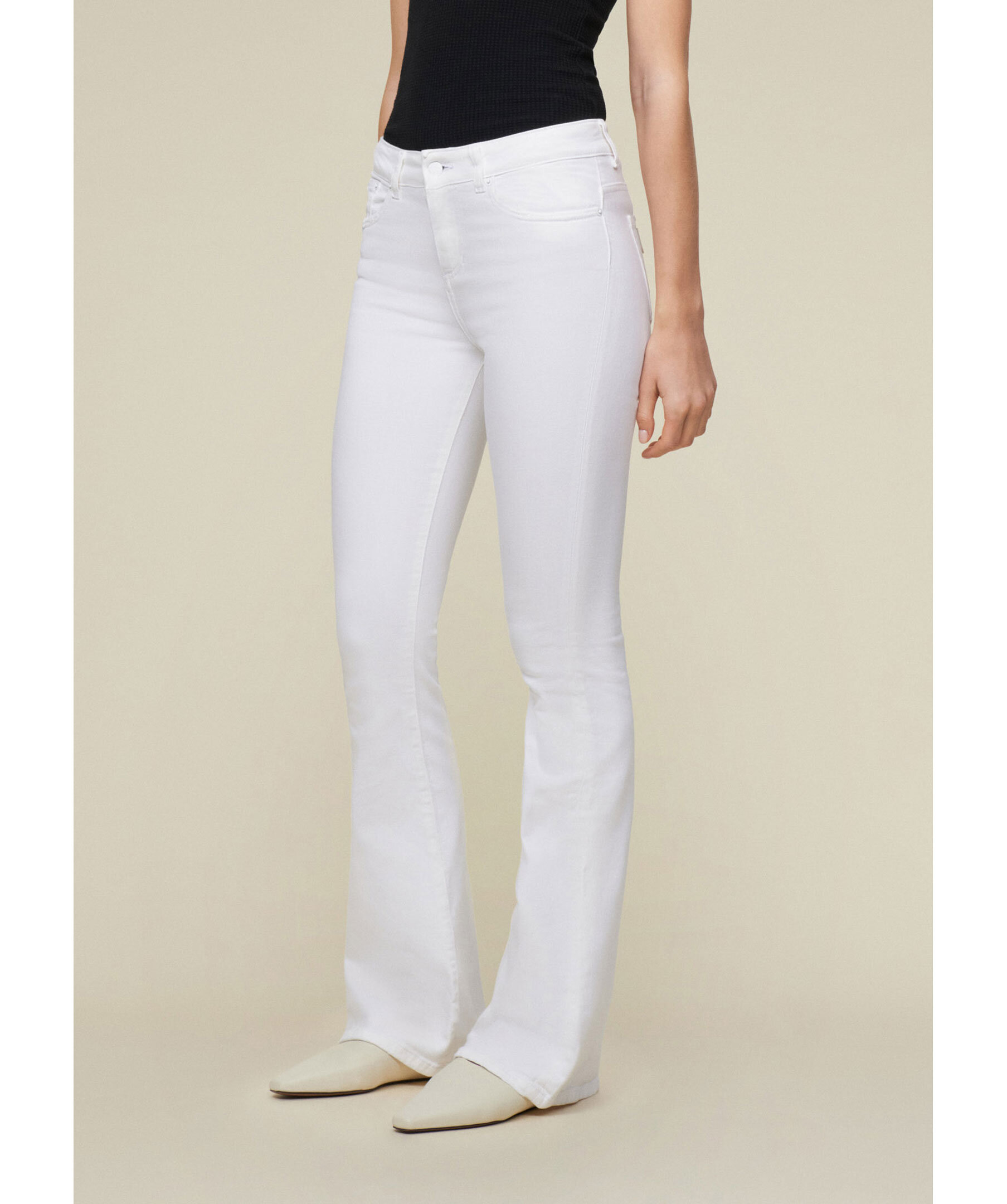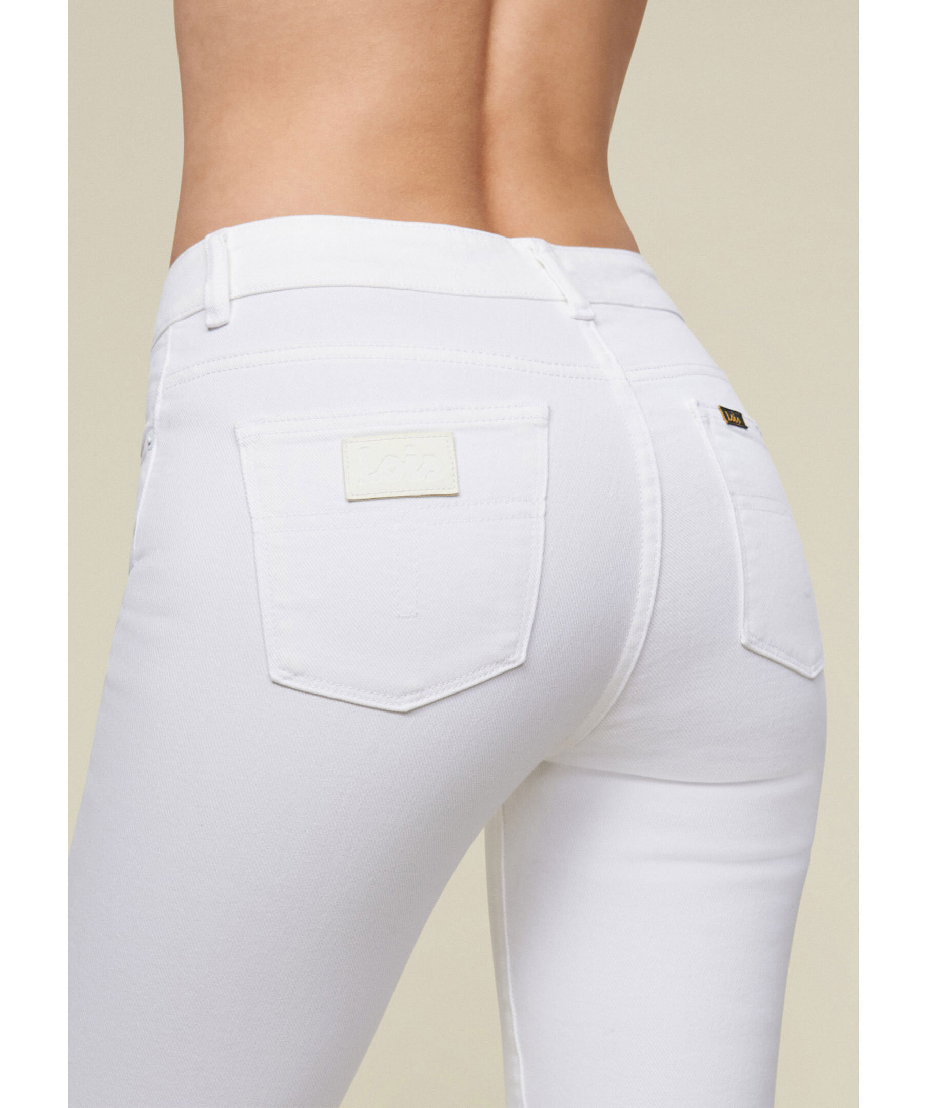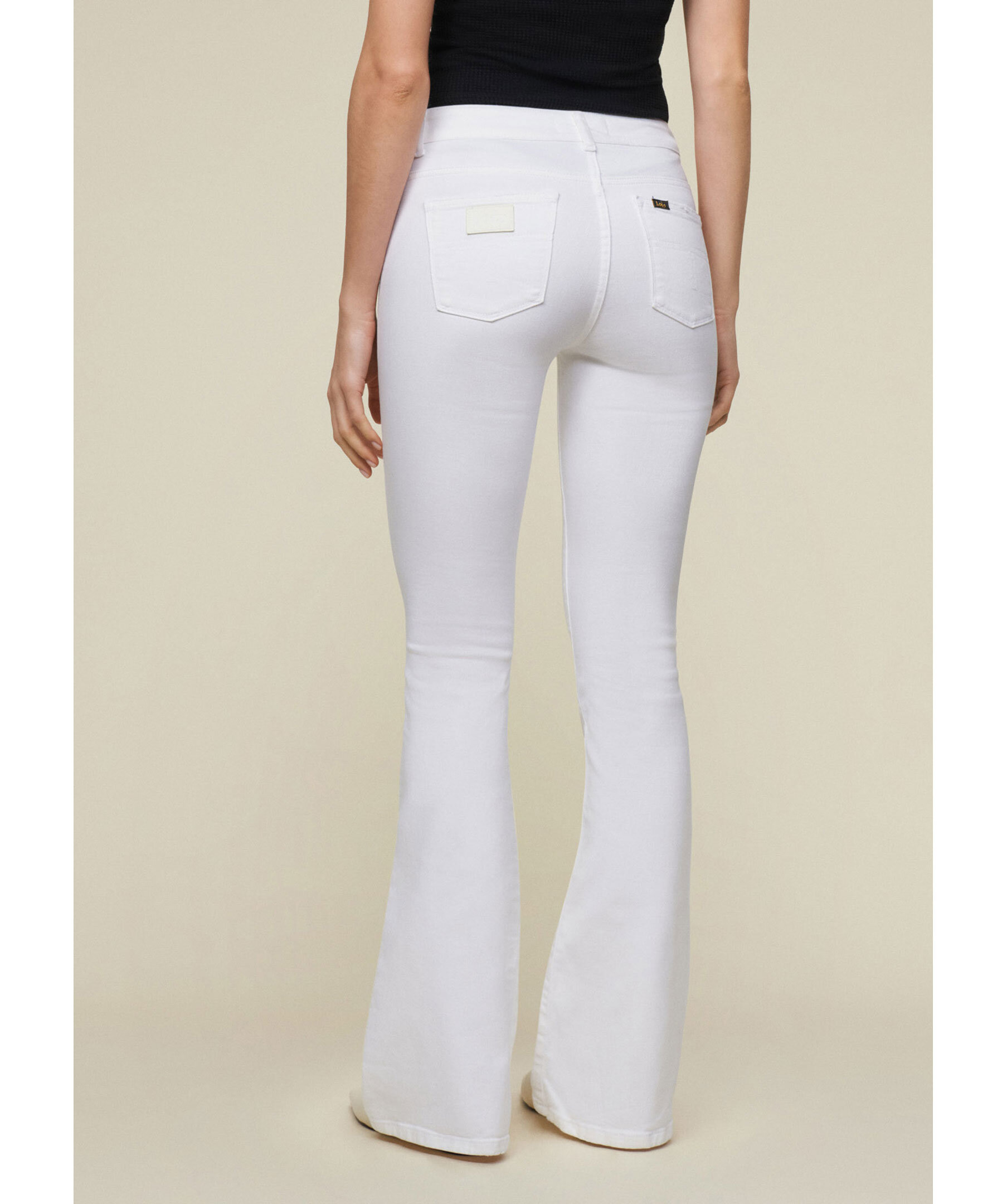 Vita jeans från Lois. Jeansen har normalhög midja, fem fickor, logotyp-patch på ena bakfickan samt bälteshällor i midjan. Utsvängda ben. Tillverkade i en bomullsblandning.