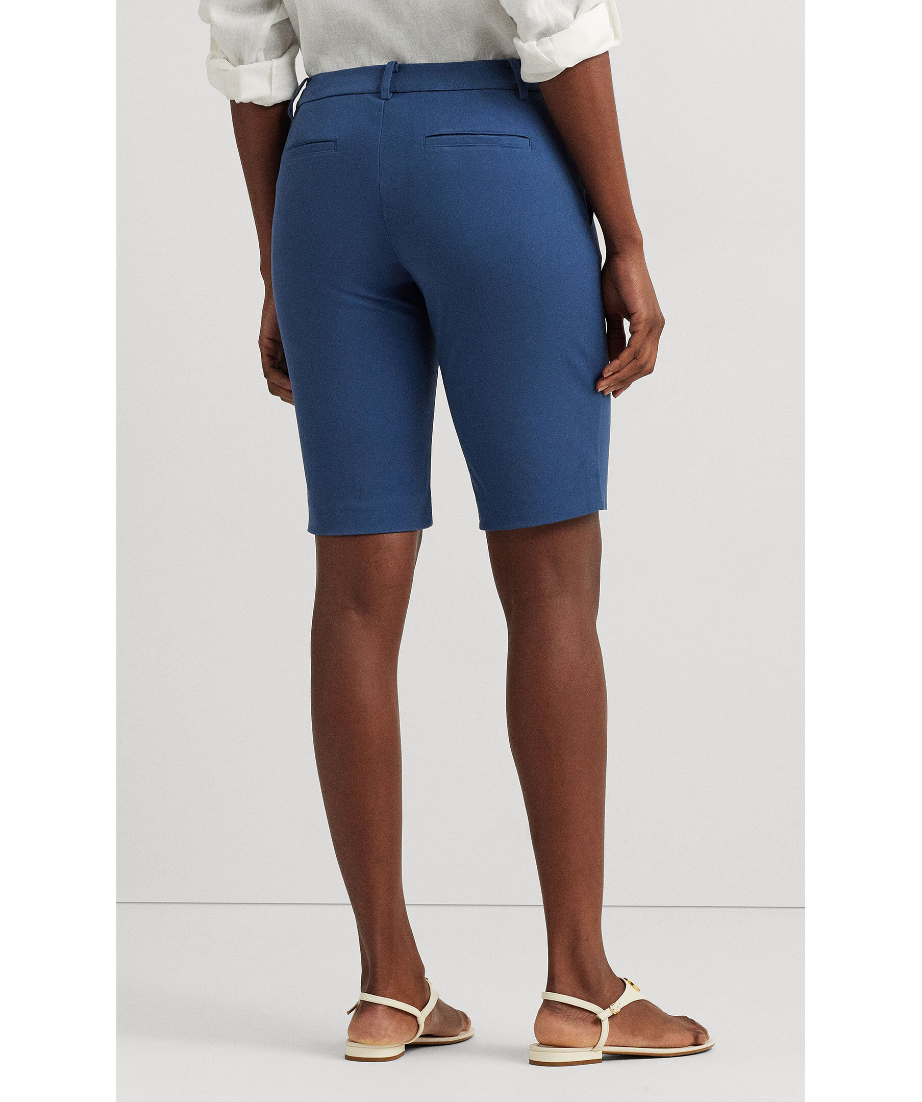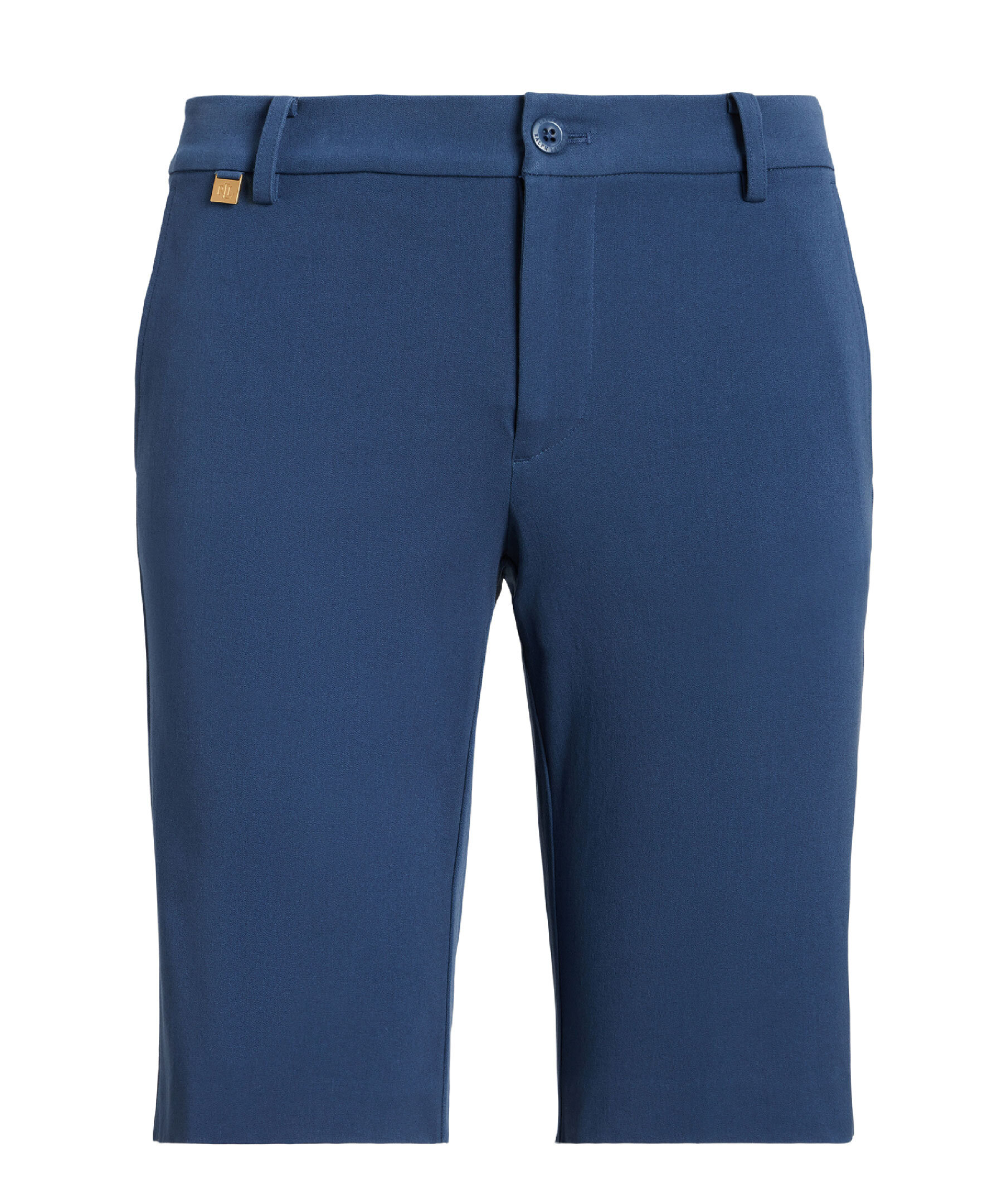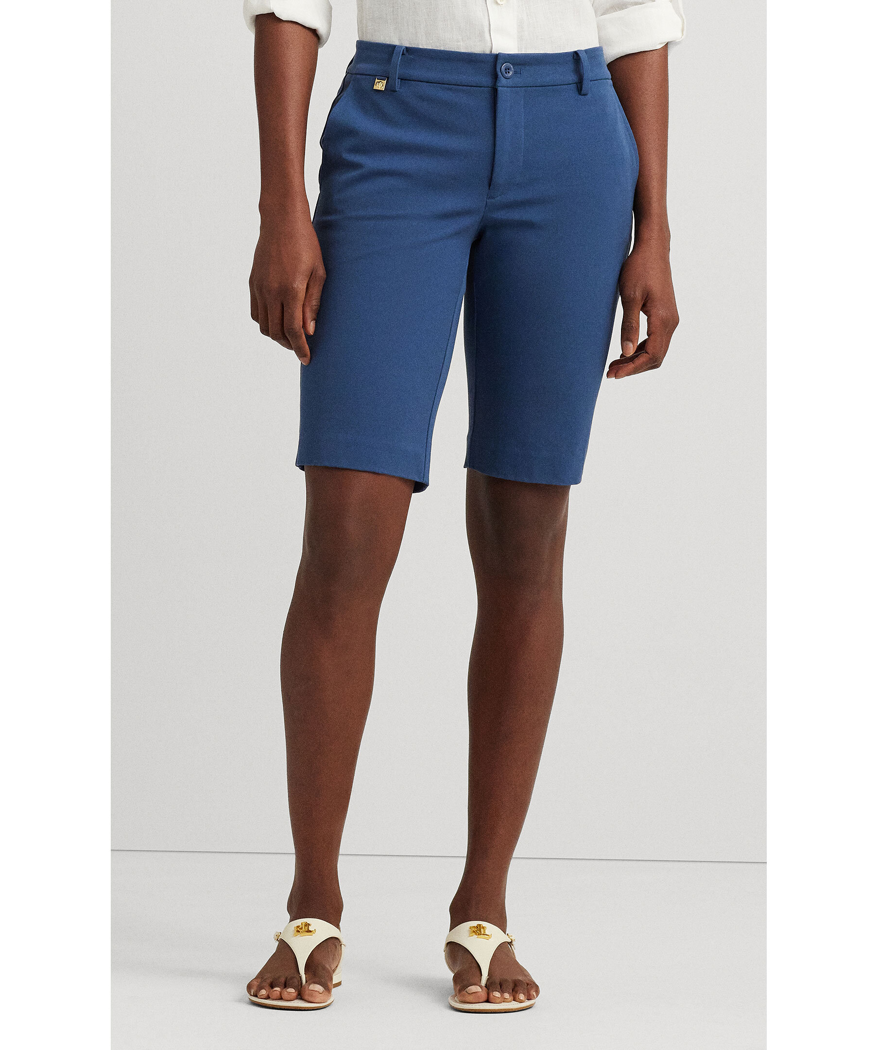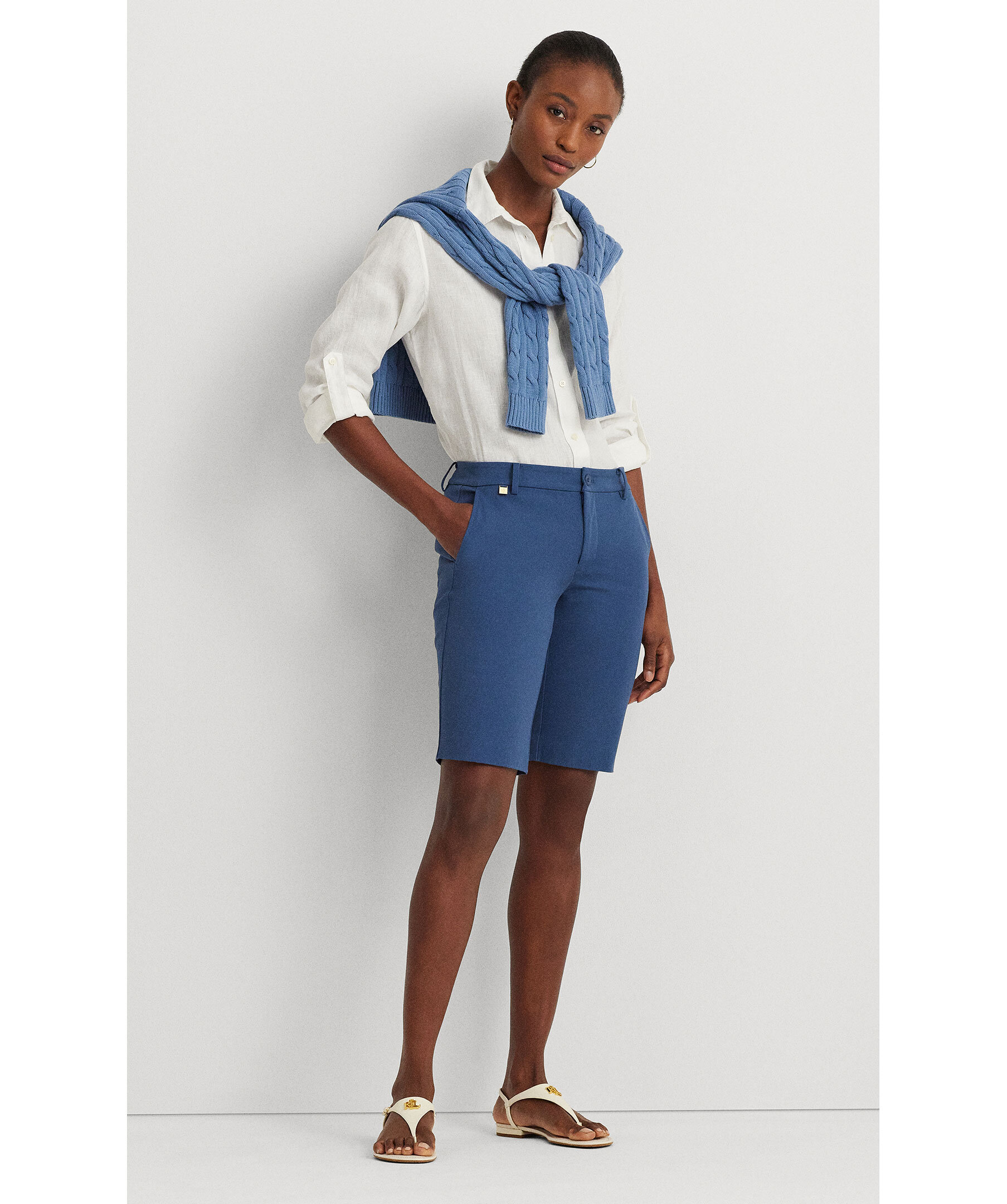 Blå shorts från Lauren Ralph Lauren, tillverkade av ett stretchigt material som ger en bekväm passform.. Klassisk knäppning i midjan och bälteshällor. Shortsens längd slutar precis ovanför knäna. Två diskreta bakfickor och en dekorativ logotypdetalj på framsidan.