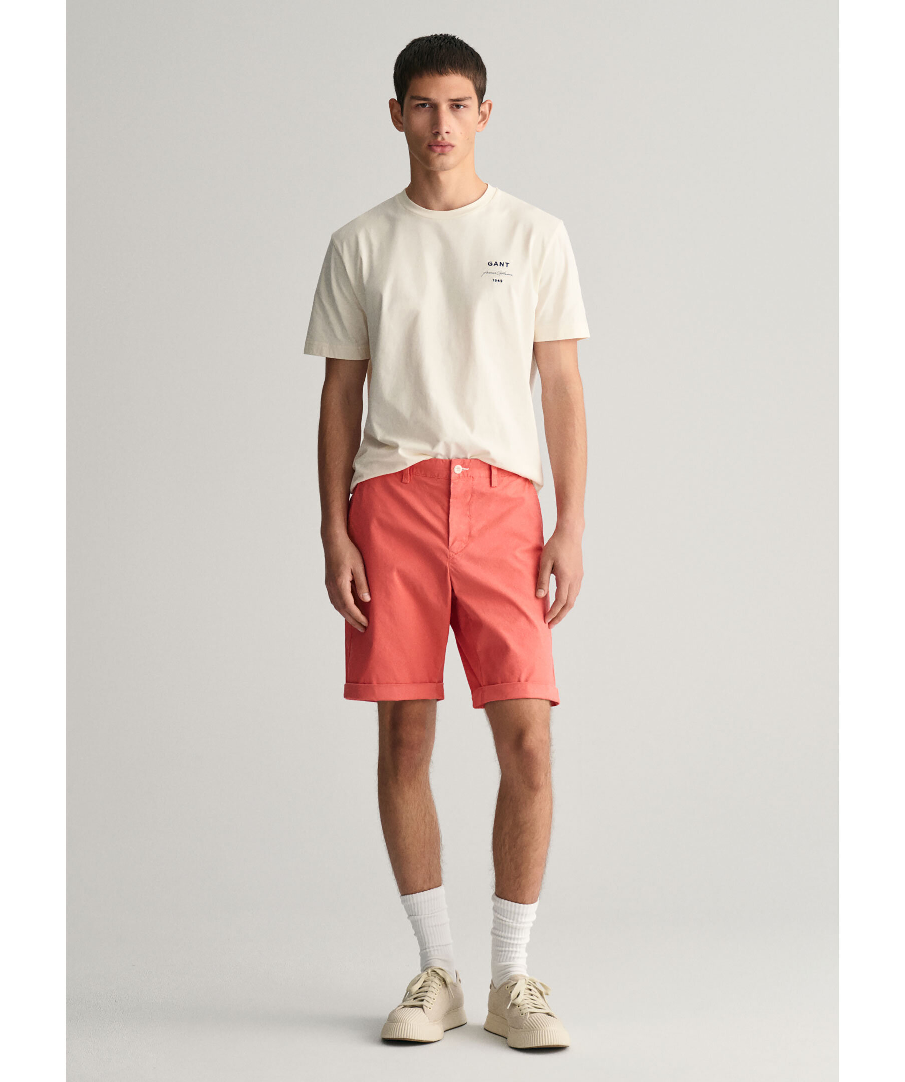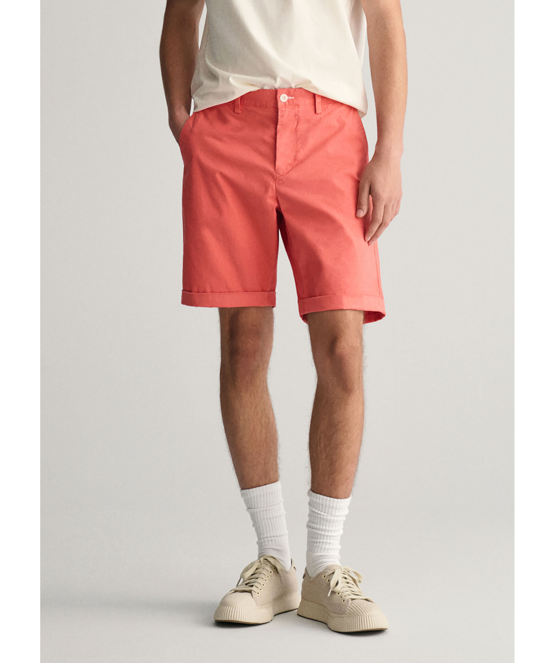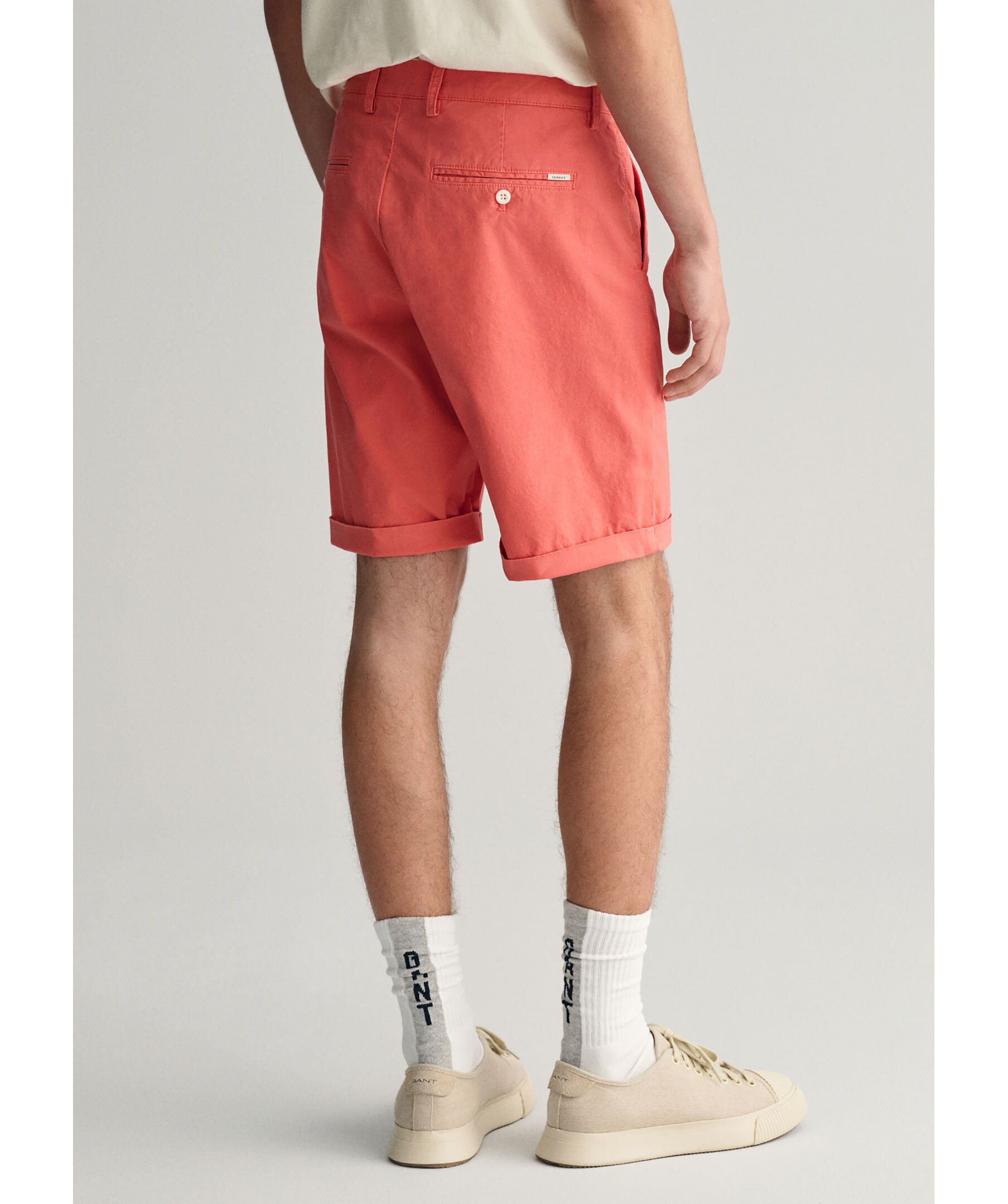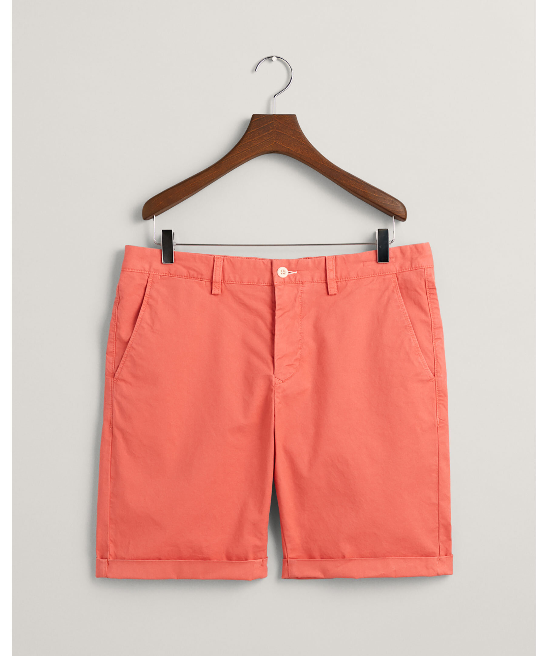 Rosaröda chino shorts från Gant. Shortsen har en solblekt look, mellanhög midja, uppvikt fåll och sidofickor samt passpoalfickor baktill med knapp och liten logotyp. Tillverkade i en bomullsblandning.