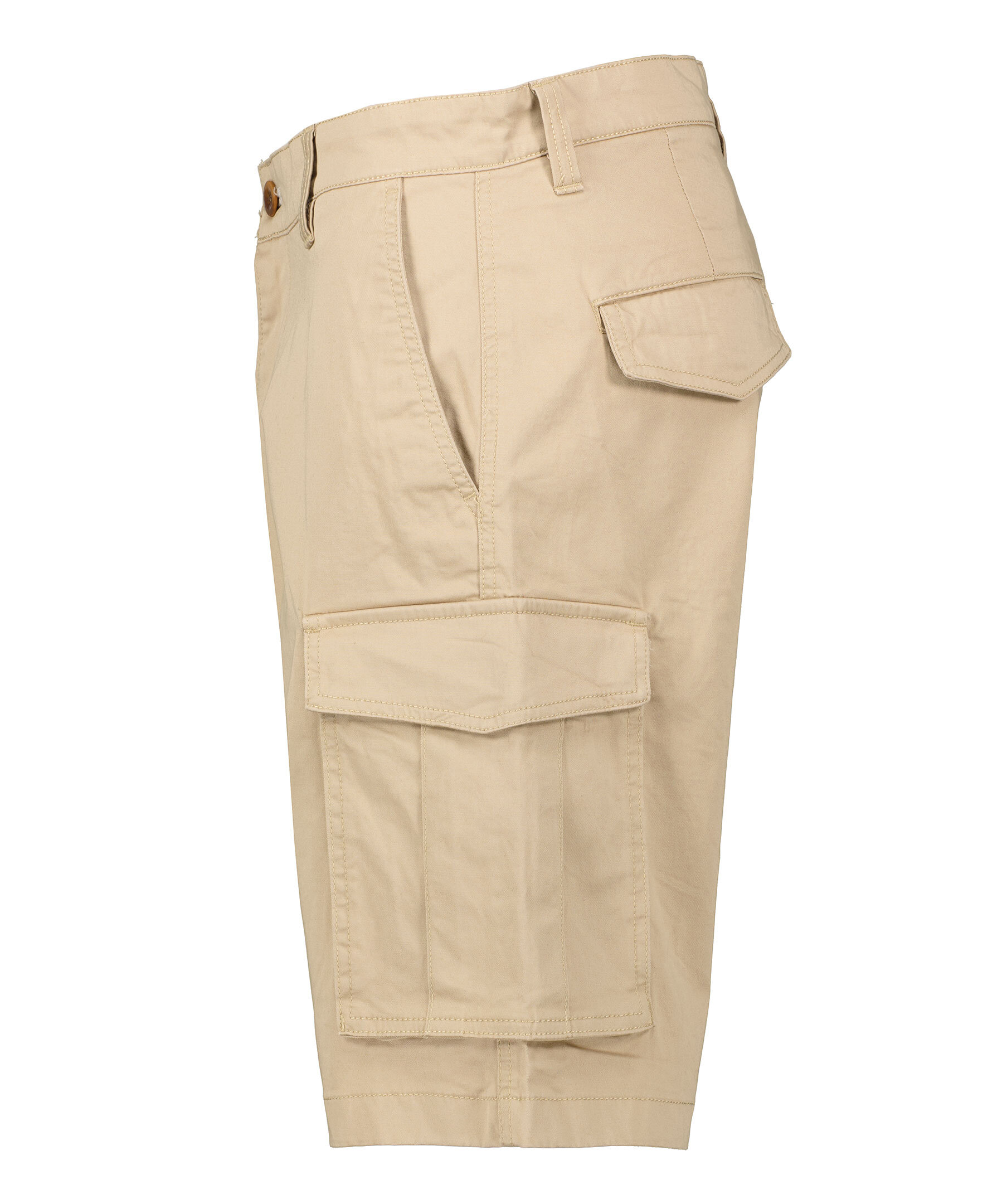 Beigea cargoshorts från Gant. Två fickor framtill , två fickor på benen som stängs med lock, två bakfickor med lock. Broderad logotyp över höger bakficka. Hällor för bälte. Avslappnad passform. Mellanhög midja. Tillverkad i bomulls blandning.