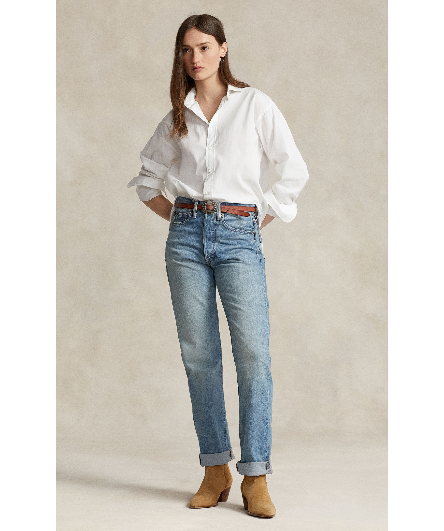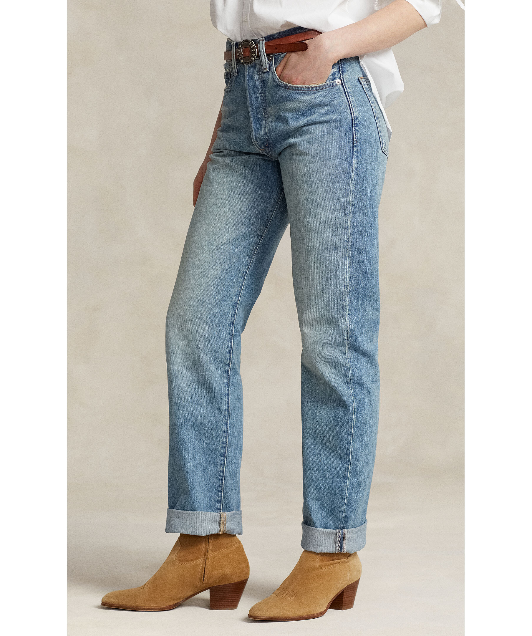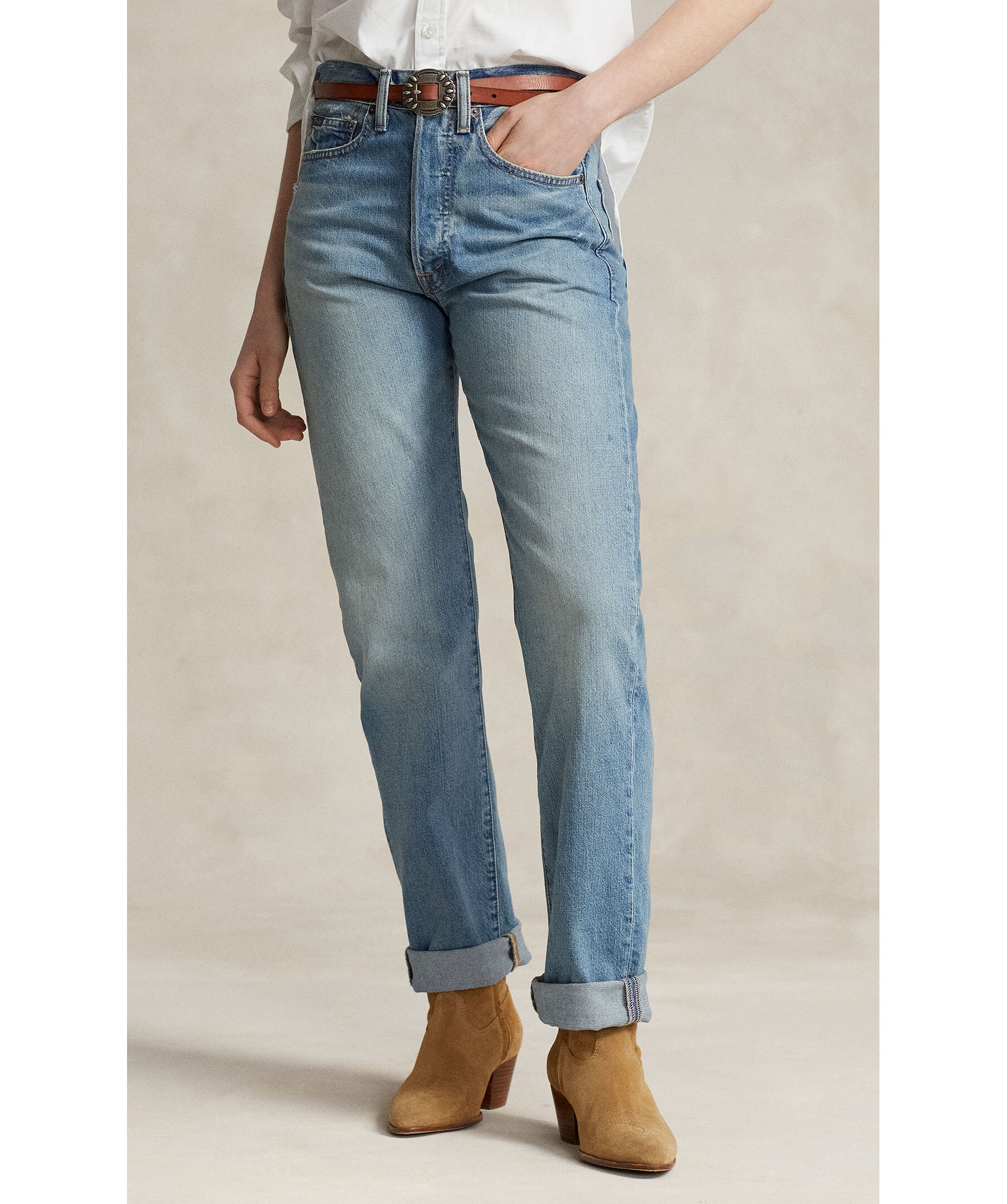 Jeans med en avslappnad passform och raka ben från Polo Ralph Lauren. Fem fickor och hög midja. Knappgylf och bälteshällor. Märkeslapp med "Polo Ralph Lauren" på bakfickan.