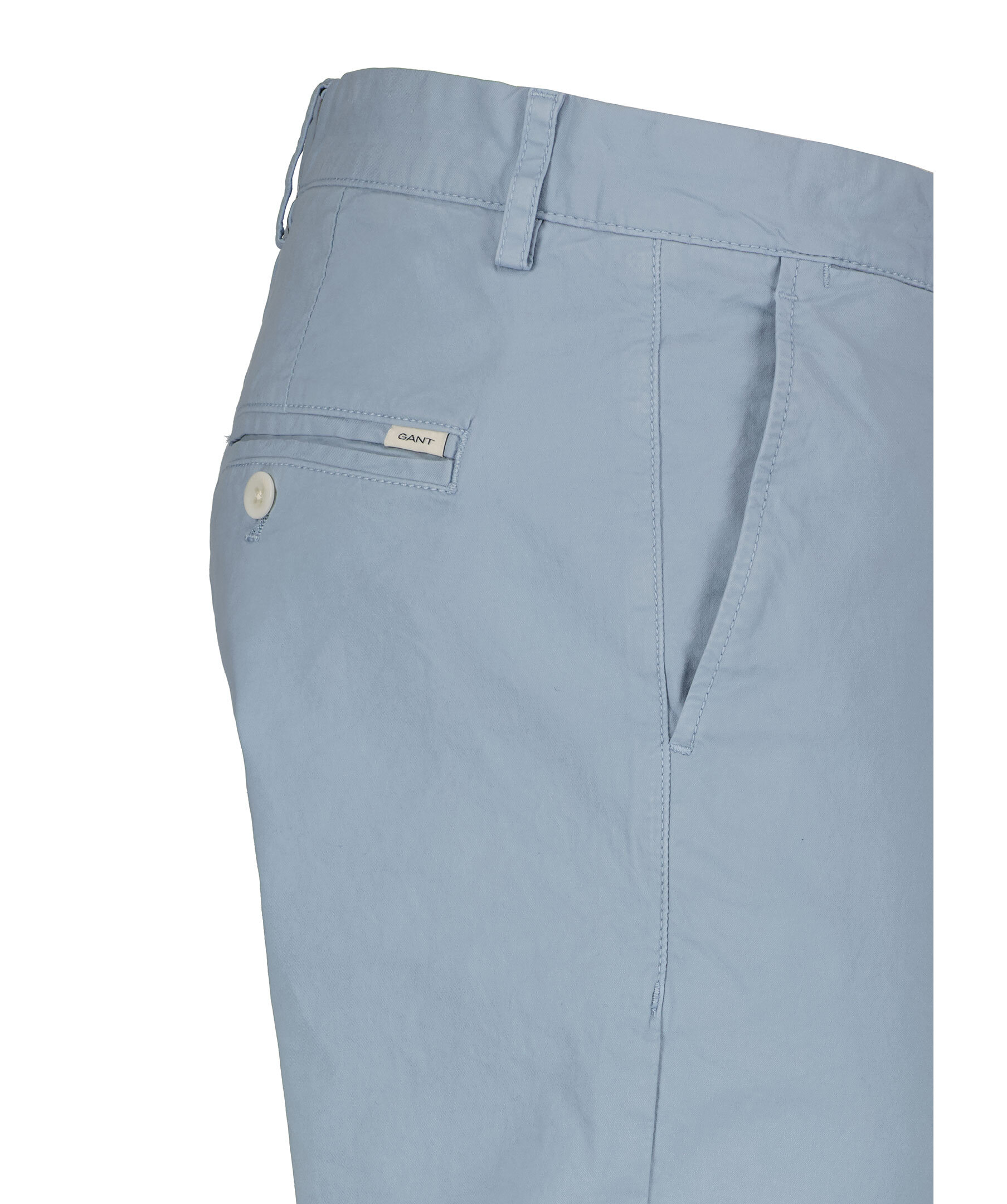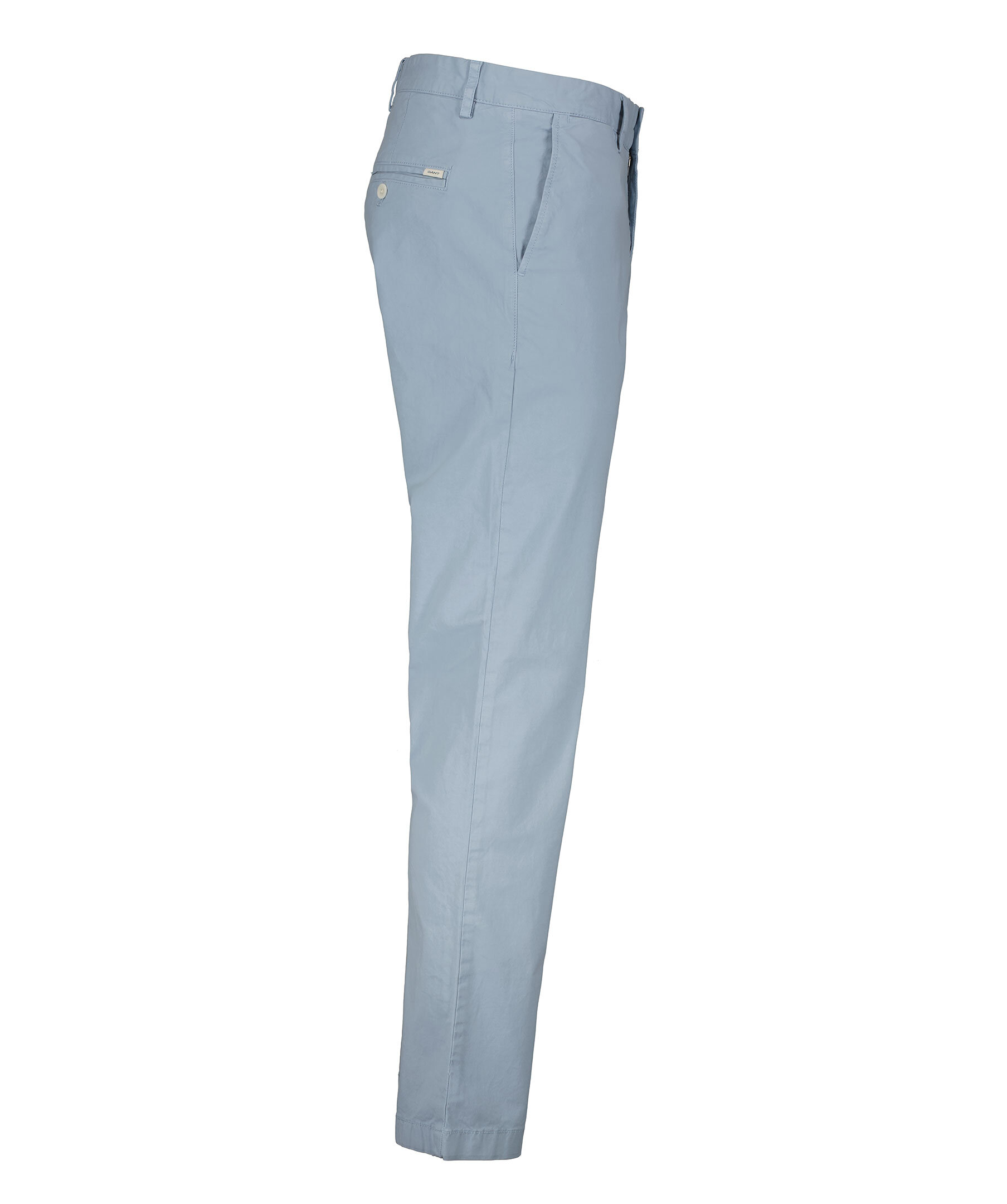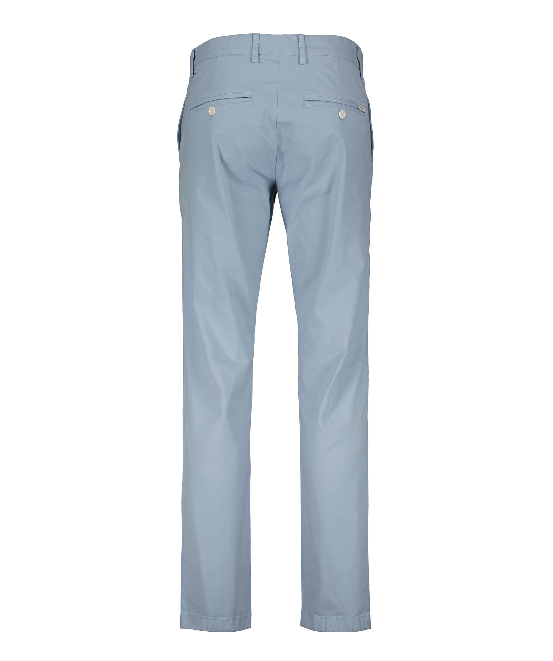 Dovt blåa chinos från Gant. Skräddarsydda av en fin bomullstwill och stretchig bomullsblandning och har en smal passform och mellanhög midja. Knappstängning, snedfickor fram, bakfickor med knapp samt corozo-knappar.