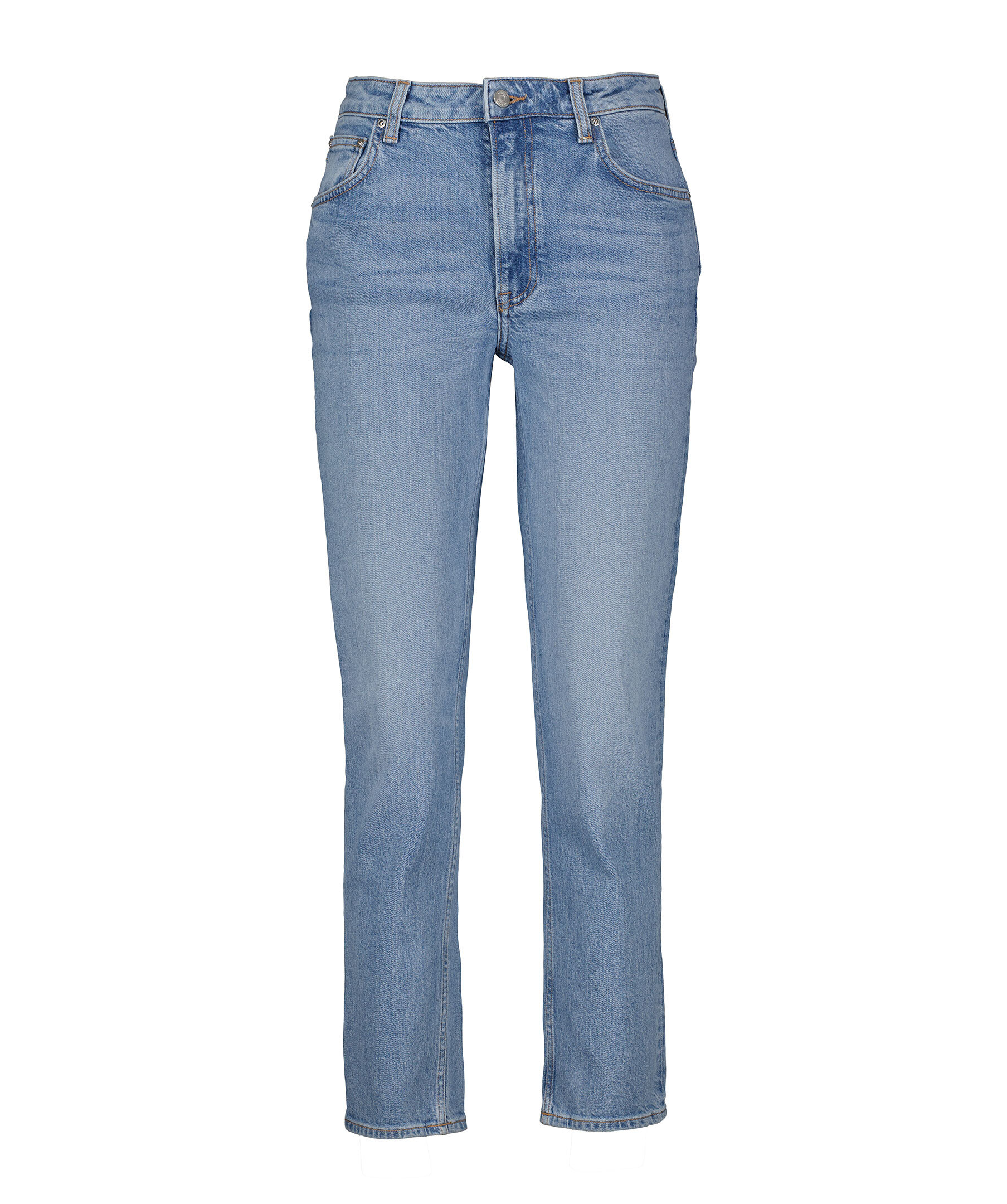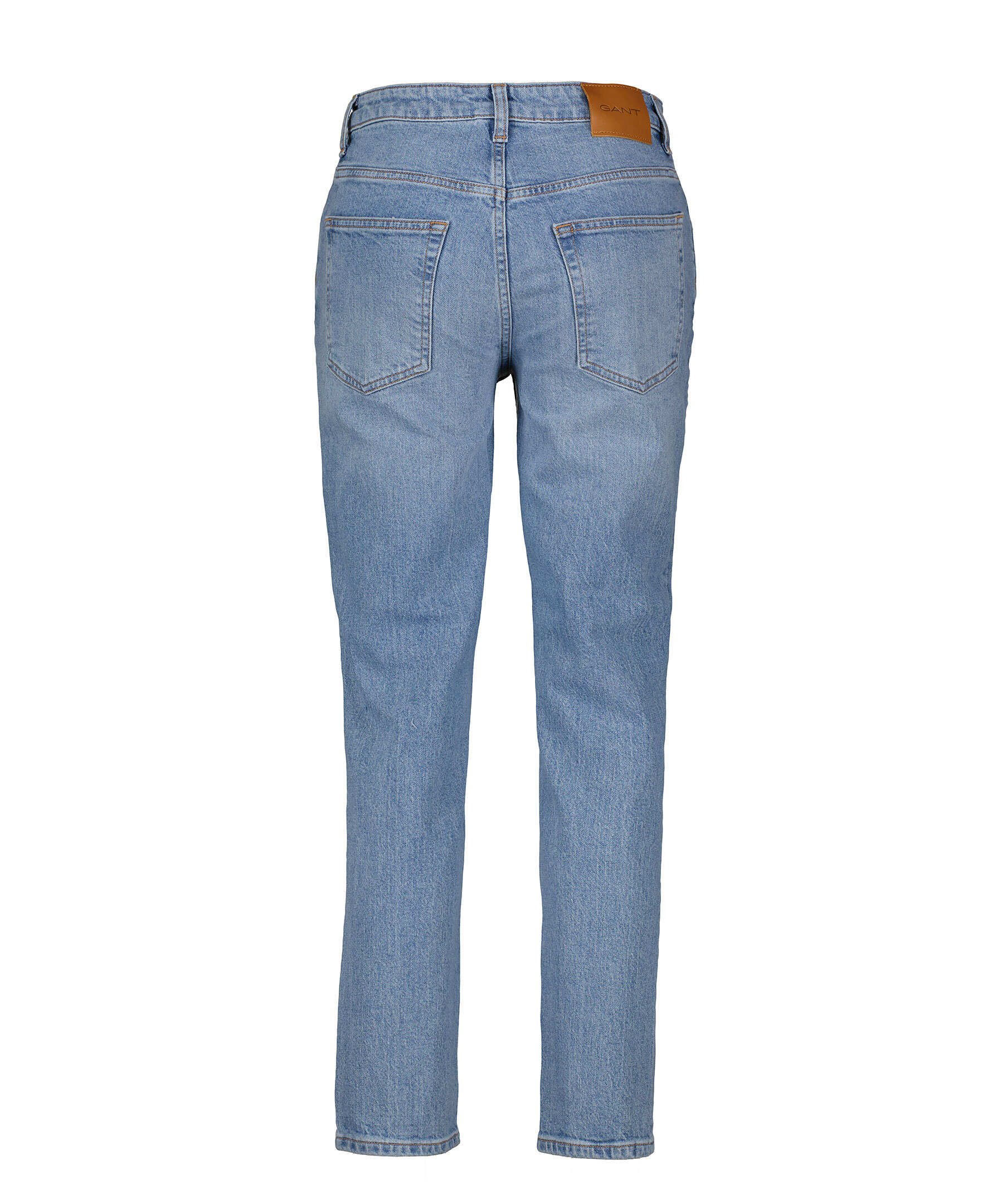 Blåa jeans från Gant. Tillverkad i bomull med lätt stretch, raka ben med smal passform över höfterna samt en luftig silhuett med utrymme att röra sig. Den höga midjan, de avsmalnande benen och den croppade längden ger dem en förlängd effekt och lämnar plats åt dina favoritskor.
