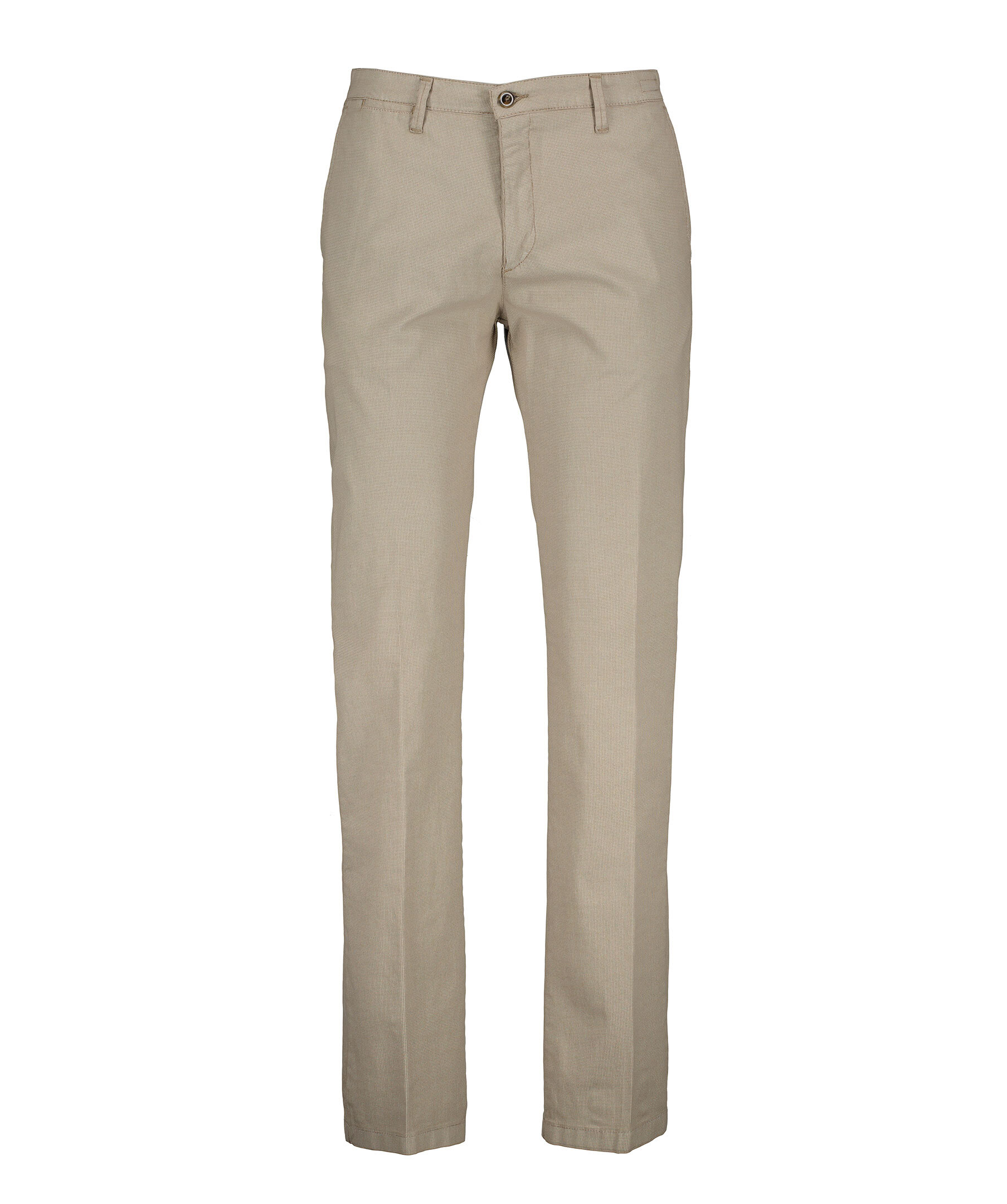 Beigea chinos från Four.ten med ett finrutigt mönster. Byxorna har två sidfickor samt två bakfickor med knapp och bälteshällor i midjan. Tillverkade i en bomullsblandning.