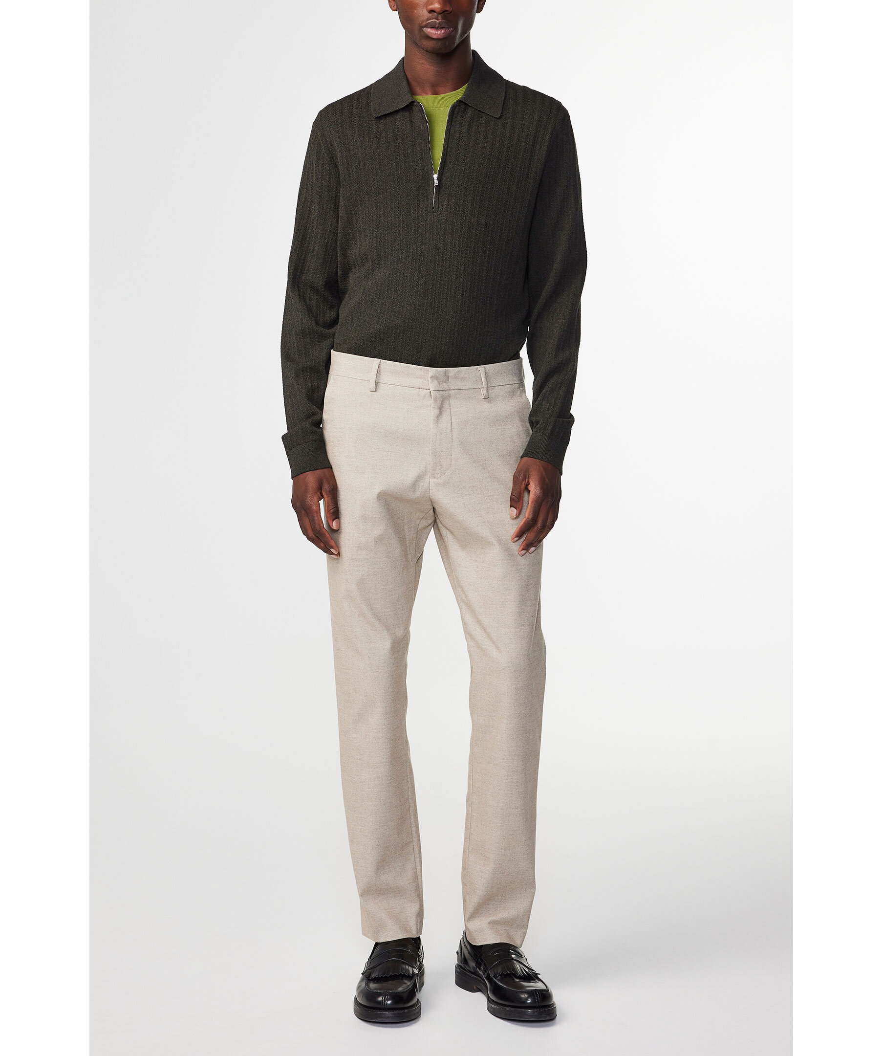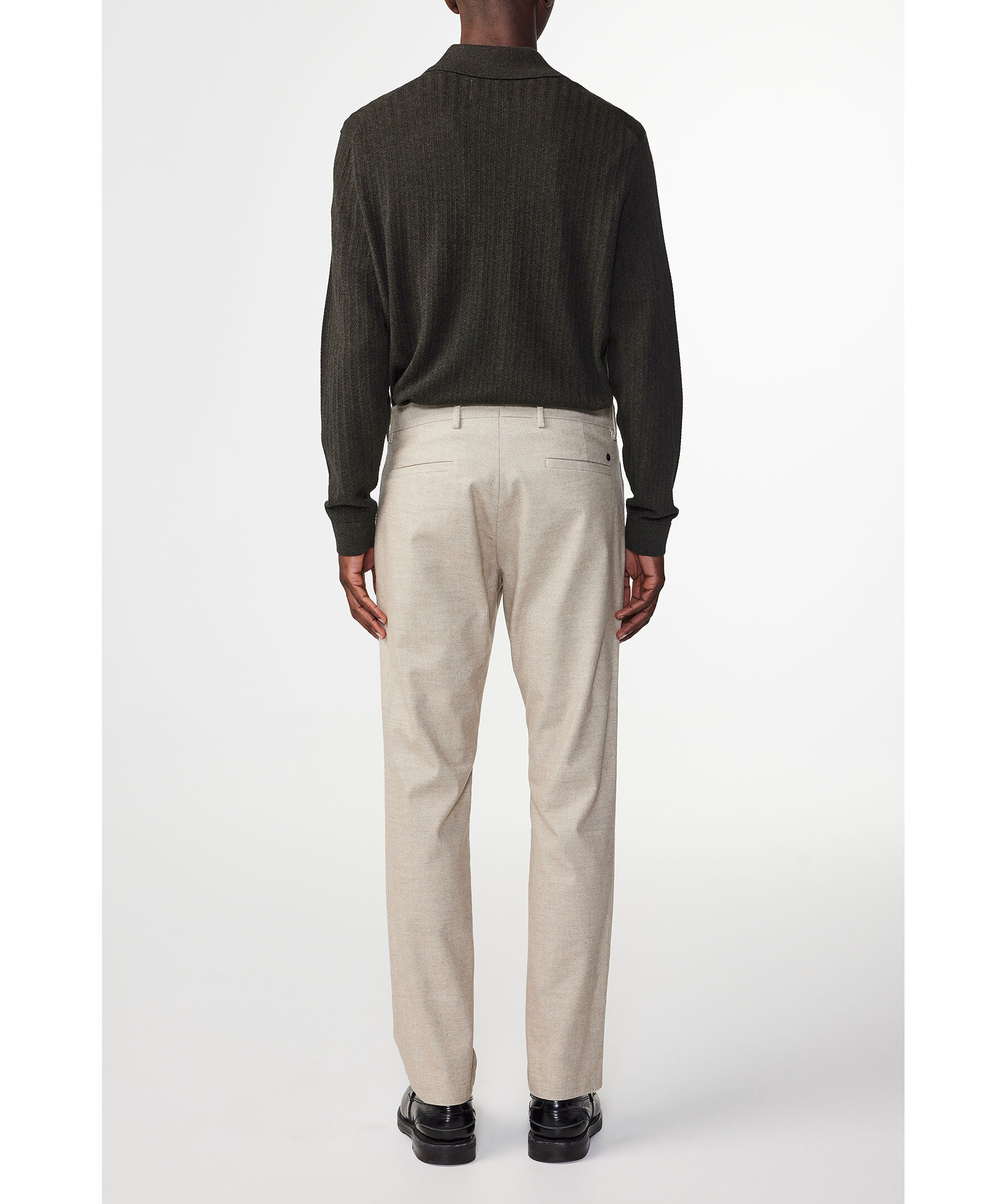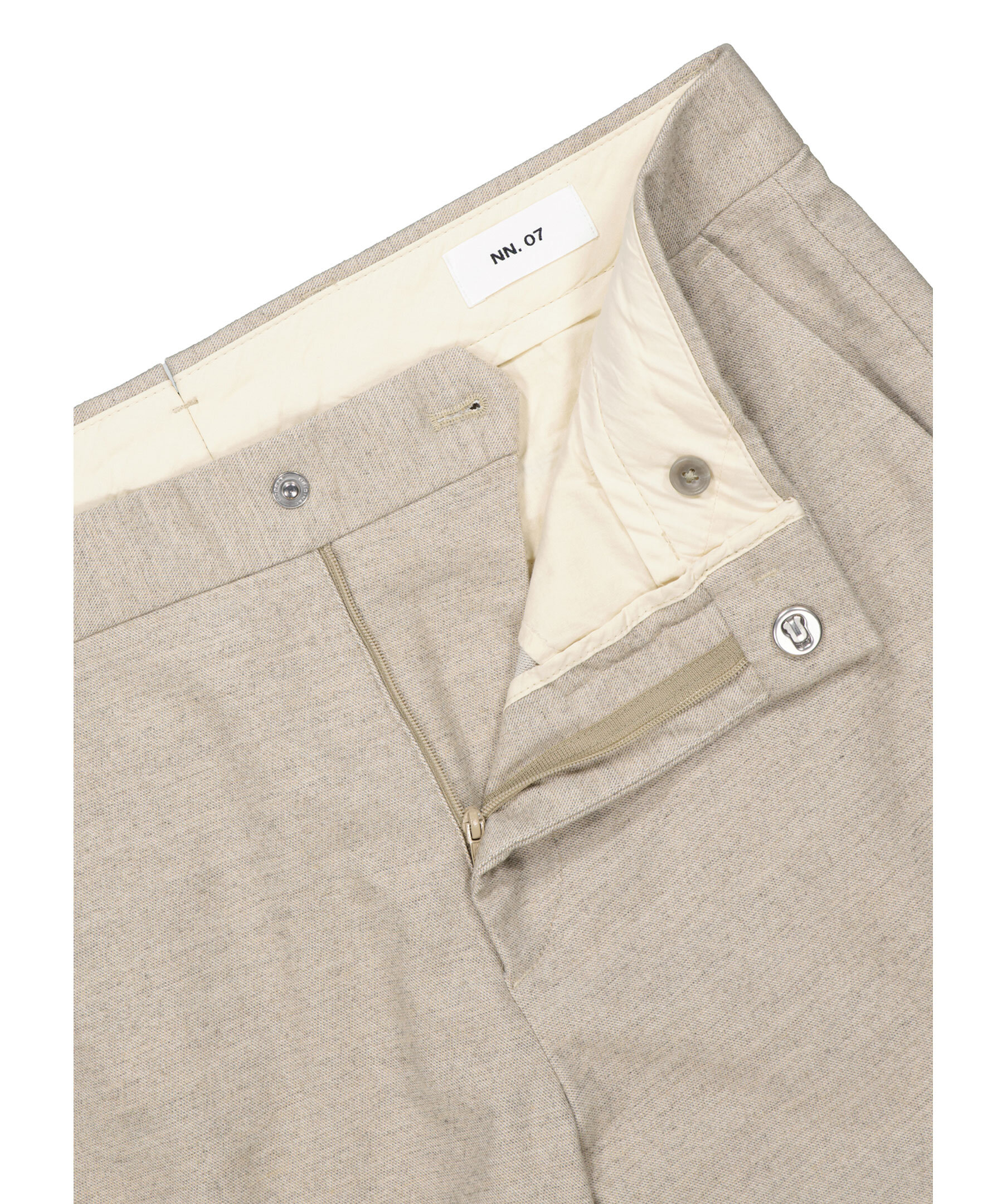 Greige chinos från NN07. Byxorna har avsmalnande ben, bälteshällor i midjan, två sidfickor samt två passpoalfickor baktill. Tillverkad i en borstad bomullskypert melangeblandning.