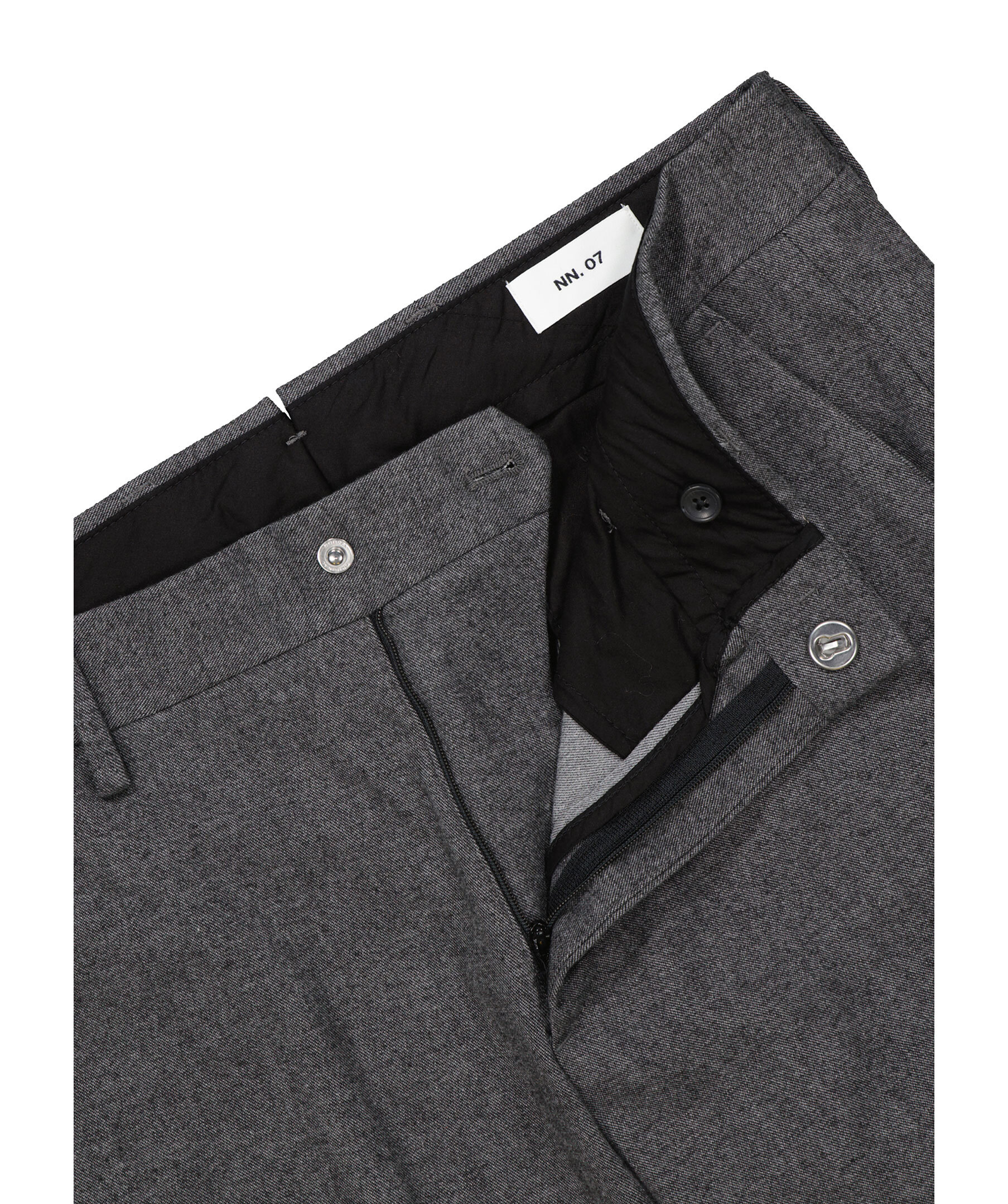Mörkgråa chinos från NN07. Byxorna har avsmalnande ben, bälteshällor i midjan, två sidfickor samt två passpoalfickor baktill. Tillverkad i en borstad bomullskypert melangeblandning.